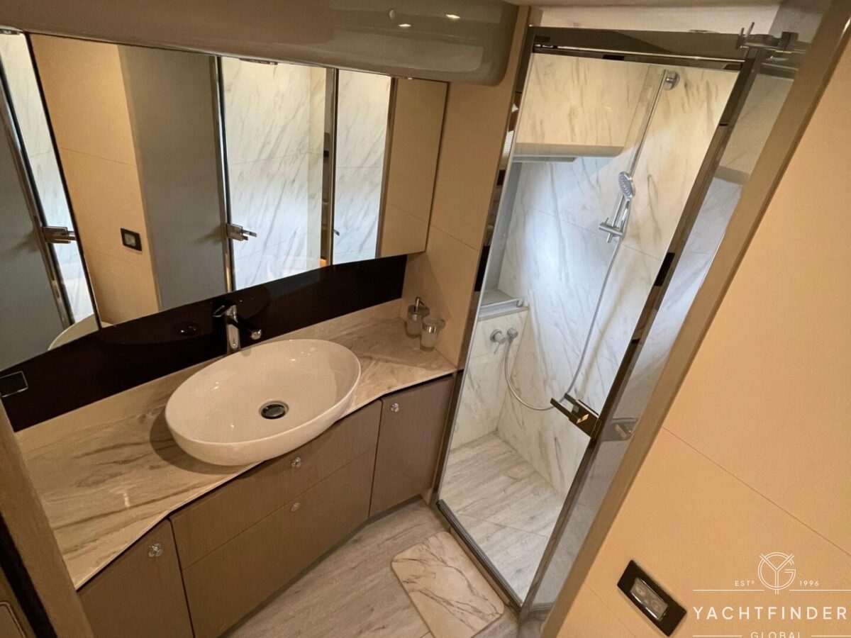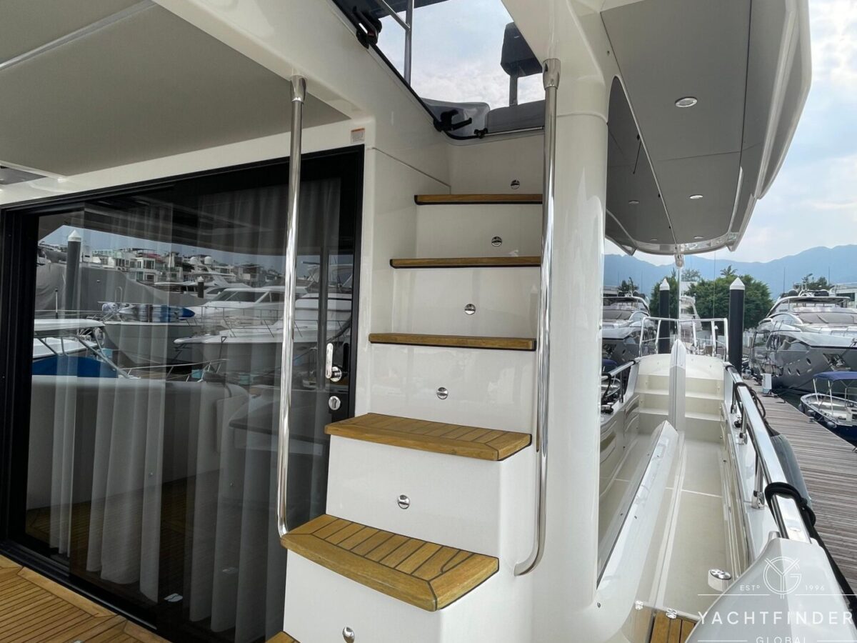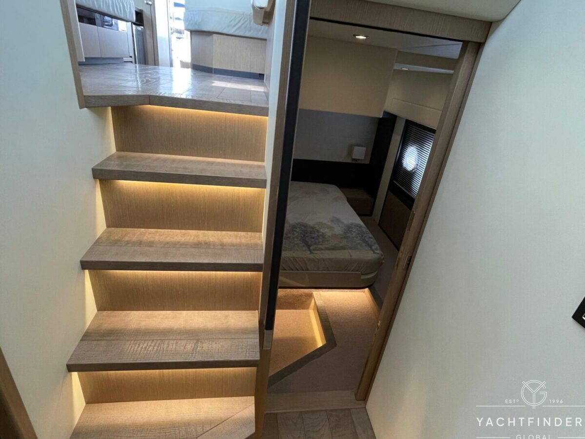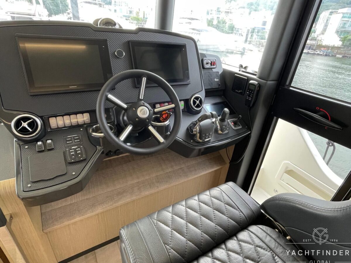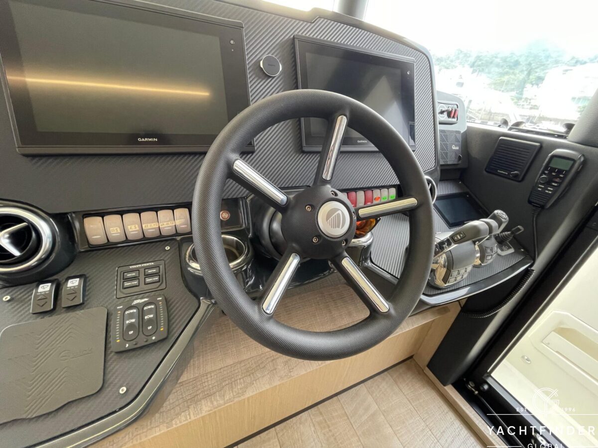 They made her very efficient, with ergonomics on all decks well thought out in the interior. The exterior look is inspired by the new fast trawler, but with its two Volvo IPS 650s, it can reach 26 kn, which is very fast for this category.