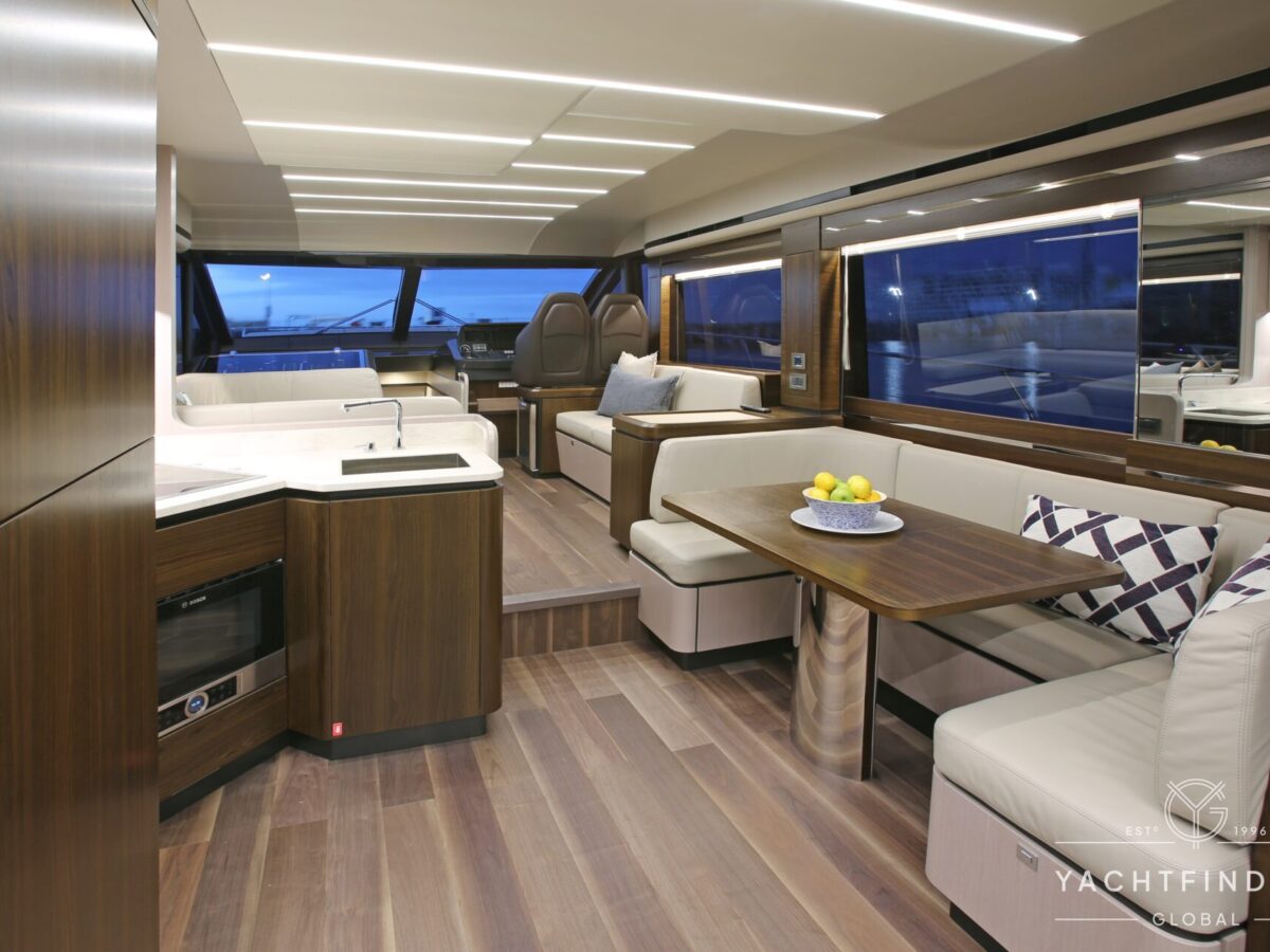 The comfort continues through the living area, well-refined, attractively furnished, and designed to offer maximum panoramic visibility.