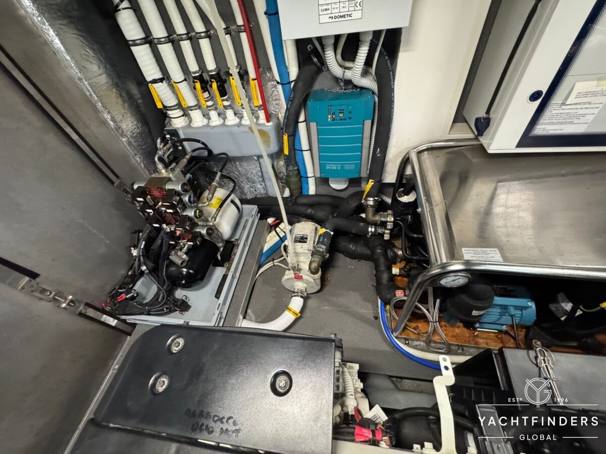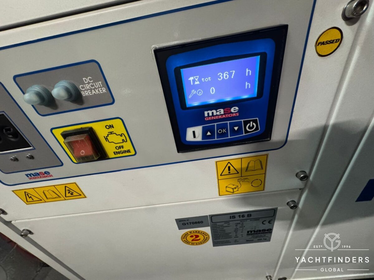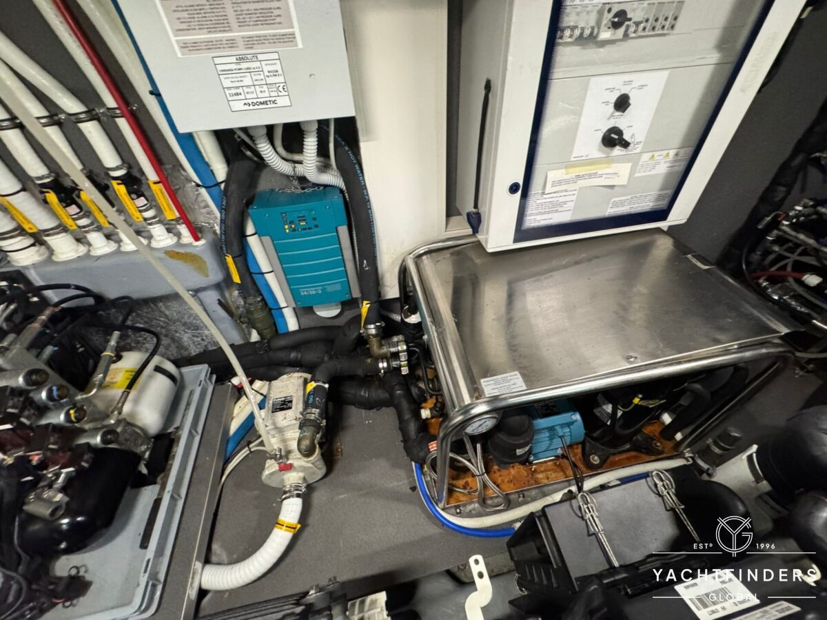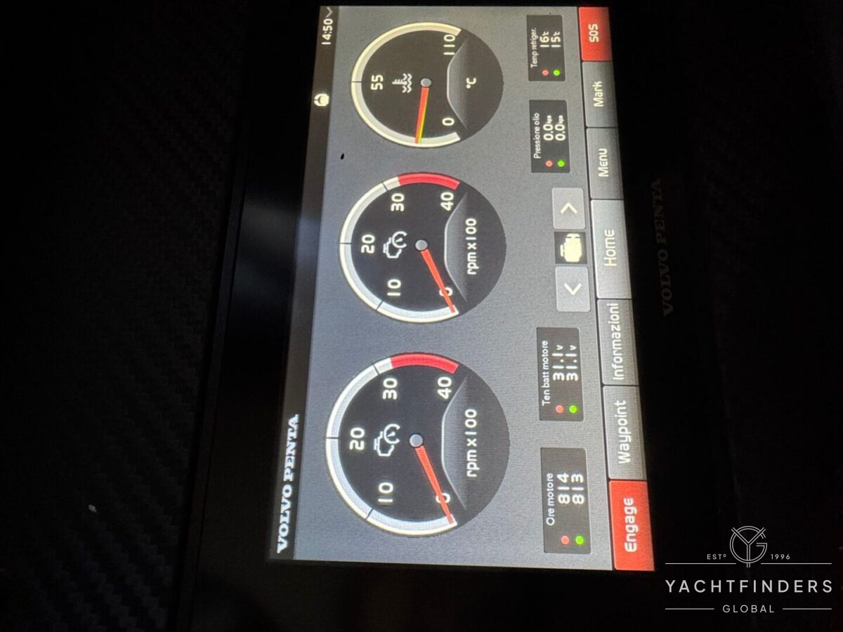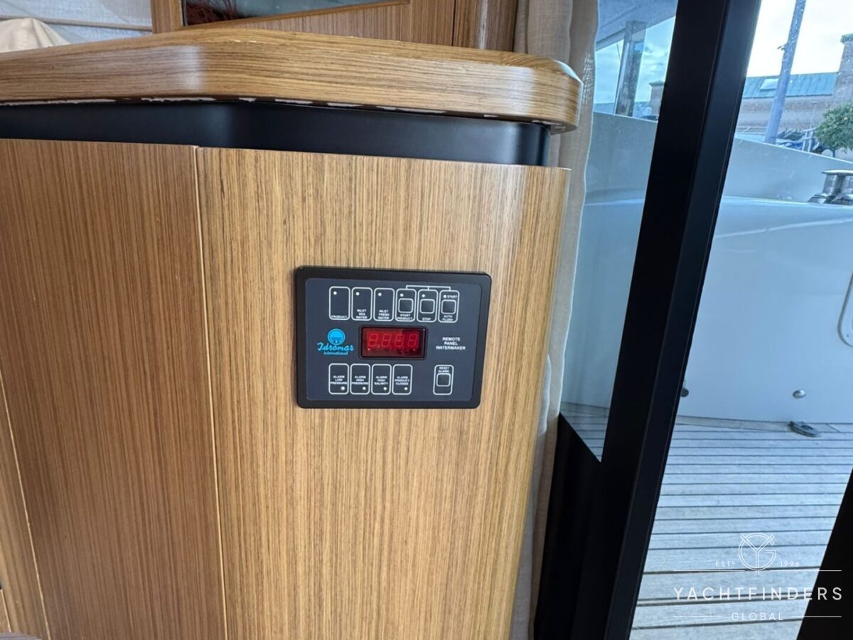 Speakers, Air conditioning, BBQ/ Grill, Boiler, Safe, Reversible air conditioning, Freezer, Cockpit cover, Galley, Complete cushions, Satellite decoder, Watermaker, Oven, External refrigerator, Internal refrigerator, Home Theater, TV system, Waste water system, Waste water tank indicator, Water tank indicator, Fuel tank indicator, Inverter, Washer-dryer, Dishwasher, TV sliding mechanism, Blinds, Wooden interior floor, Ceramic hob, Watertight door, Internal sockets 12v, Internal sockets 220v, Heating, Waste water tank, Stereo, TV, Camera, Window covers, Fly cover, Console cover, Seat cover, Electric marine toilet, Wine cooler, Mosquito nets