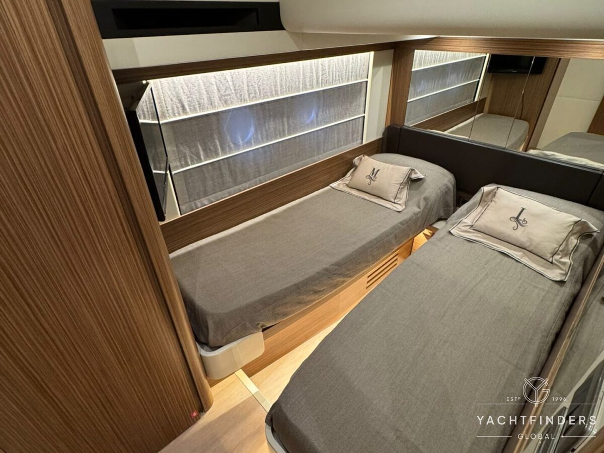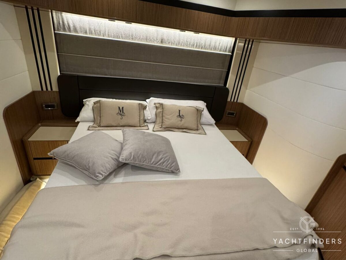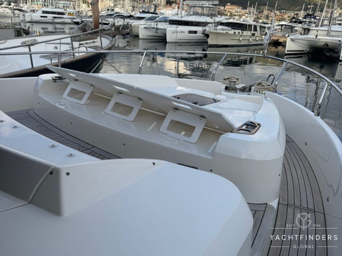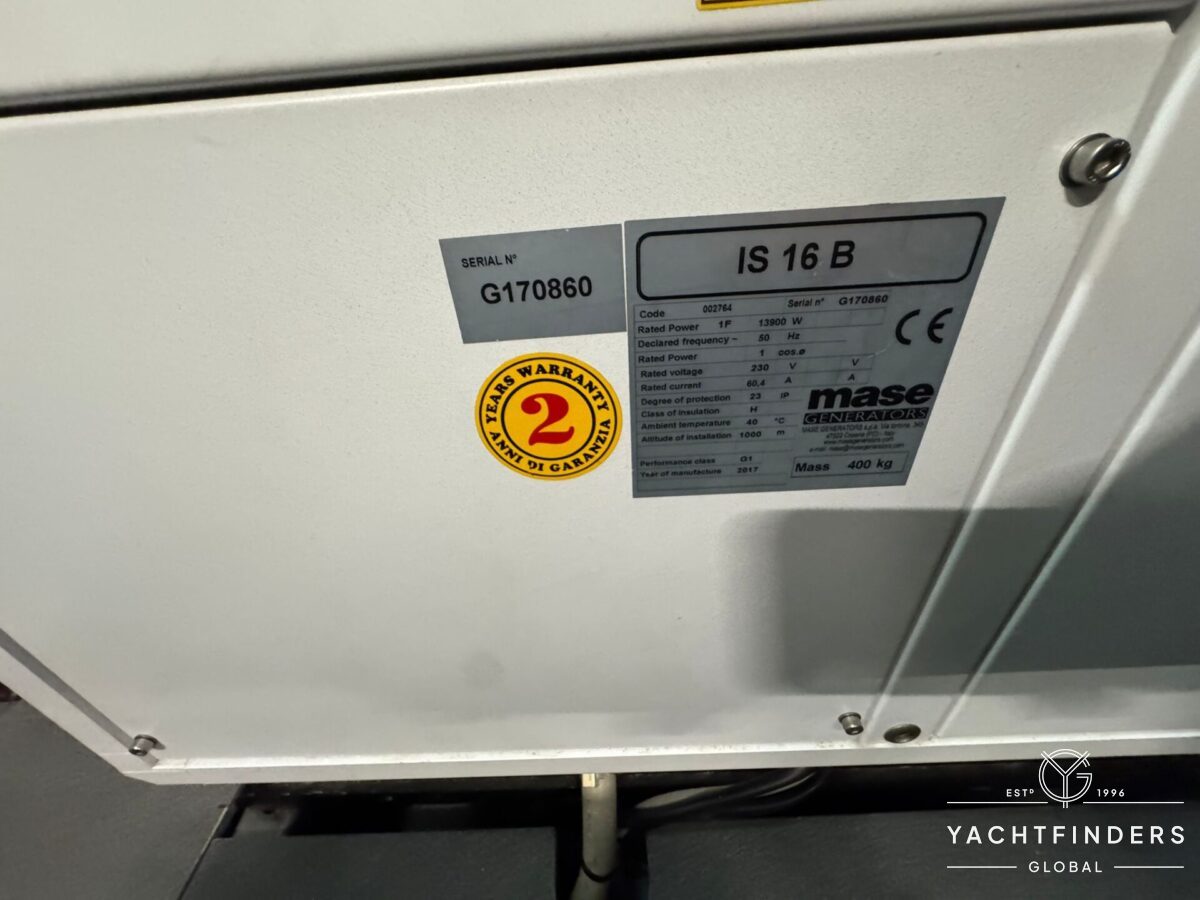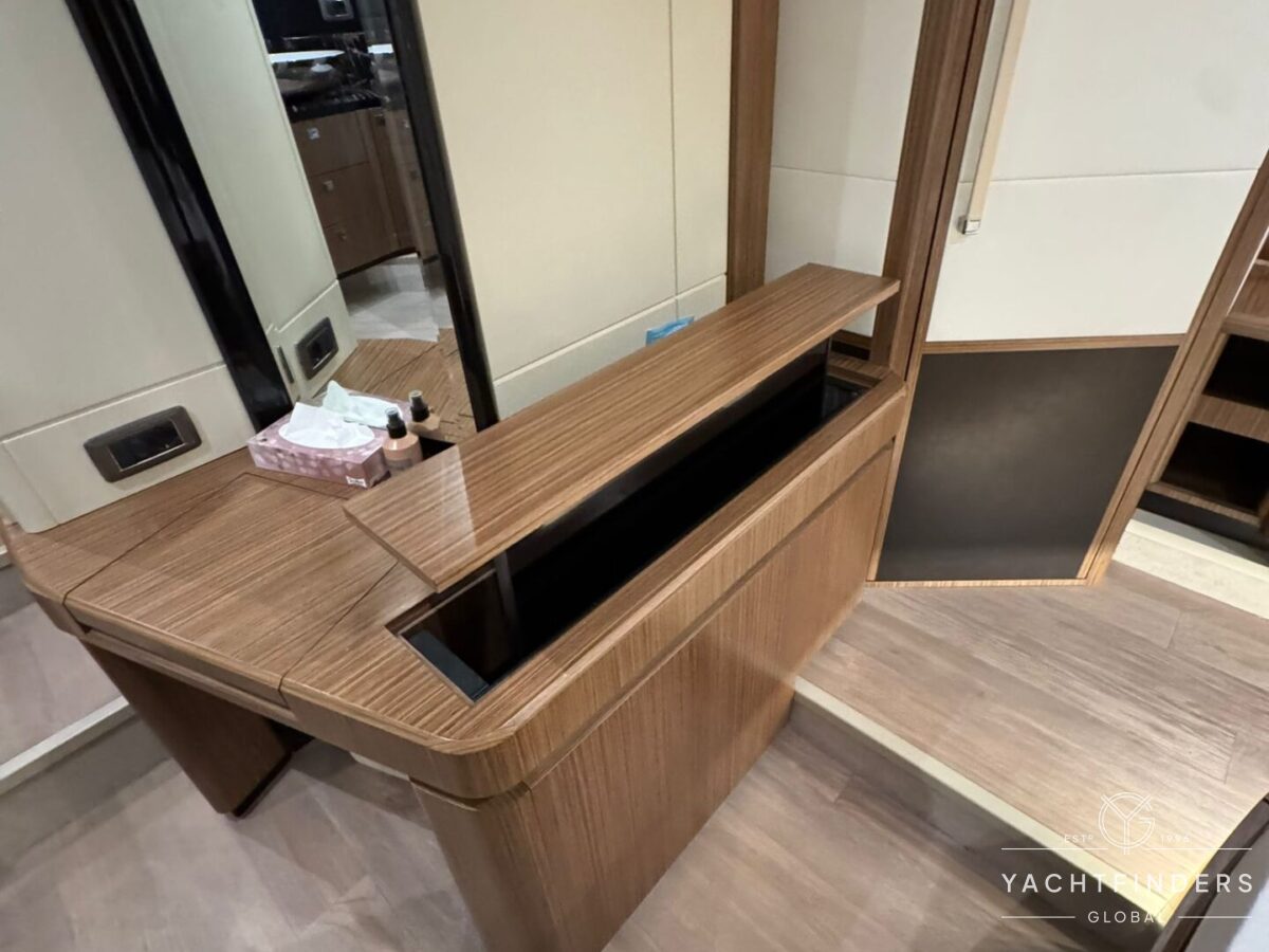 Speakers, Air conditioning, BBQ/ Grill, Boiler, Safe, Reversible air conditioning, Freezer, Cockpit cover, Galley, Complete cushions, Satellite decoder, Watermaker, Oven, External refrigerator, Internal refrigerator, Home Theater, TV system, Waste water system, Waste water tank indicator, Water tank indicator, Fuel tank indicator, Inverter, Washer-dryer, Dishwasher, TV sliding mechanism, Blinds, Wooden interior floor, Ceramic hob, Watertight door, Internal sockets 12v, Internal sockets 220v, Heating, Waste water tank, Stereo, TV, Camera, Window covers, Fly cover, Console cover, Seat cover, Electric marine toilet, Wine cooler, Mosquito nets