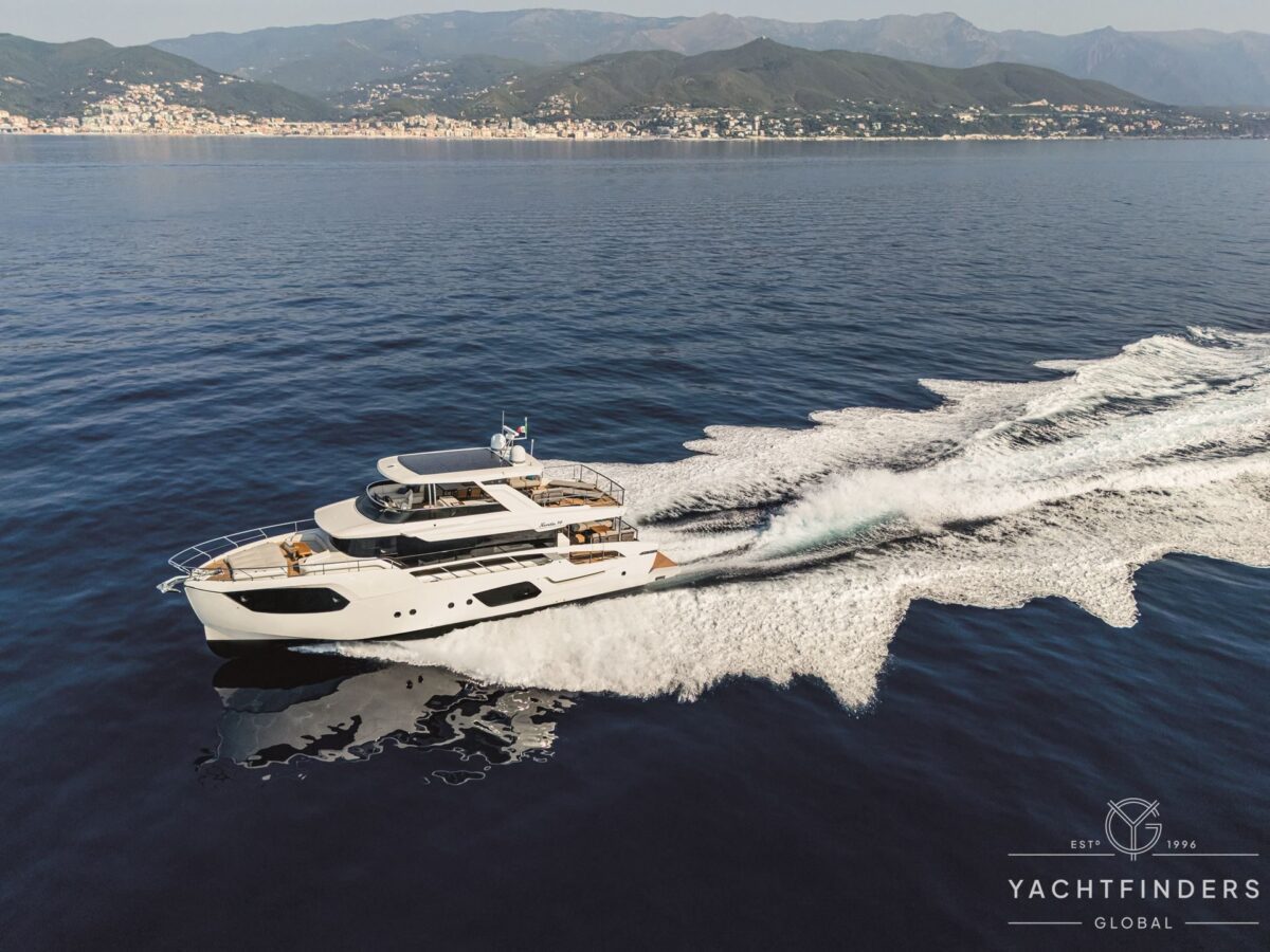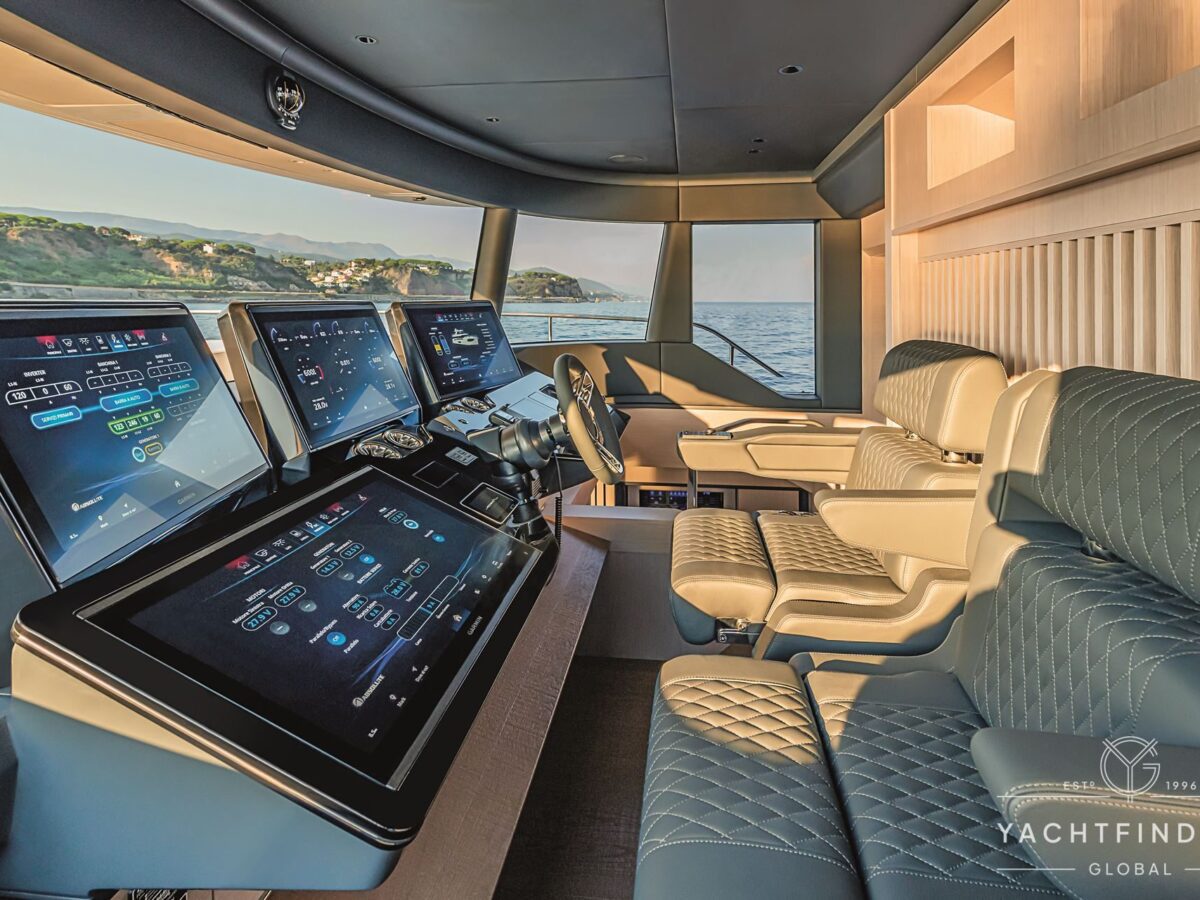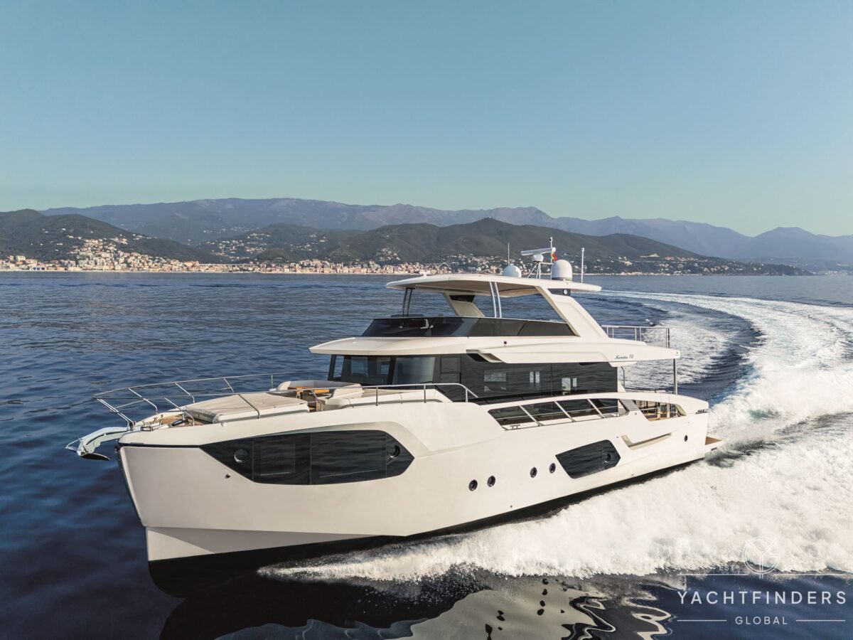 From the dynamic exterior looks of eye-catching glamour, the flybridge and cockpit terrace far larger than other comparable yachts, right through to the superb design of the interiors in a contemporary style featuring light colours and natural materials, every detail of the Absolute Navetta 70 expresses the allure of an entirely new model. Its vocation for luxury is heralded by its unmistakable looks, with Absolute’s hallmarks such as the iconic open lateral parapets with sloping columns, but much more besides: the architecture and design of a genuine trend icon.