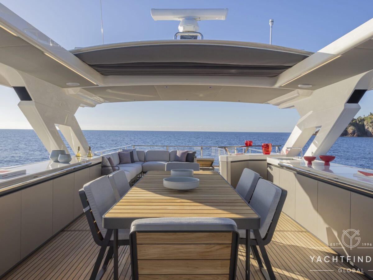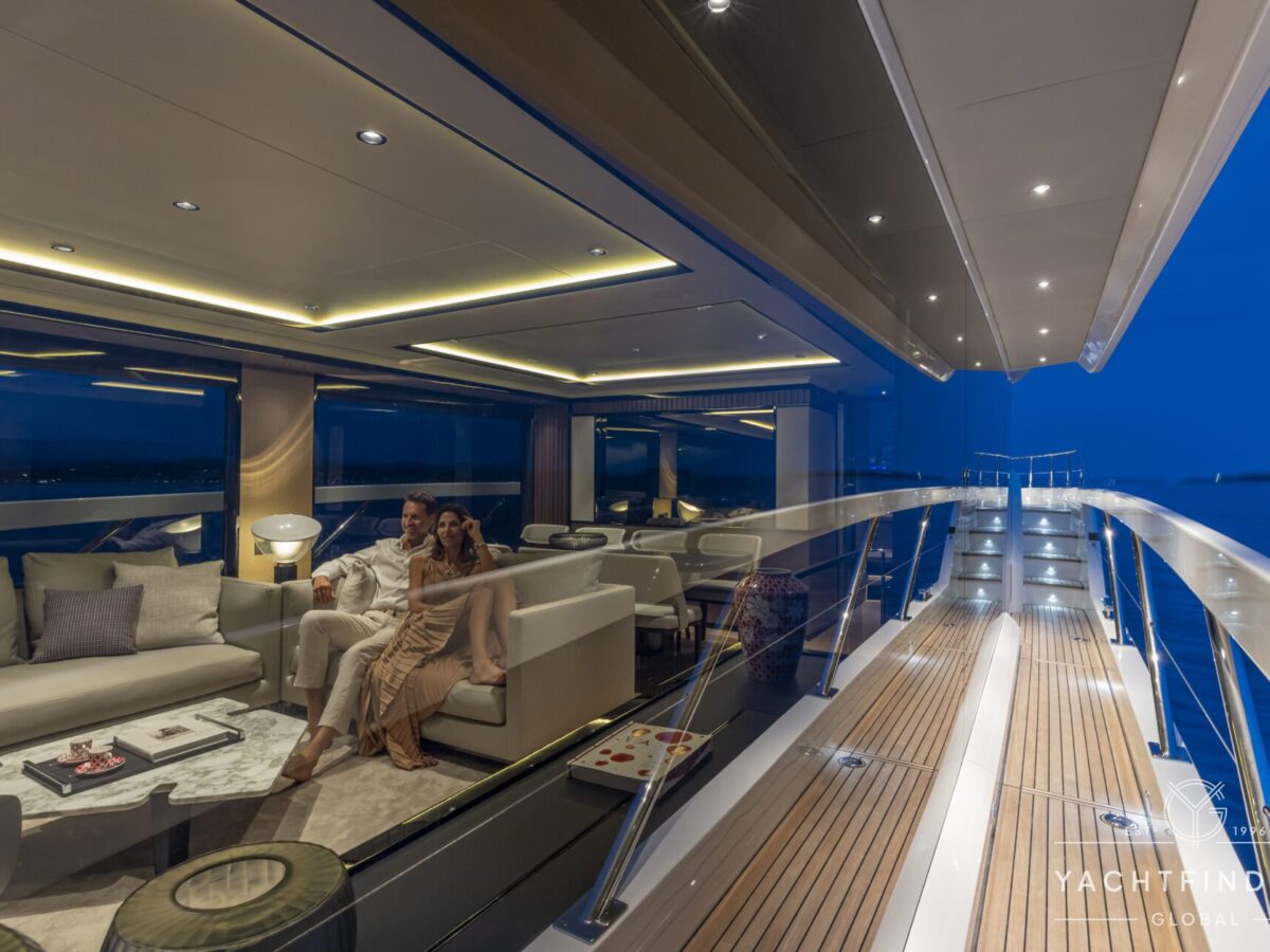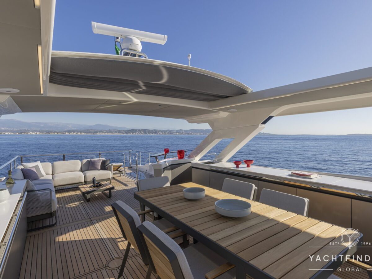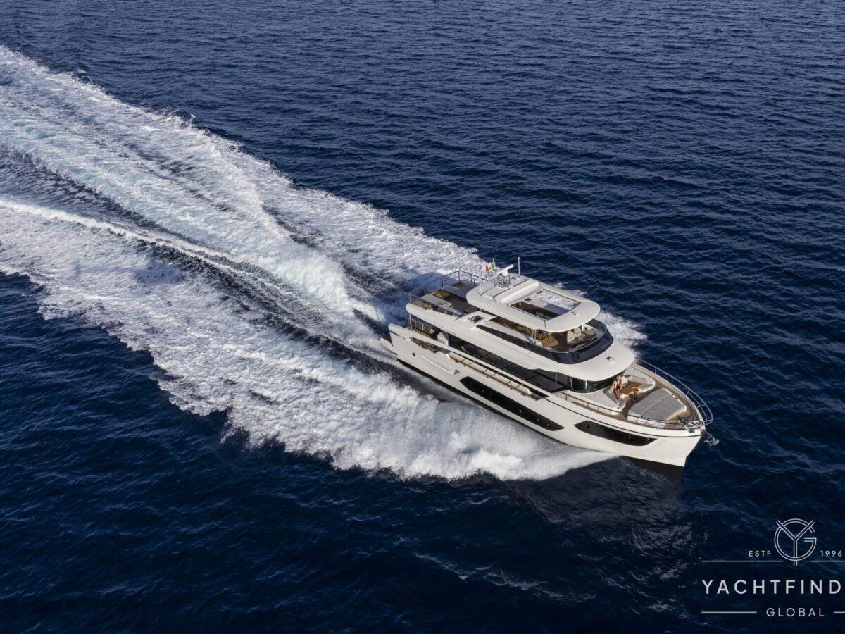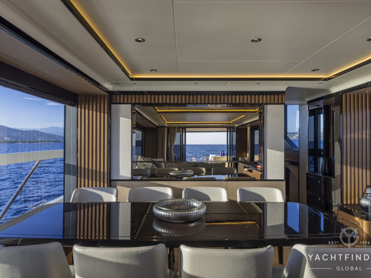 competitors and that boat owners value the most. She was designed to deliver a key message for the company: to see design as a combination of innovative technology and style, aiming for absolute balance, including excellence and, as a result, the search for completeness.