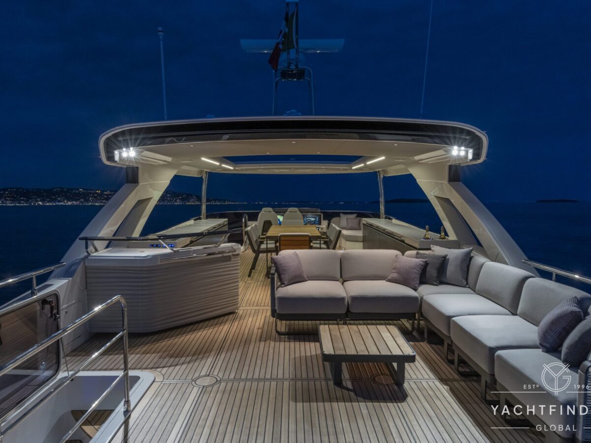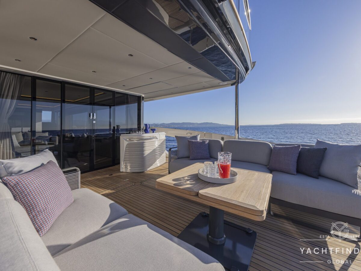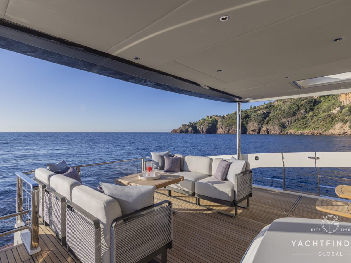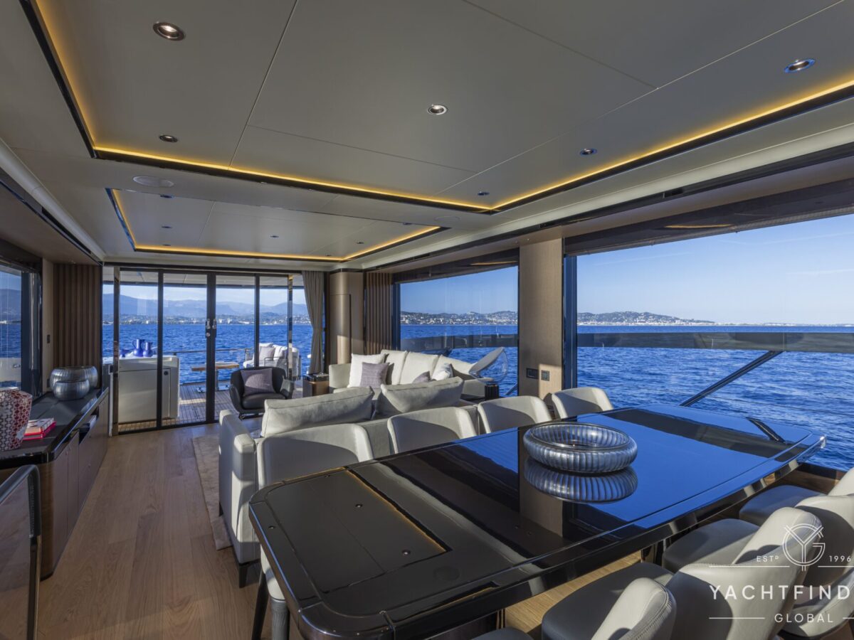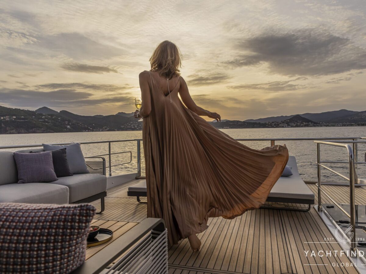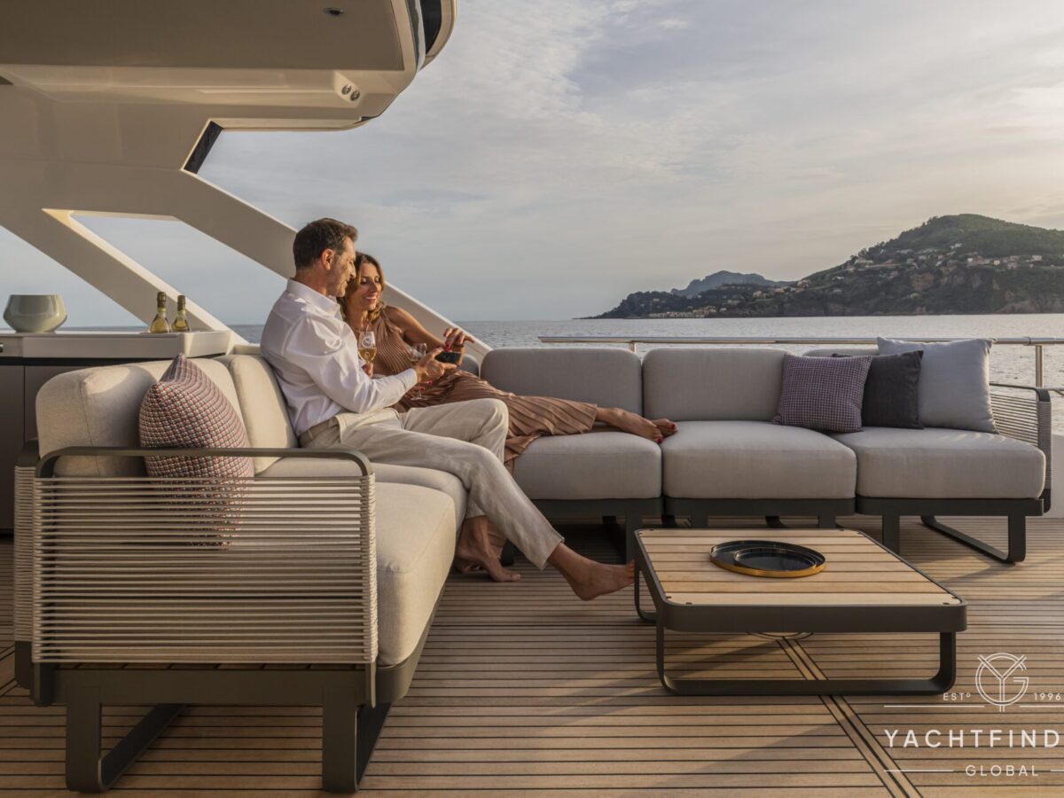 competitors and that boat owners value the most. She was designed to deliver a key message for the company: to see design as a combination of innovative technology and style, aiming for absolute balance, including excellence and, as a result, the search for completeness.
