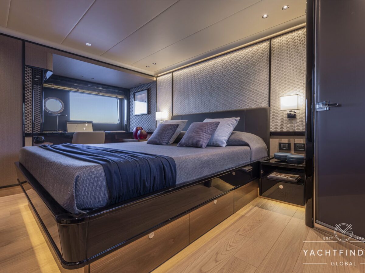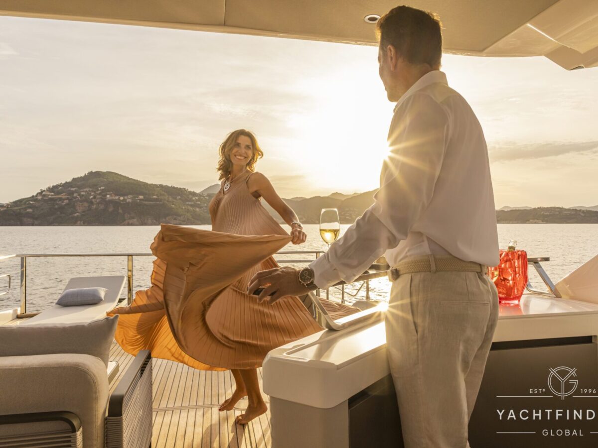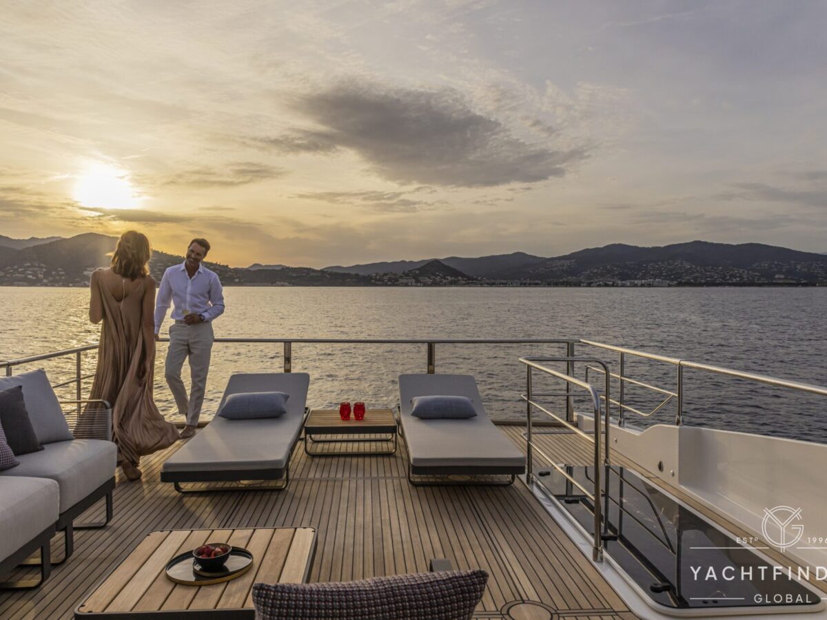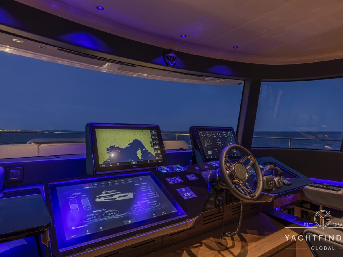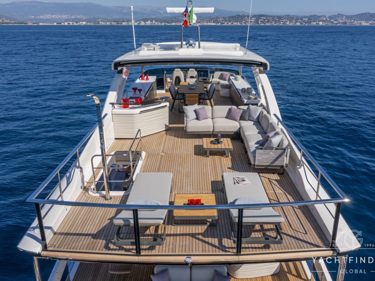 competitors and that boat owners value the most. She was designed to deliver a key message for the company: to see design as a combination of innovative technology and style, aiming for absolute balance, including excellence and, as a result, the search for completeness.