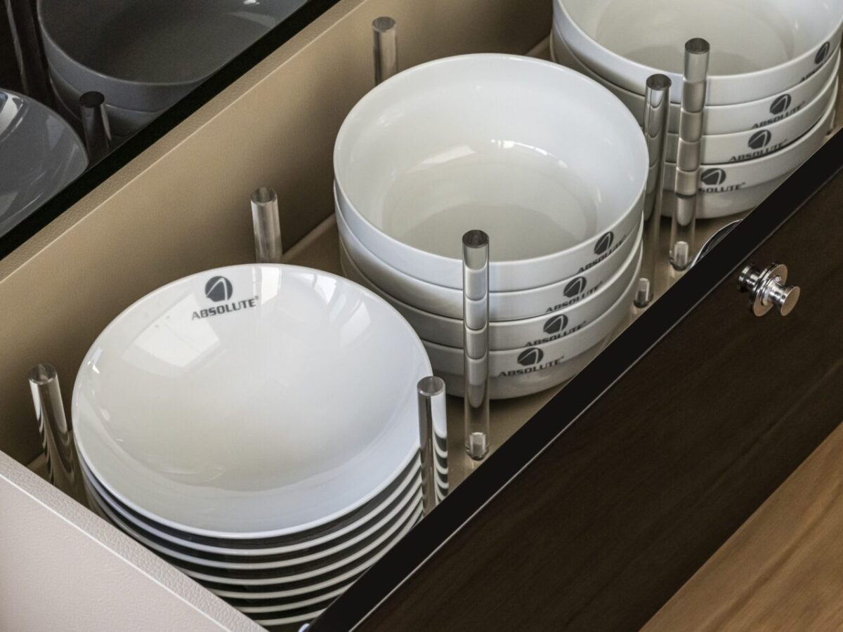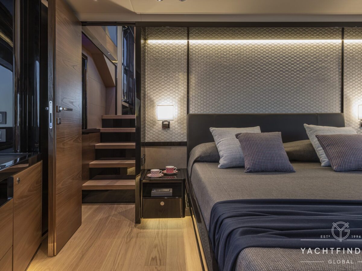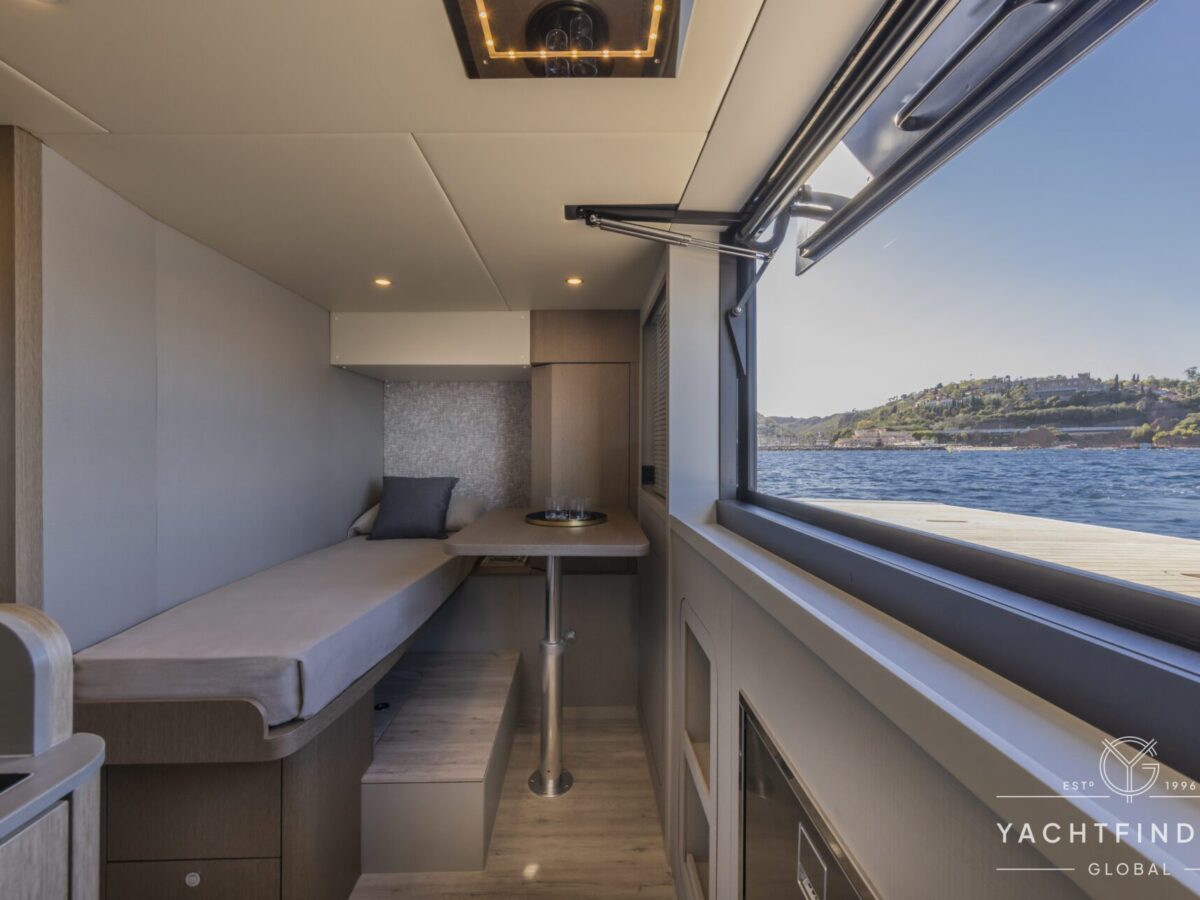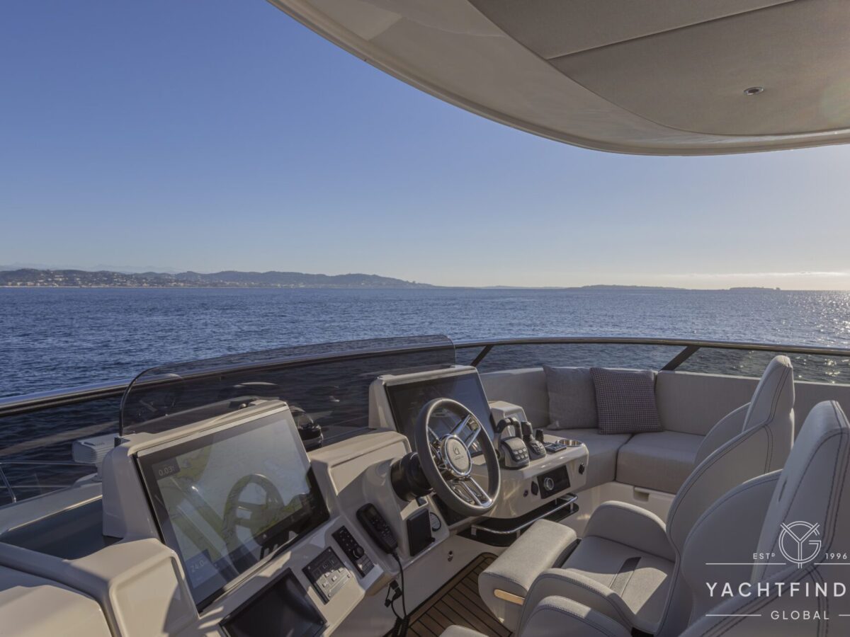Offering optimised space, superior functionality and undisputed luxury, all Absolute boats have the same features as higher-category yachts. Similarly, Navetta 75 is as spacious as a mega-yacht; at the bow, you will find a full-beam owner’s cabin with private access and an en-suite bathroom on a raised level above the lower deck; at midship, there are two double cabins with private bathrooms and a twin bed cabin with a day-head. With the Navetta 75, Absolute proves once again that research can be used to elevate design and meet every need onboard, from sliding doors to generous storage compartments. Furthermore, the shipyard provides impressive solutions by offering beautifully designed external and internal areas for good times with friends and family and for absolute versatility in the flybridge and cockpit areas, with modular furnishings with no fixed structural elements.