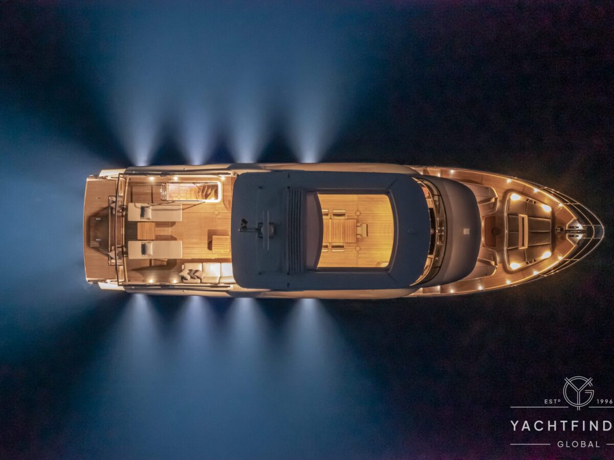 This sphere – the boat – represents all the boats that came before her, forming Absolute’s current range alongside the Navetta 75. She incorporates the shipyard’s most unique features and style, the strengths that set it apart from