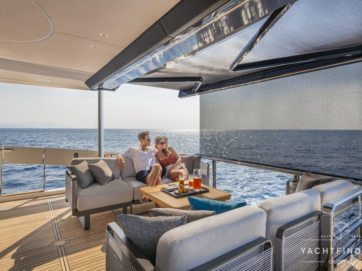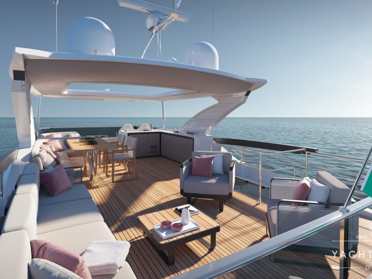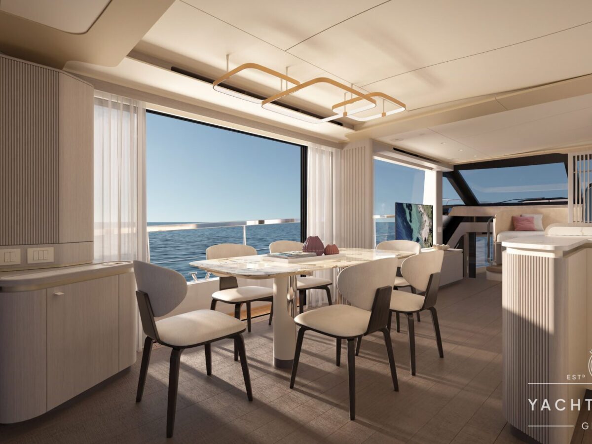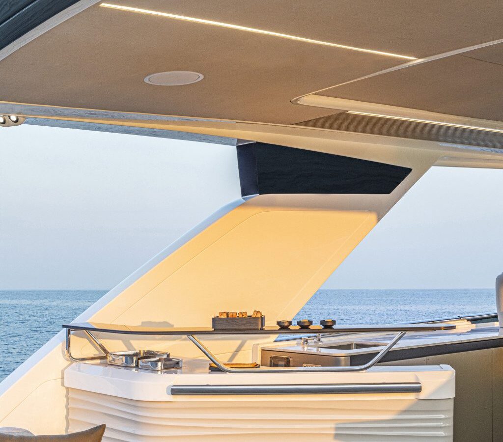 Absolute proudly presents the new 70 FLY, a yacht that reimagines luxury at sea. Designed to enhance every moment on the water, it features expansive glazing for uninterrupted views, seamlessly blending the interior with the surrounding seascape. Among its standout innovations is the new stern bathing platform—a first for Absolute— crafted to slide effortlessly into the sea. With integrated non-slip steps and dedicated storage for sea toys, this feature brings a new dimension of enjoyment for those who love the water. The yacht’s external lighting appliances are also significant features, adding atmospheric touches of luminance that enhance the craft’s beautiful lines.