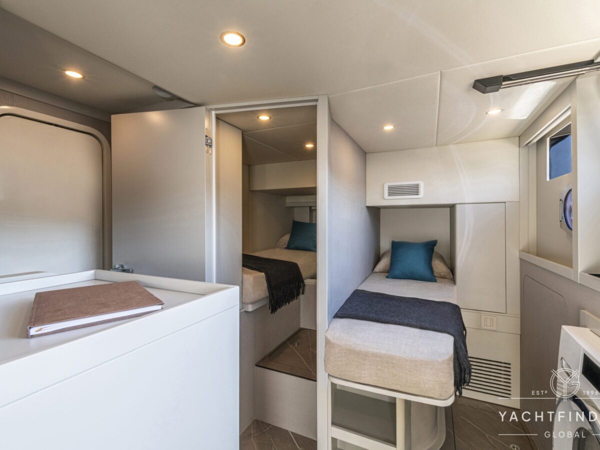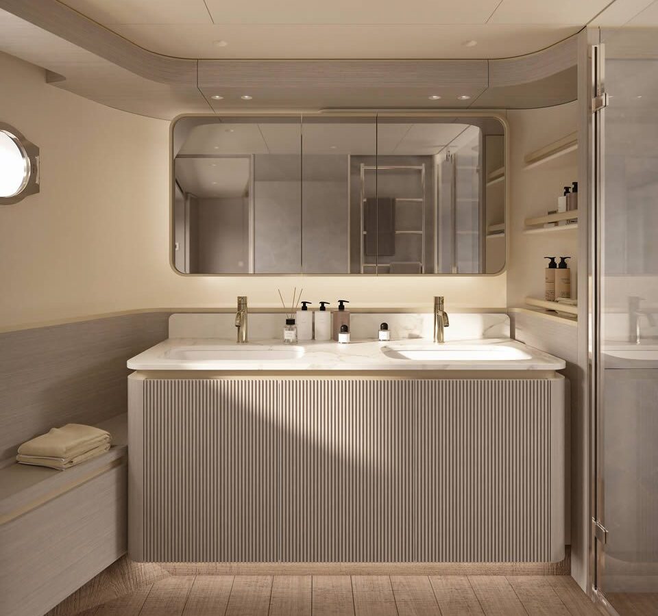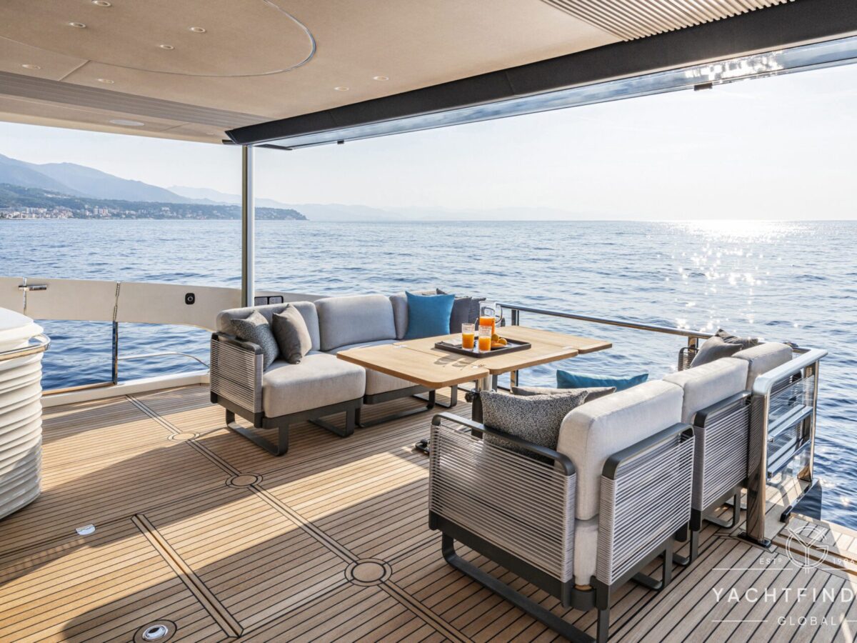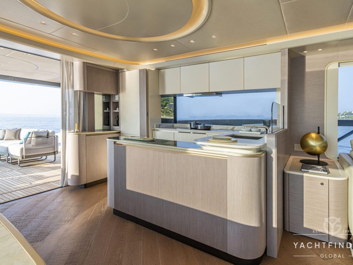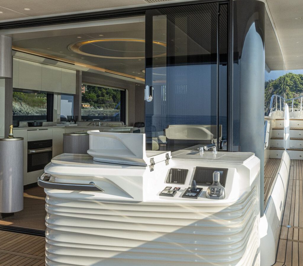 Absolute proudly presents the new 70 FLY, a yacht that reimagines luxury at sea. Designed to enhance every moment on the water, it features expansive glazing for uninterrupted views, seamlessly blending the interior with the surrounding seascape. Among its standout innovations is the new stern bathing platform—a first for Absolute— crafted to slide effortlessly into the sea. With integrated non-slip steps and dedicated storage for sea toys, this feature brings a new dimension of enjoyment for those who love the water. The yacht’s external lighting appliances are also significant features, adding atmospheric touches of luminance that enhance the craft’s beautiful lines.