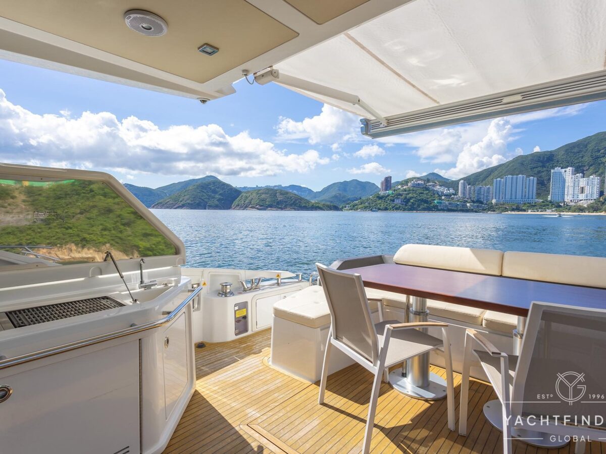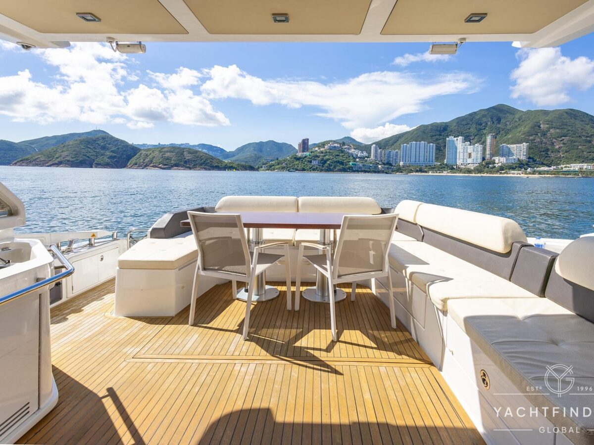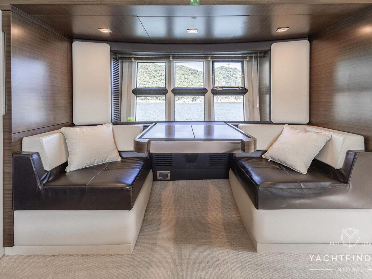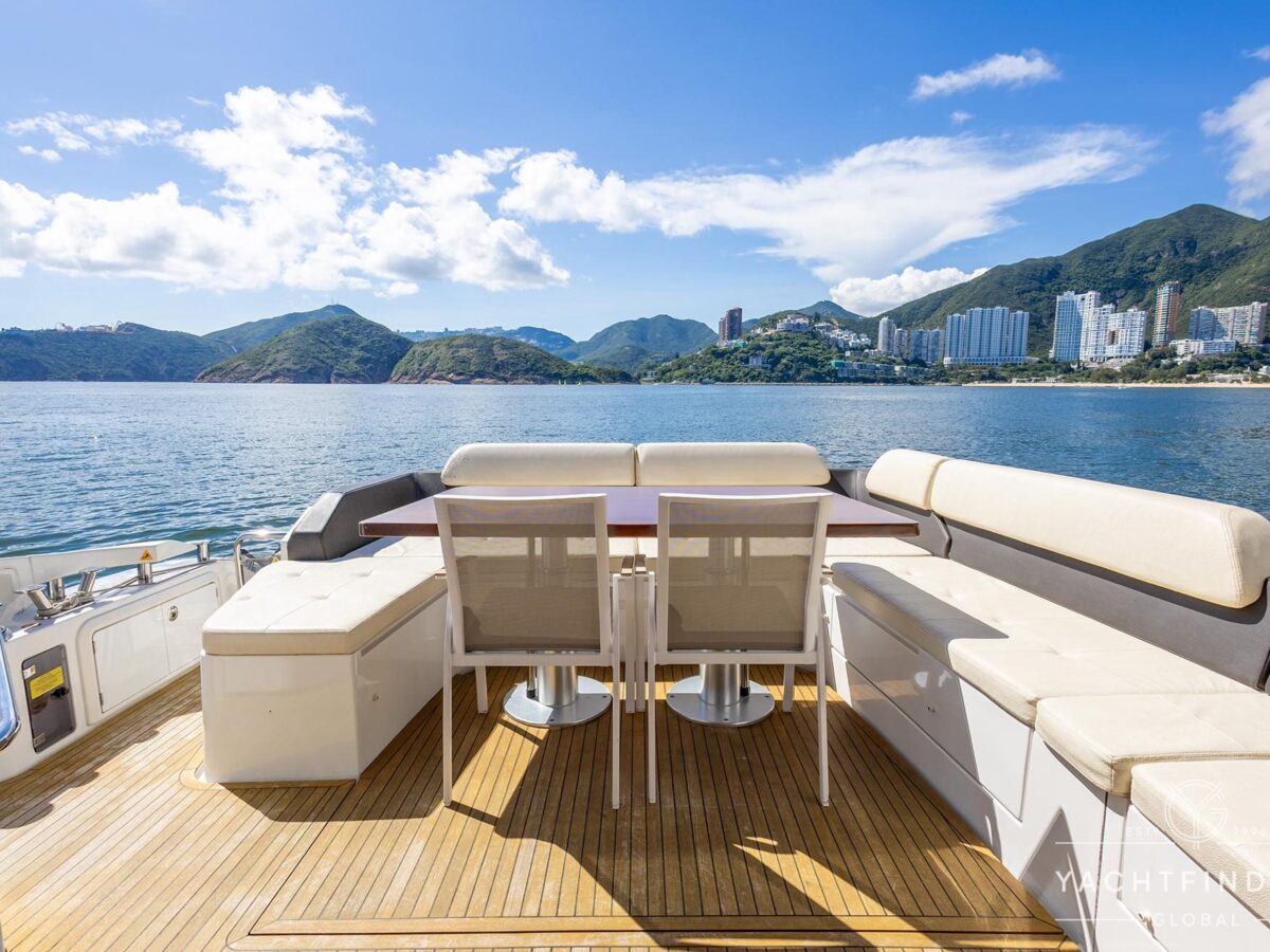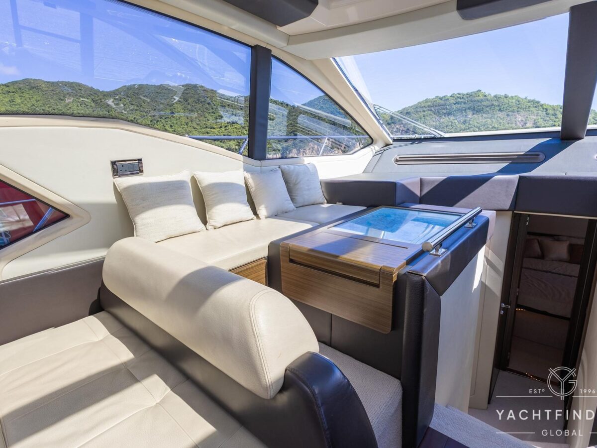 This boat is a true head-turner, boasting a seductive exterior and a stunningly beautiful, elegant interior. Its aft and foredeck entertainment areas and sunpad spaces offer endless fun and relaxation on the water. Additionally, it includes a sun and lounge area and a convenient cockpit table for onboard dining, enhancing the overall experience.