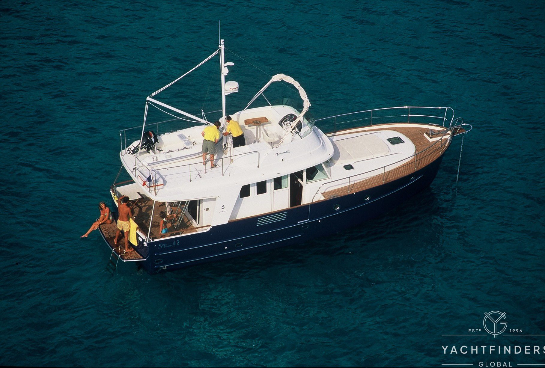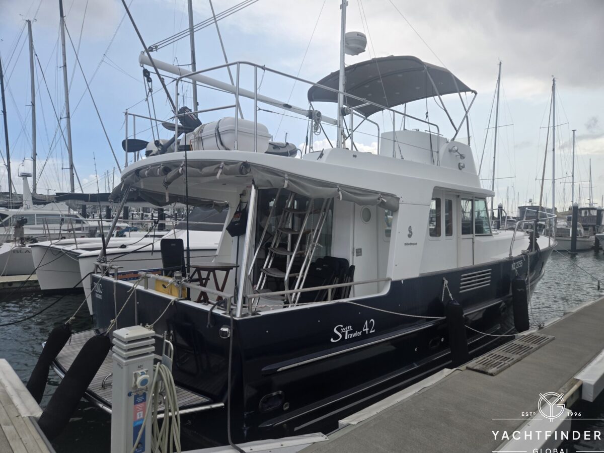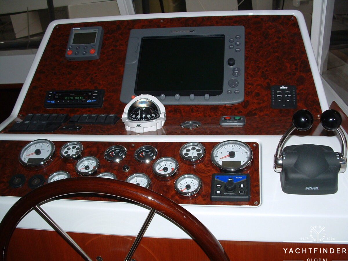 SWIFT TRAWLER 42, built by BENETEAU, the model year 2005, same owner since 2005, VOLVO D6 – 2 x 310Hp engines, bow thruster, teak deck, flying bridge teak deck, Webasto heating system, Onan generator, Mastervolt inverter, water maker (needs to be serviced), flying bridge and wheelhouse chart plotter, radar, TV & antenna, electric WC, wasting tank, etc.