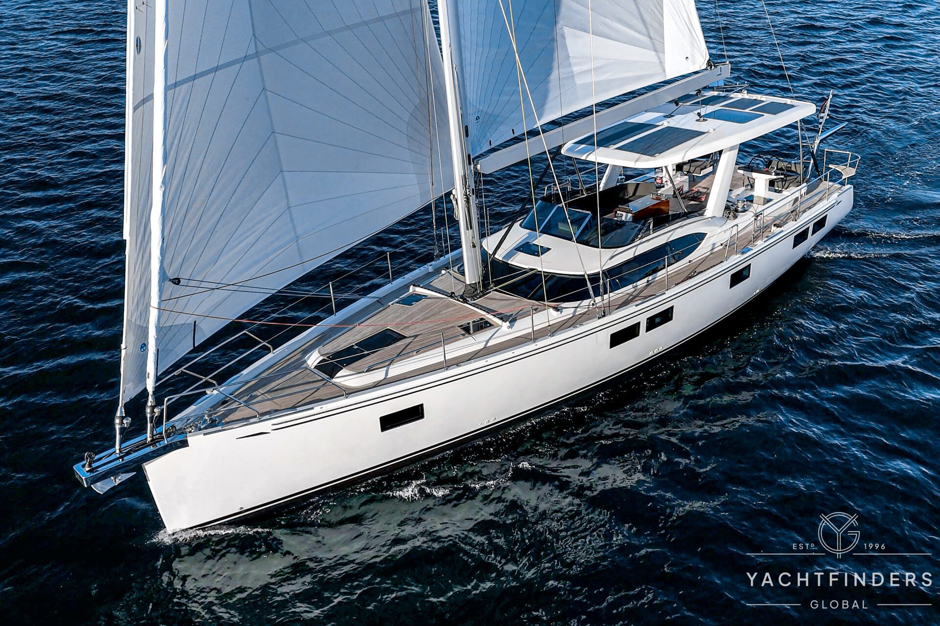 The “Boat of the Year” Hylas H57 brings a fresh look and game-changing lifestyle enhancements that redefine life on board. What hasn’t changed is the build quality and capability you would expect from a Hylas. Uncluttered decks for ease of movement. An integrated hardtop that enhances the yacht’s profile also provides all-weather protection and an opportunity for a full helm enclosure. The hardtop doubles as a perfect platform for solar power. The solent rig and self-tacking jib offer fingertip furling and minimal line handling. A fixed spray shield that takes the edge off upwind legs and is sturdy enough to deflect any greenwater coming aboard. The integrated deck wings and automated swim platform more than double the social space aft of the already expansive cockpit. After sailing on this yacht, you will redefine what socialising, grilling out, and sundowners can look like.
