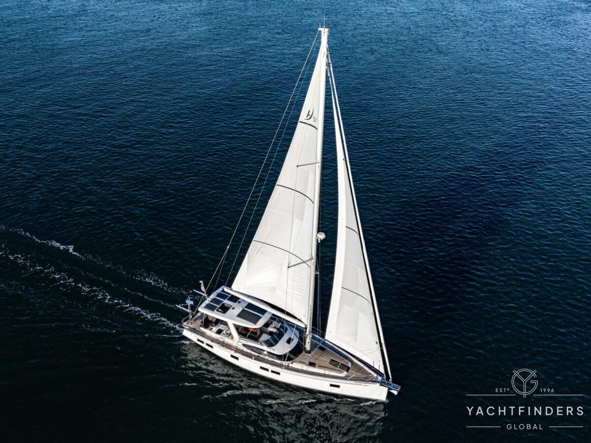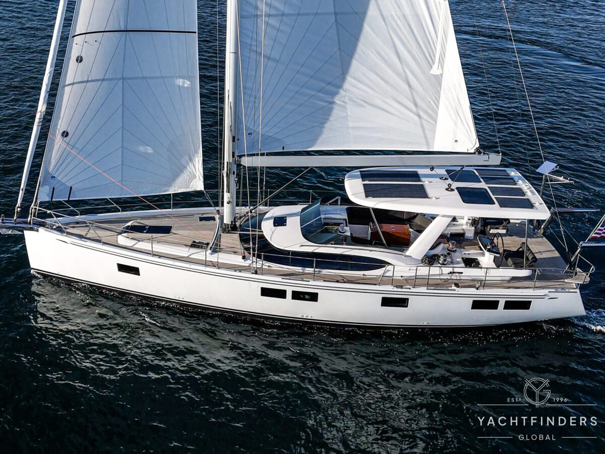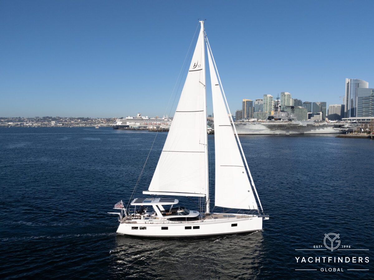 The Hylas H57 is a perfect blend of strength, performance, and luxury, designed for both short-handed sailing and long voyages. With a beautiful painted white hull, teak decks and light oak interior, this gorgeous yacht is ready to take you anywhere. To ensure comfort and independence at sea, this H57 is equipped with a Generator, Air Conditioning, Water-maker, Full Raymarine Electronics, including Radar and two Autopilots.