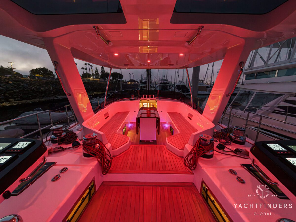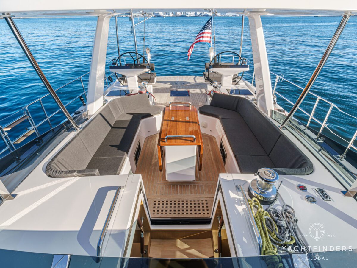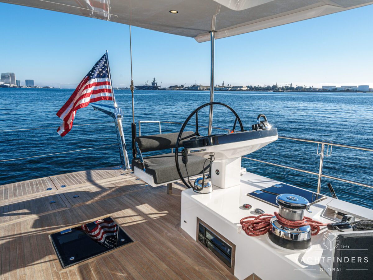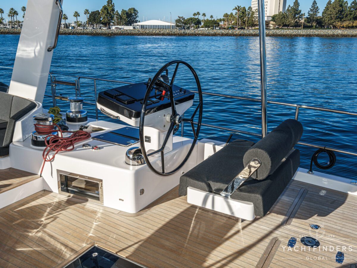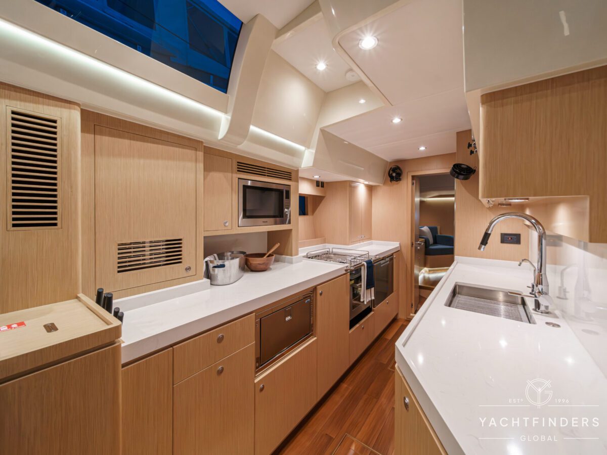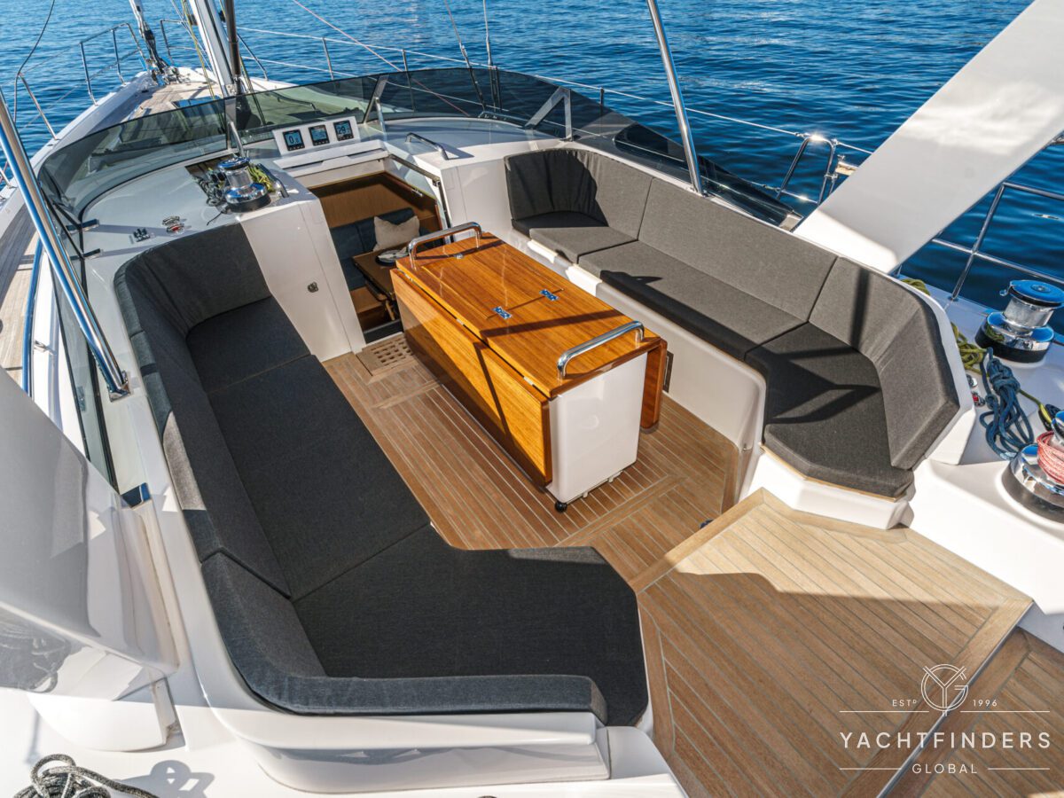 Below decks, the bright and voluminous three-cabin interior is warm and welcoming. Natural light abounds, and the layout is configured for luxurious comfort and an enjoyable living experience underway, while providing a true sense of home when settled at your destination. No horizon is too distant for this award-winning performance cruiser.