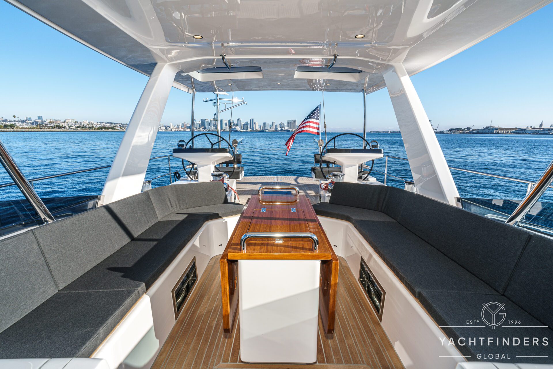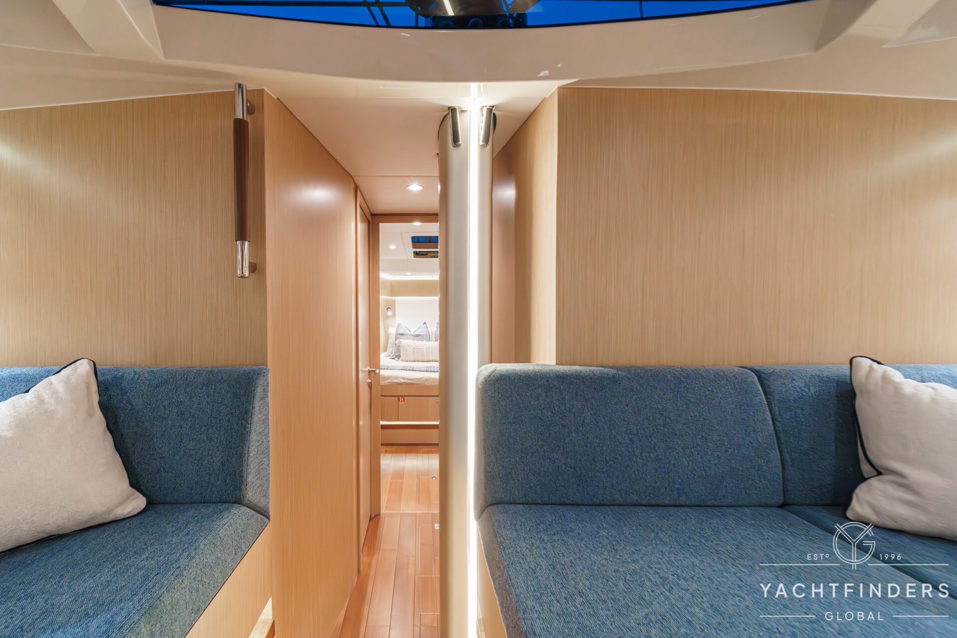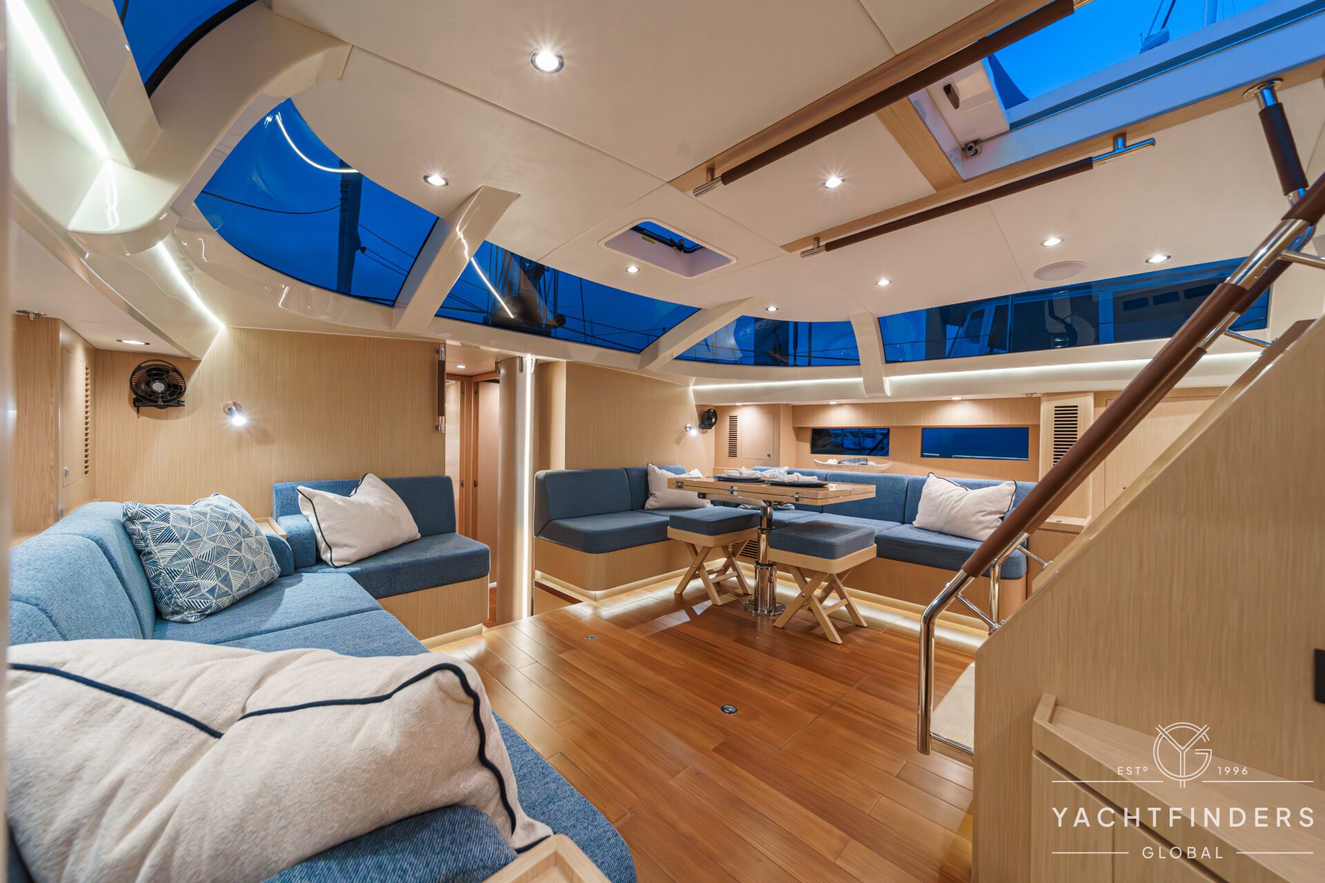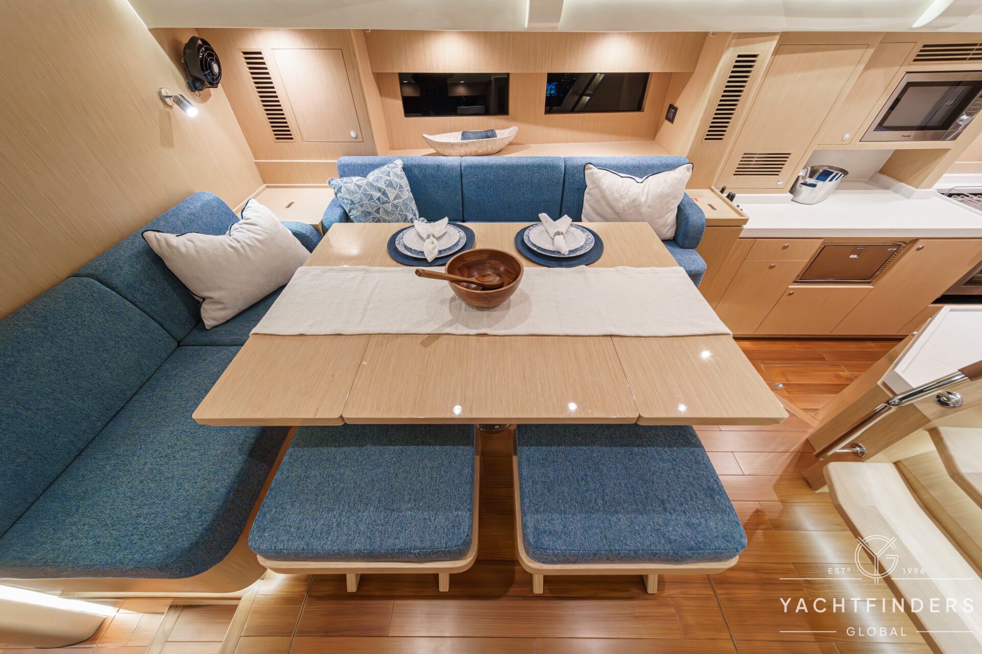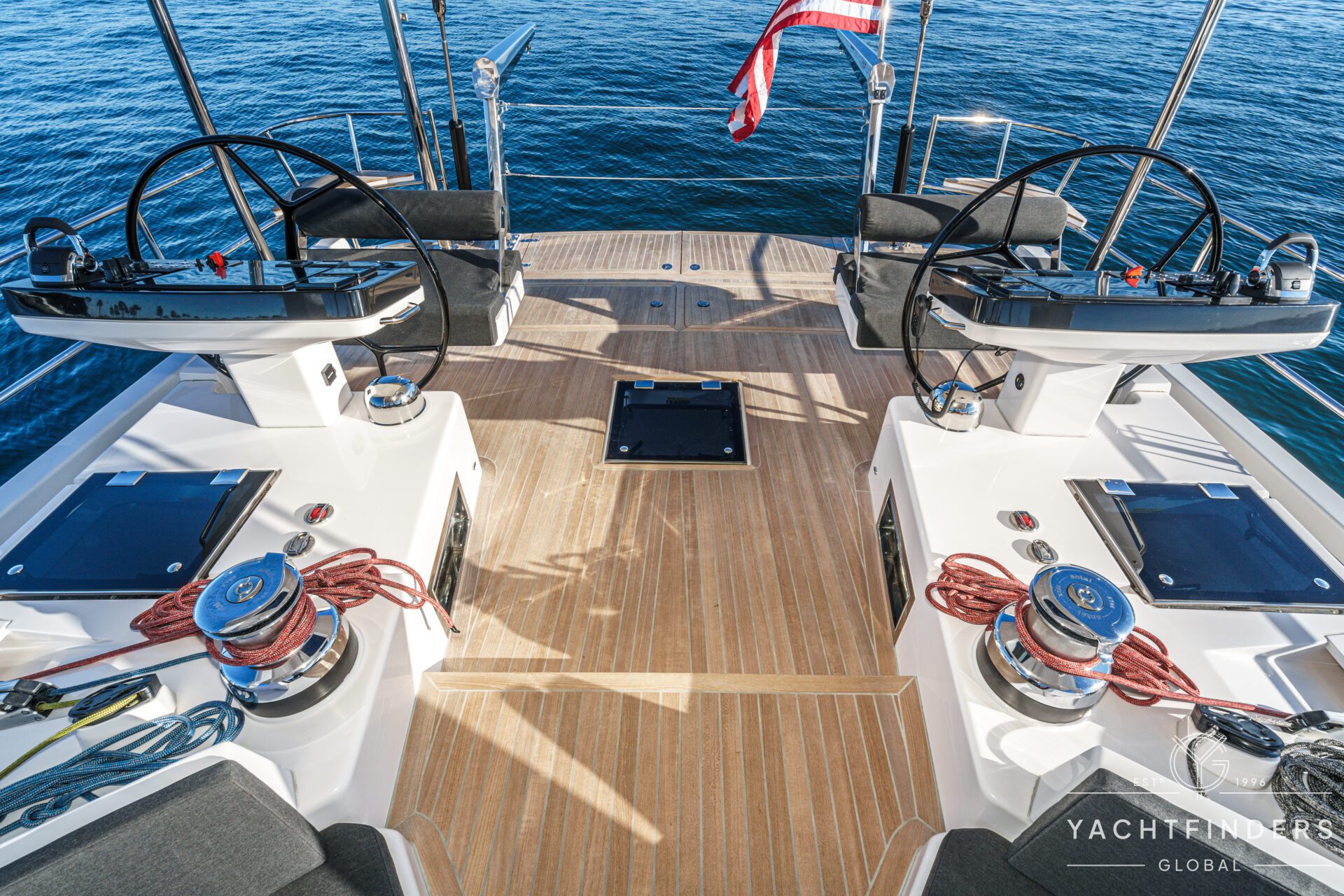 Below decks, the bright and voluminous three-cabin interior is warm and welcoming. Natural light abounds, and the layout is configured for luxurious comfort and an enjoyable living experience underway, while providing a true sense of home when settled at your destination. No horizon is too distant for this award-winning performance cruiser.