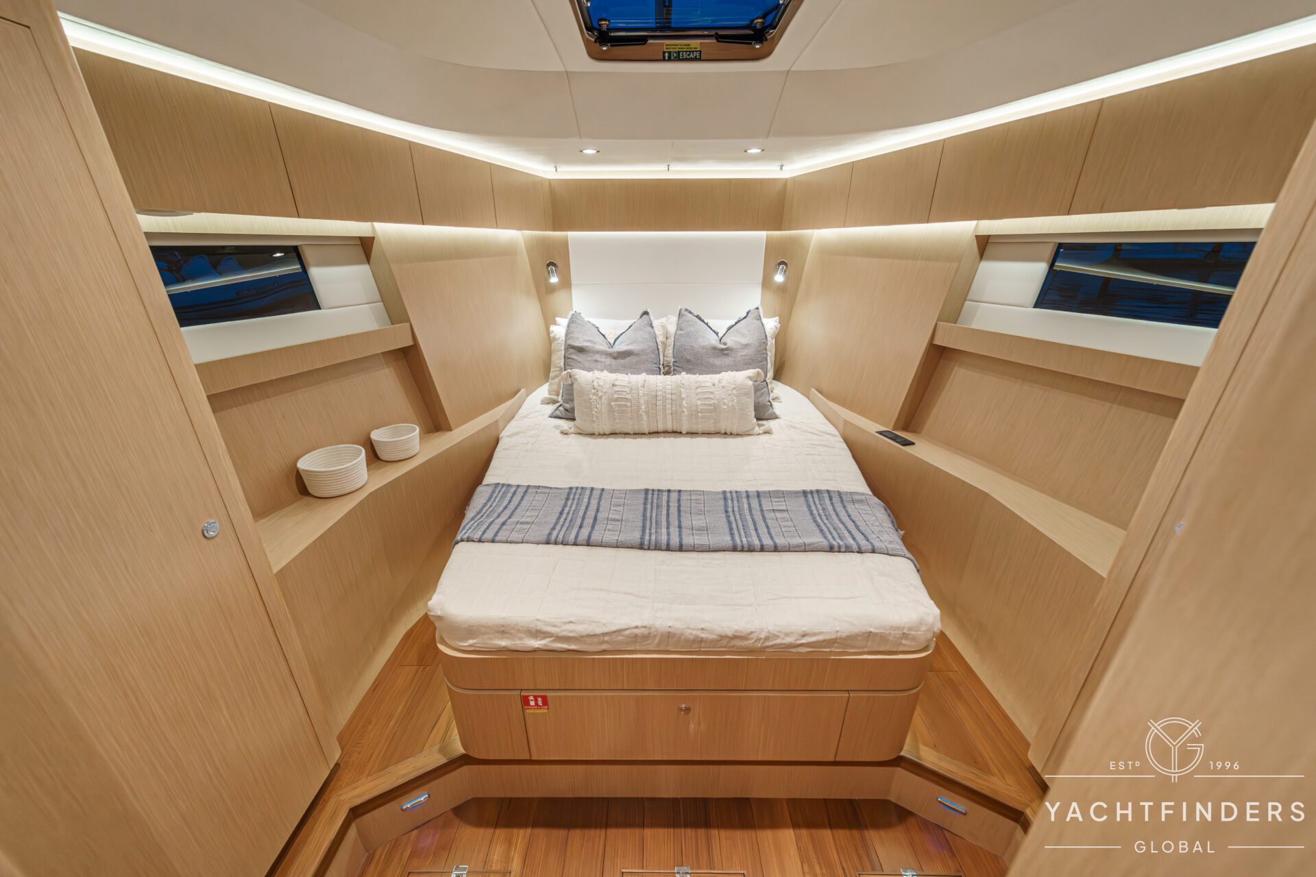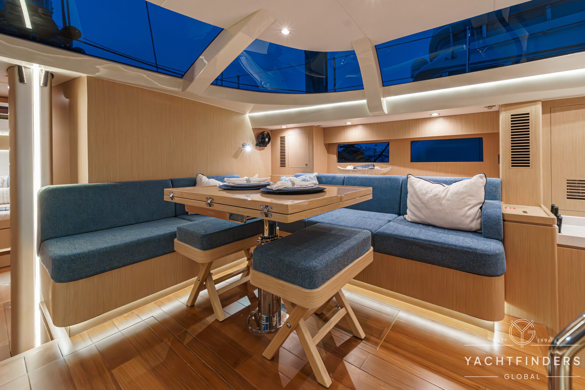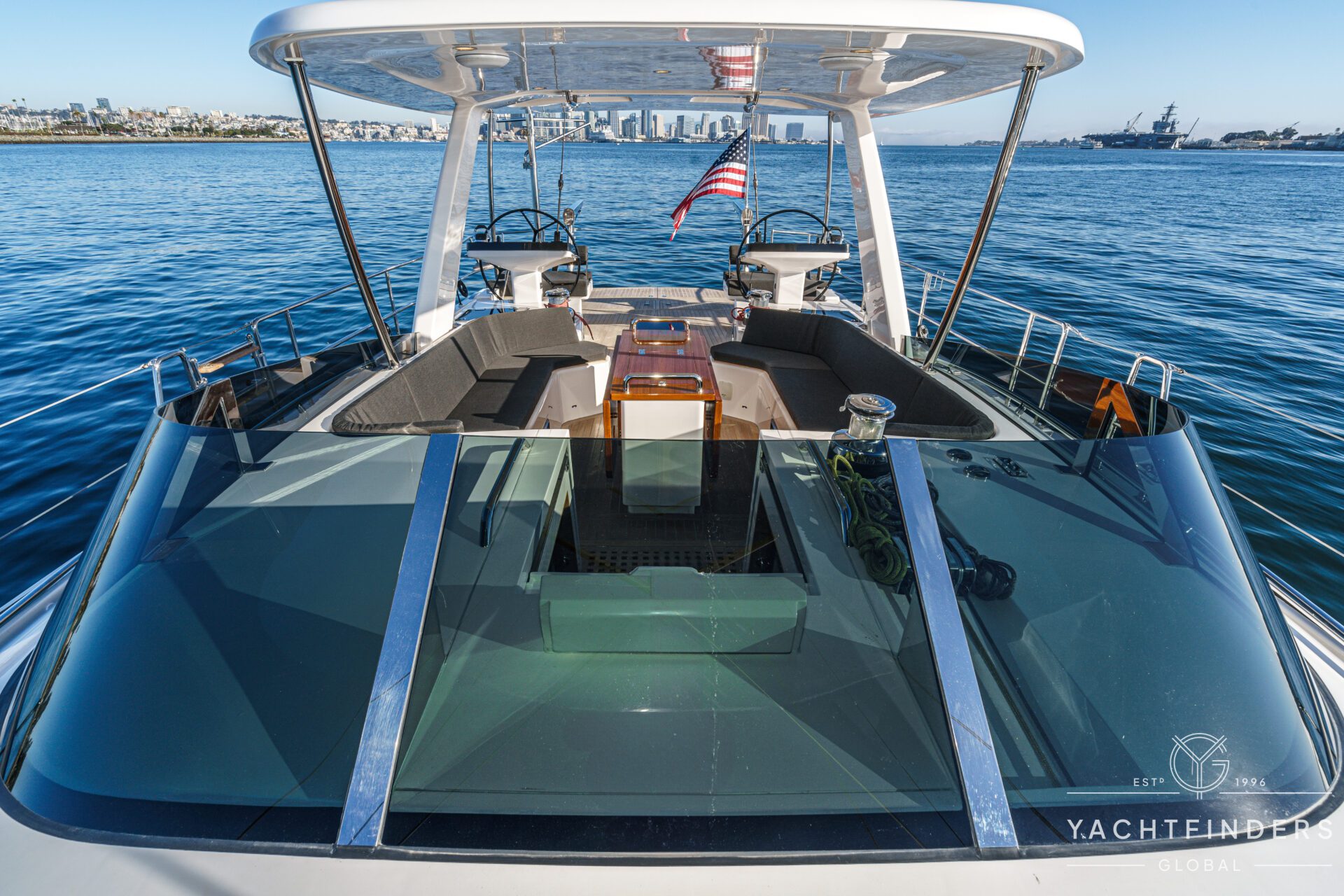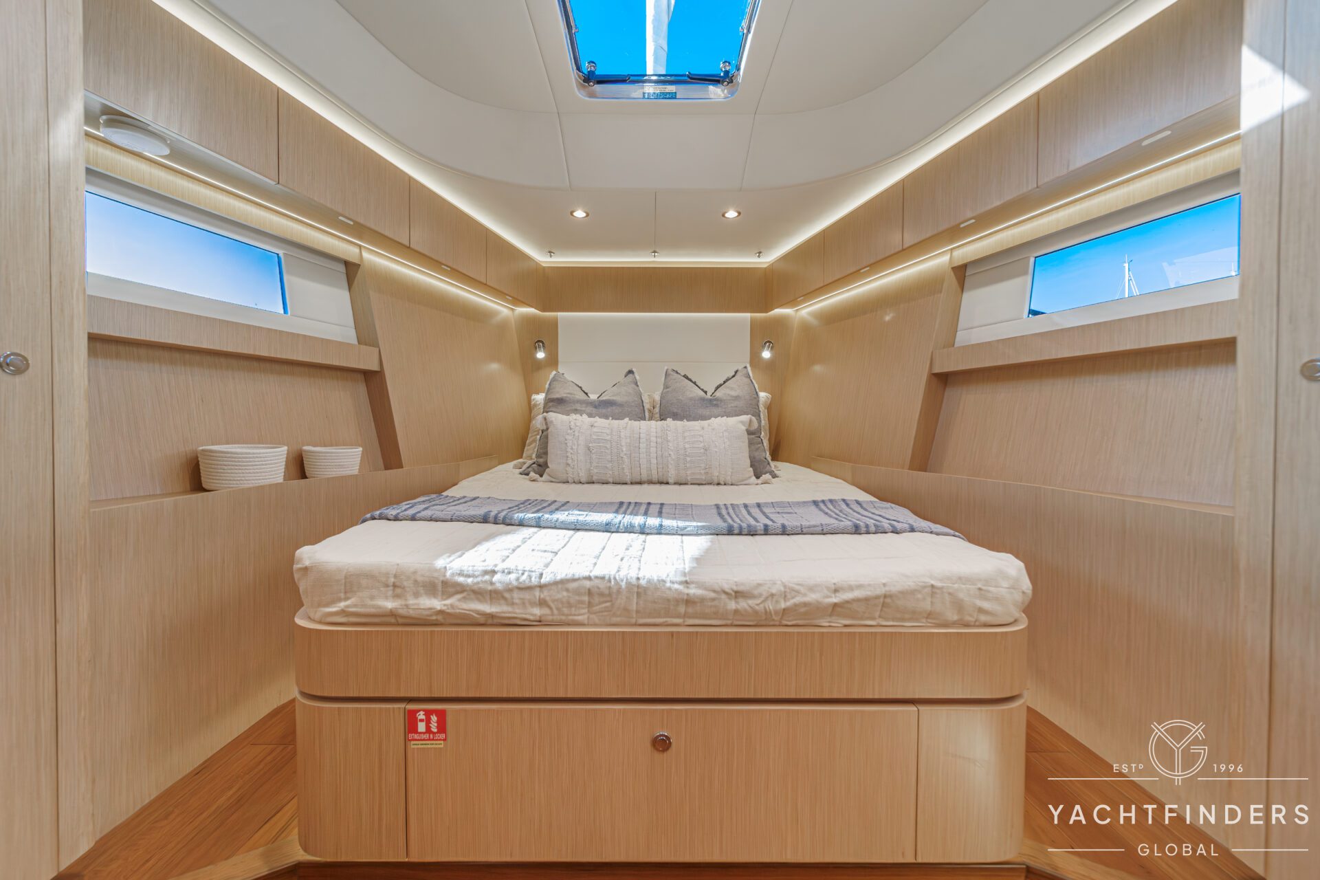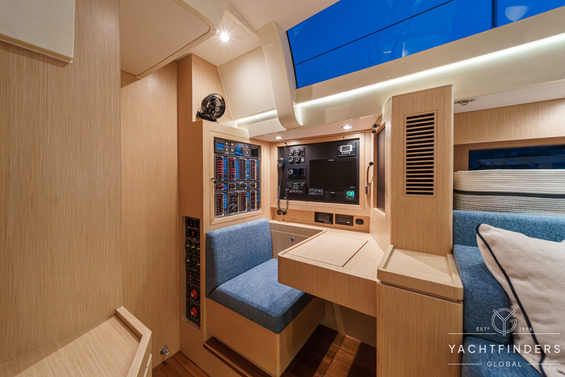Below decks, the bright and voluminous three-cabin interior is warm and welcoming. Natural light abounds, and the layout is configured for luxurious comfort and an enjoyable living experience underway, while providing a true sense of home when settled at your destination. No horizon is too distant for this award-winning performance cruiser.
