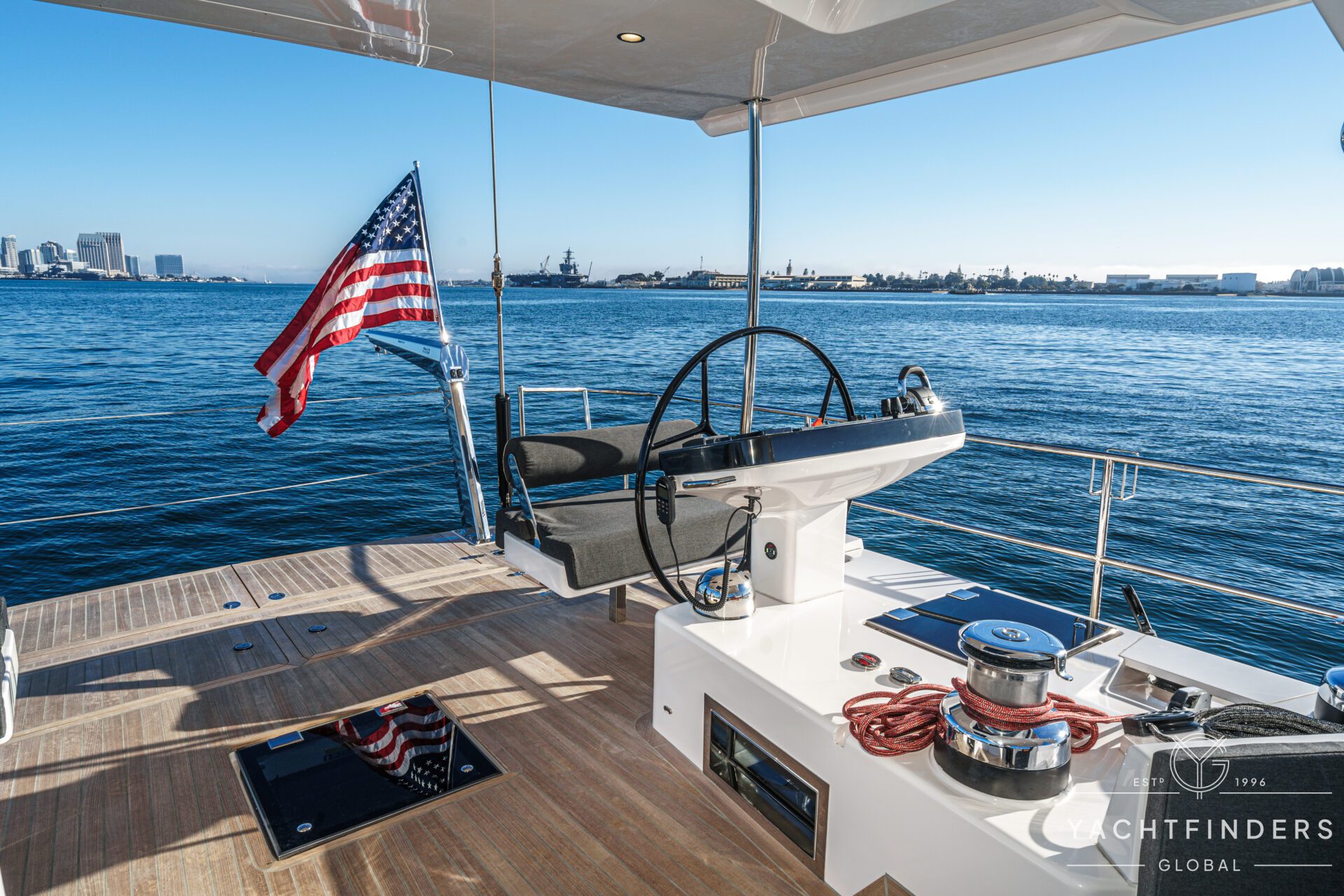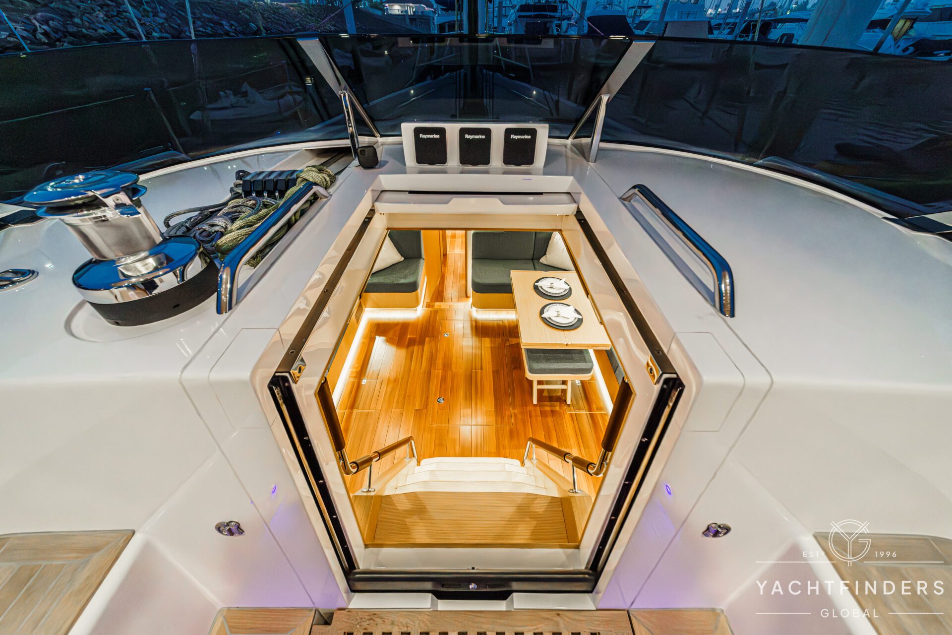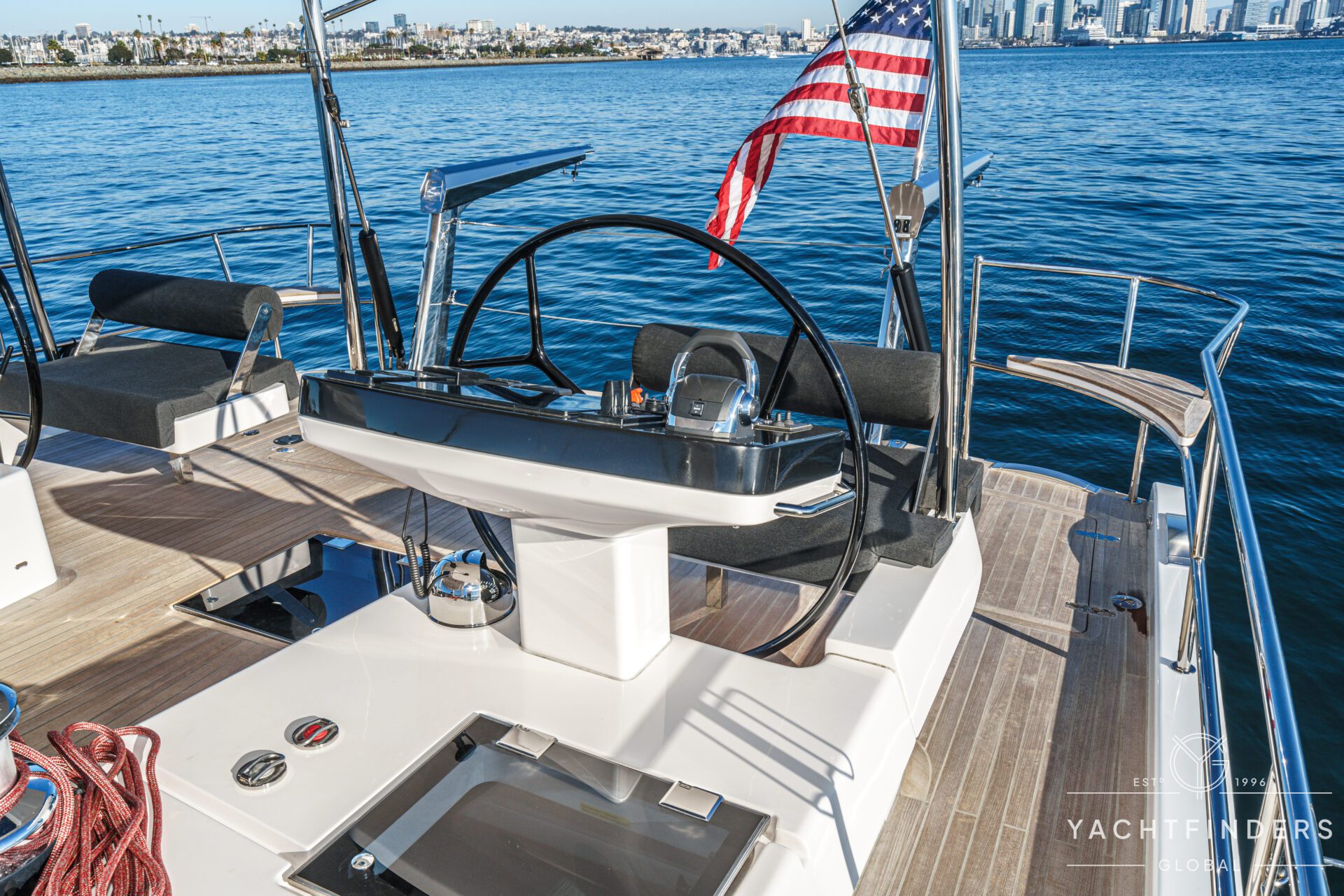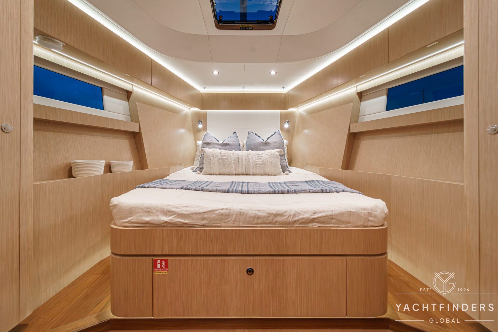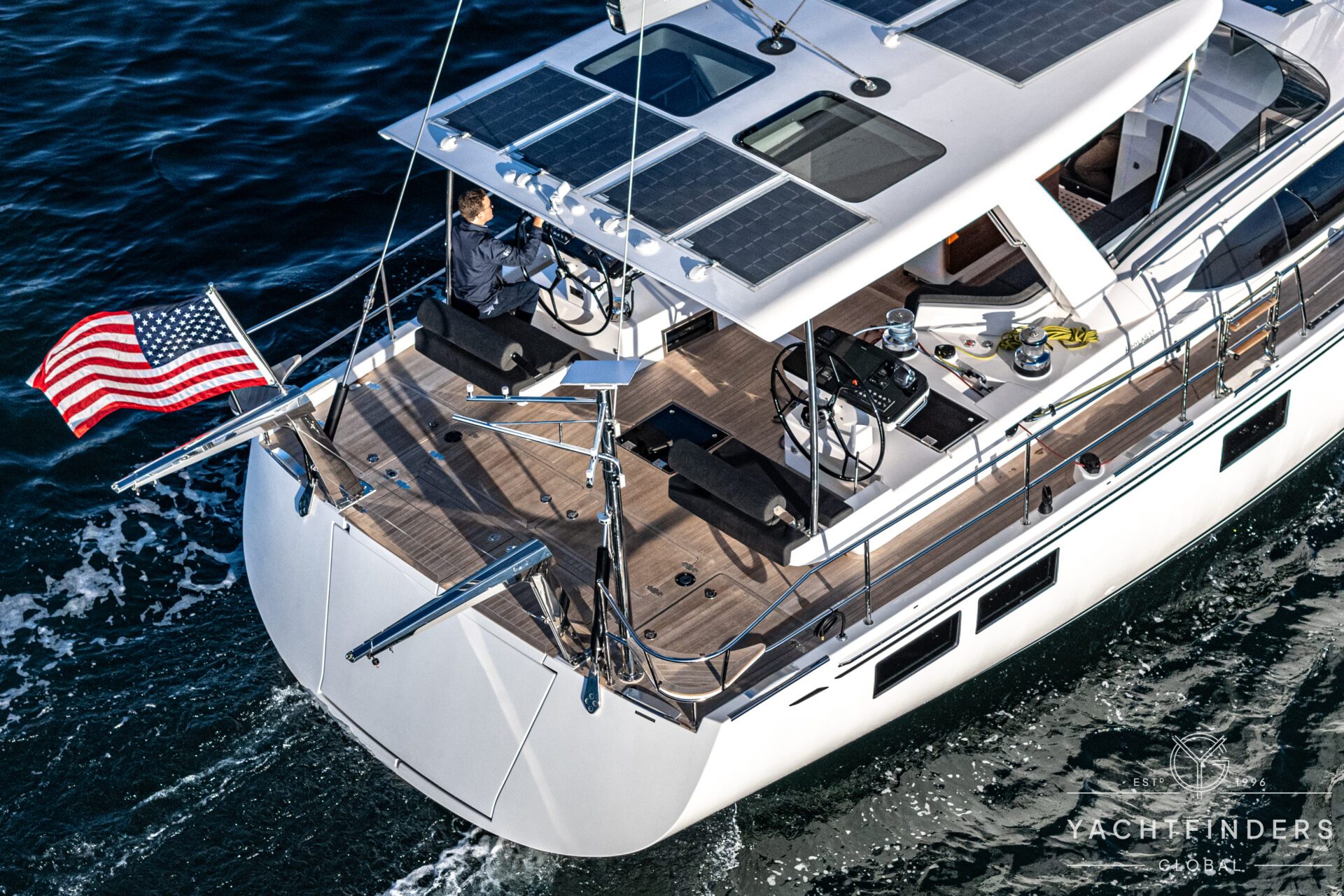 Below decks, the bright and voluminous three-cabin interior is warm and welcoming. Natural light abounds, and the layout is configured for luxurious comfort and an enjoyable living experience underway, while providing a true sense of home when settled at your destination. No horizon is too distant for this award-winning performance cruiser.
