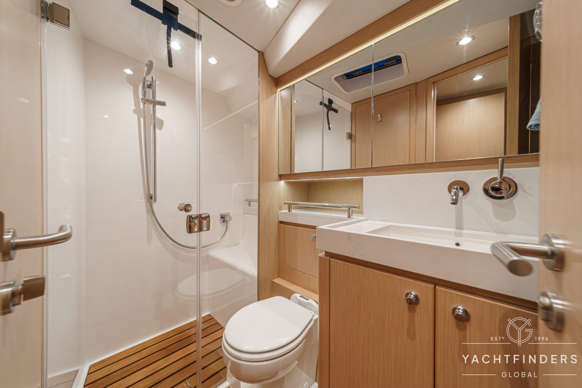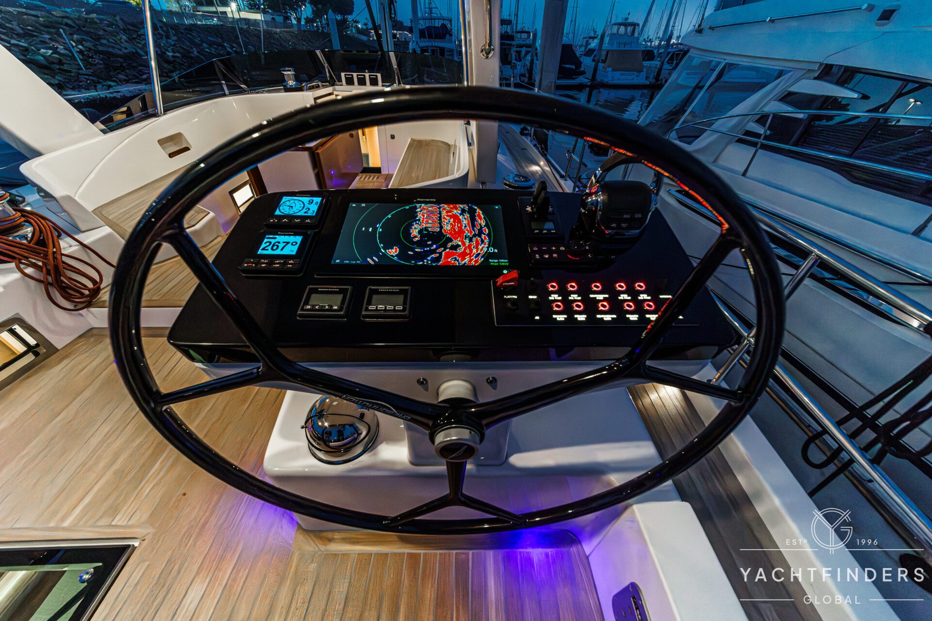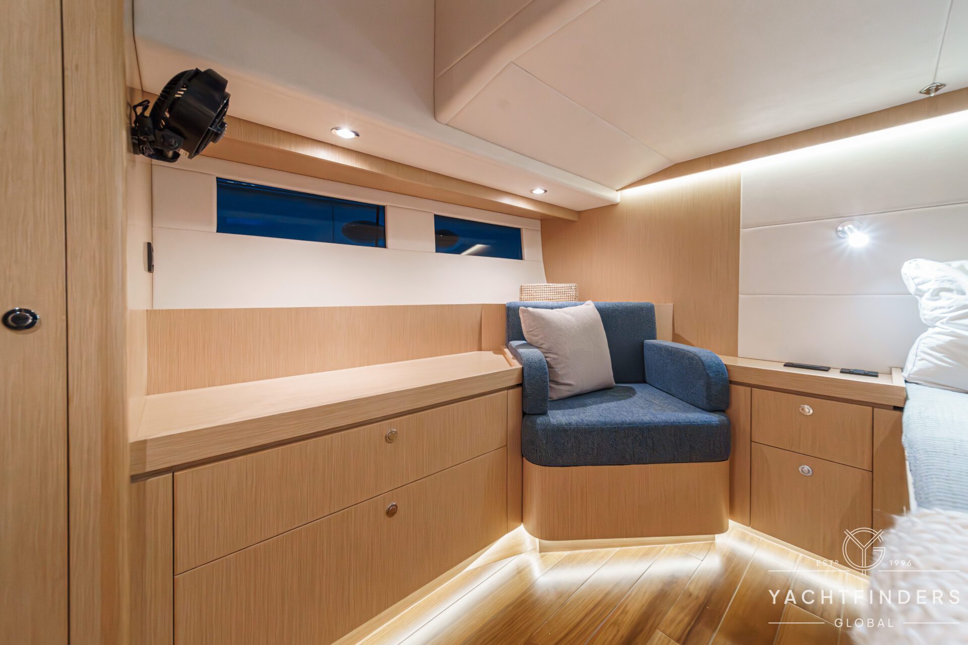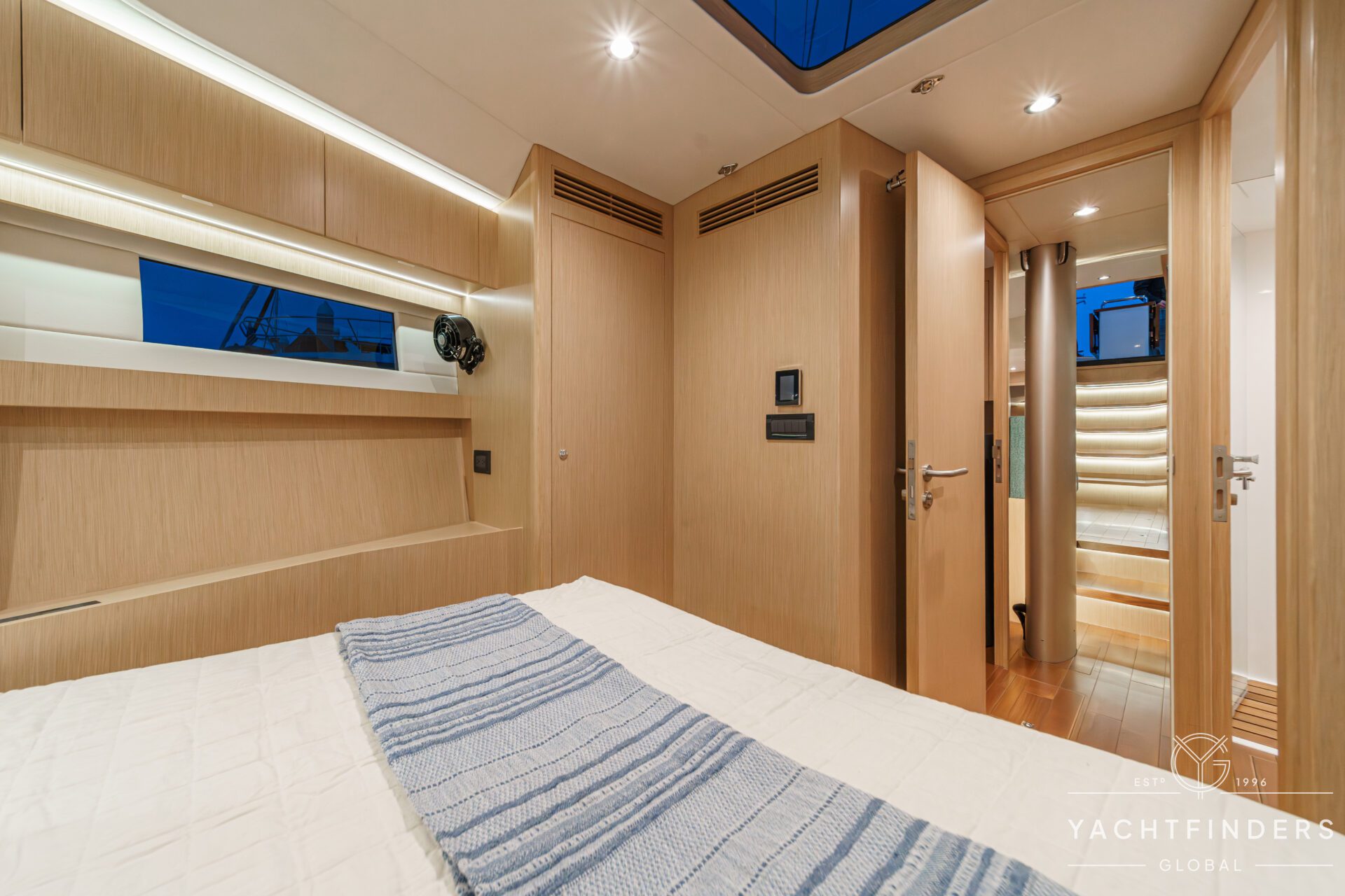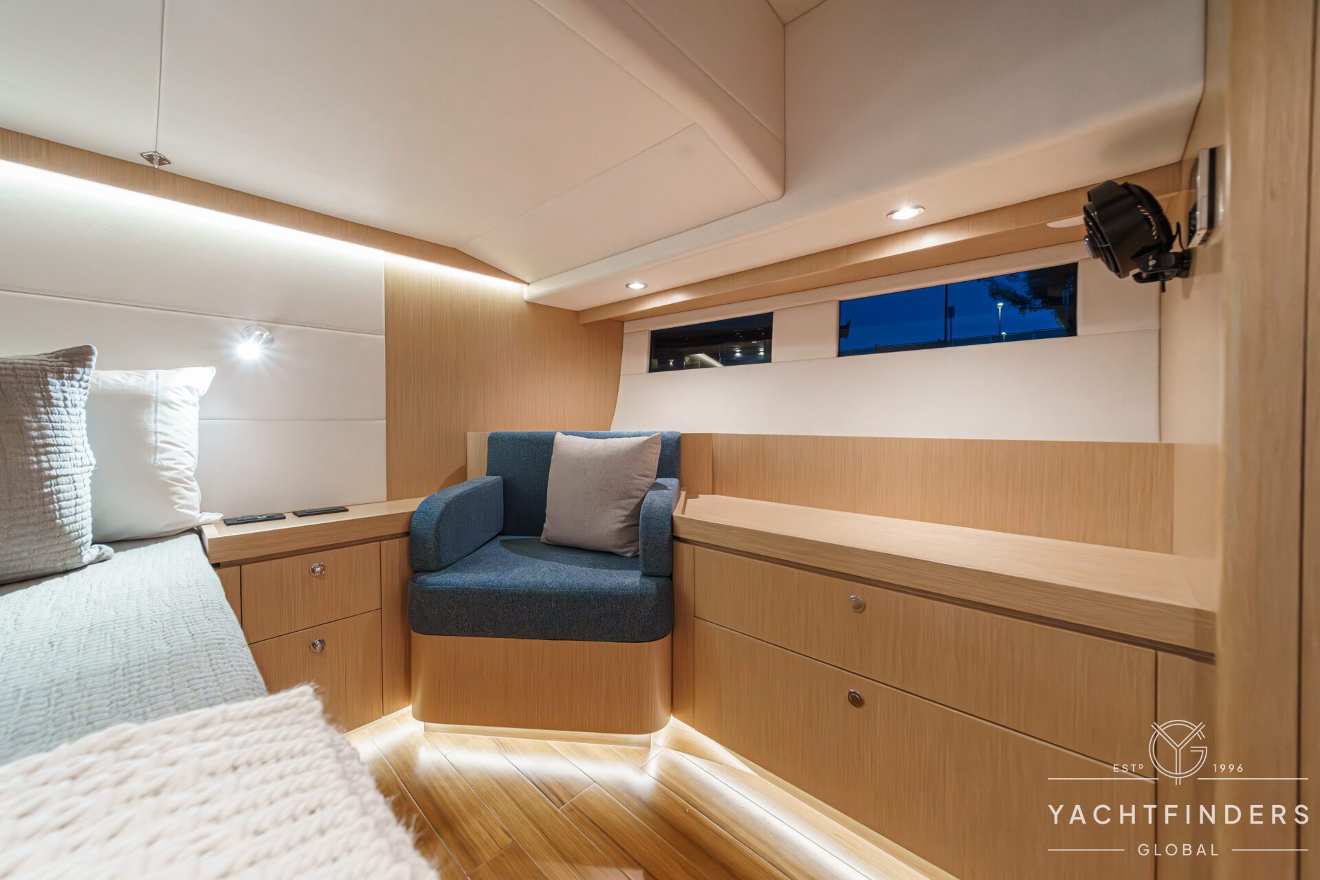 Below decks, the bright and voluminous three-cabin interior is warm and welcoming. Natural light abounds, and the layout is configured for luxurious comfort and an enjoyable living experience underway, while providing a true sense of home when settled at your destination. No horizon is too distant for this award-winning performance cruiser.