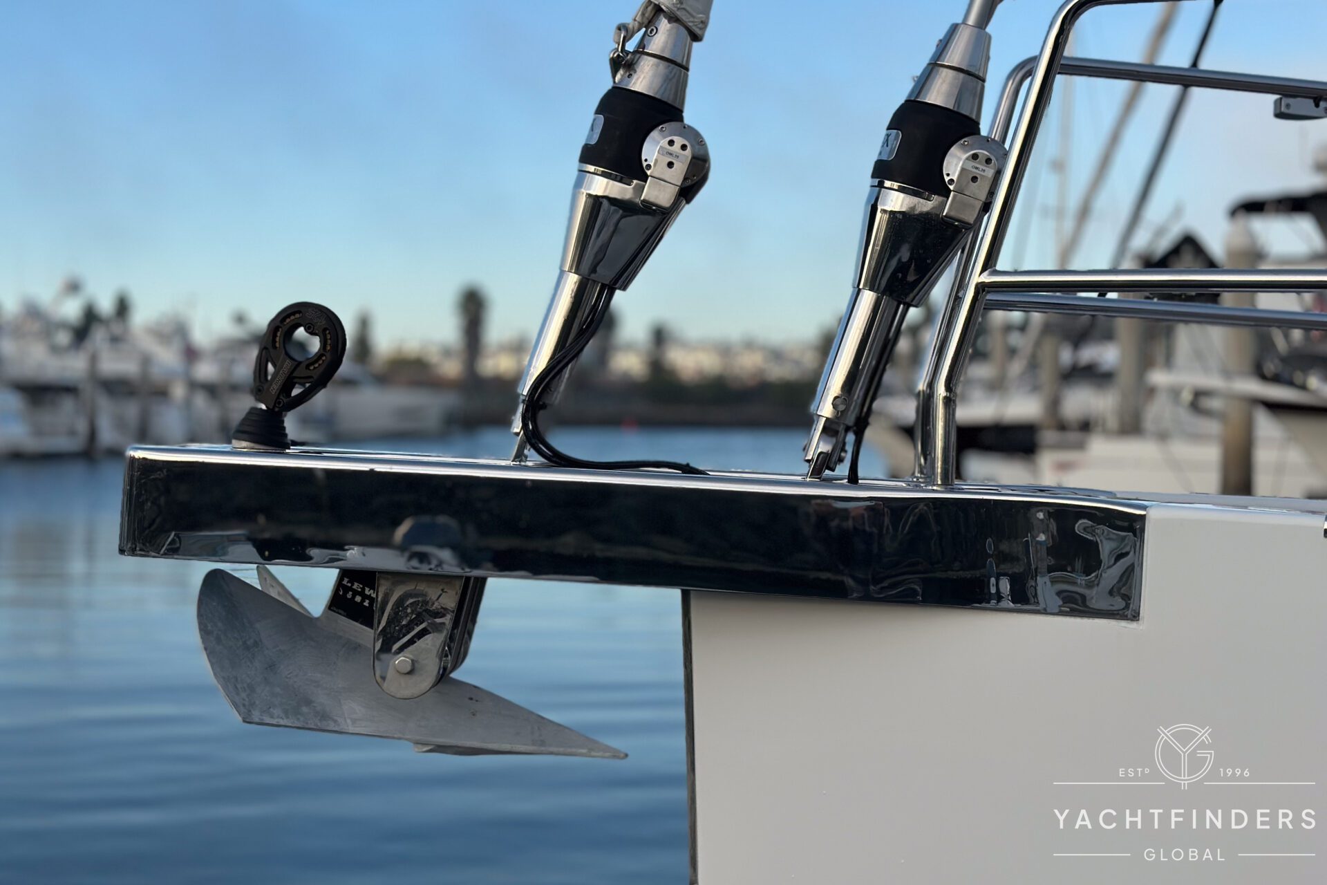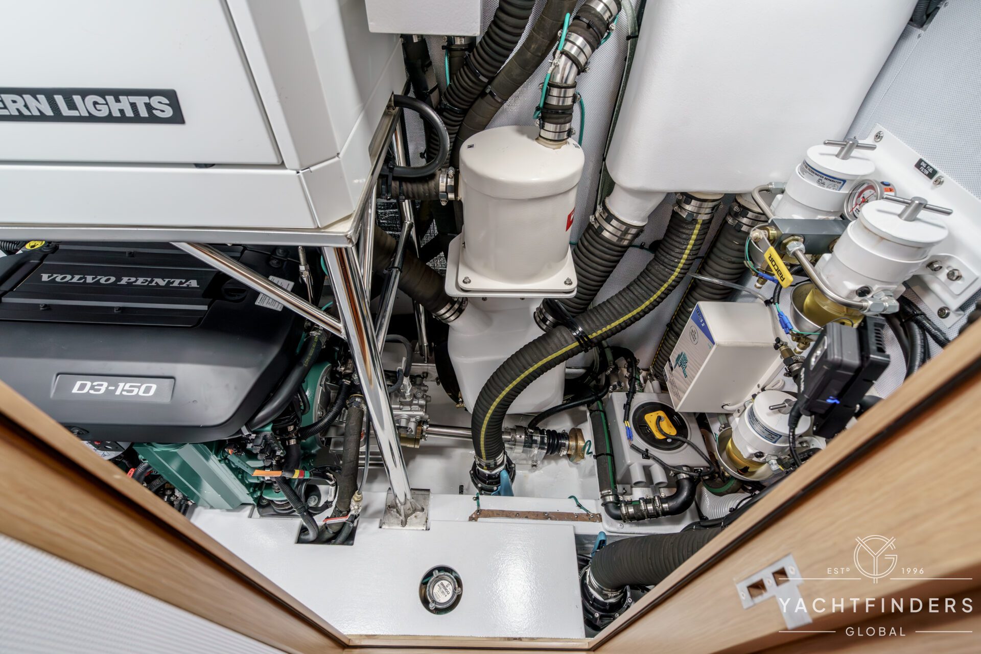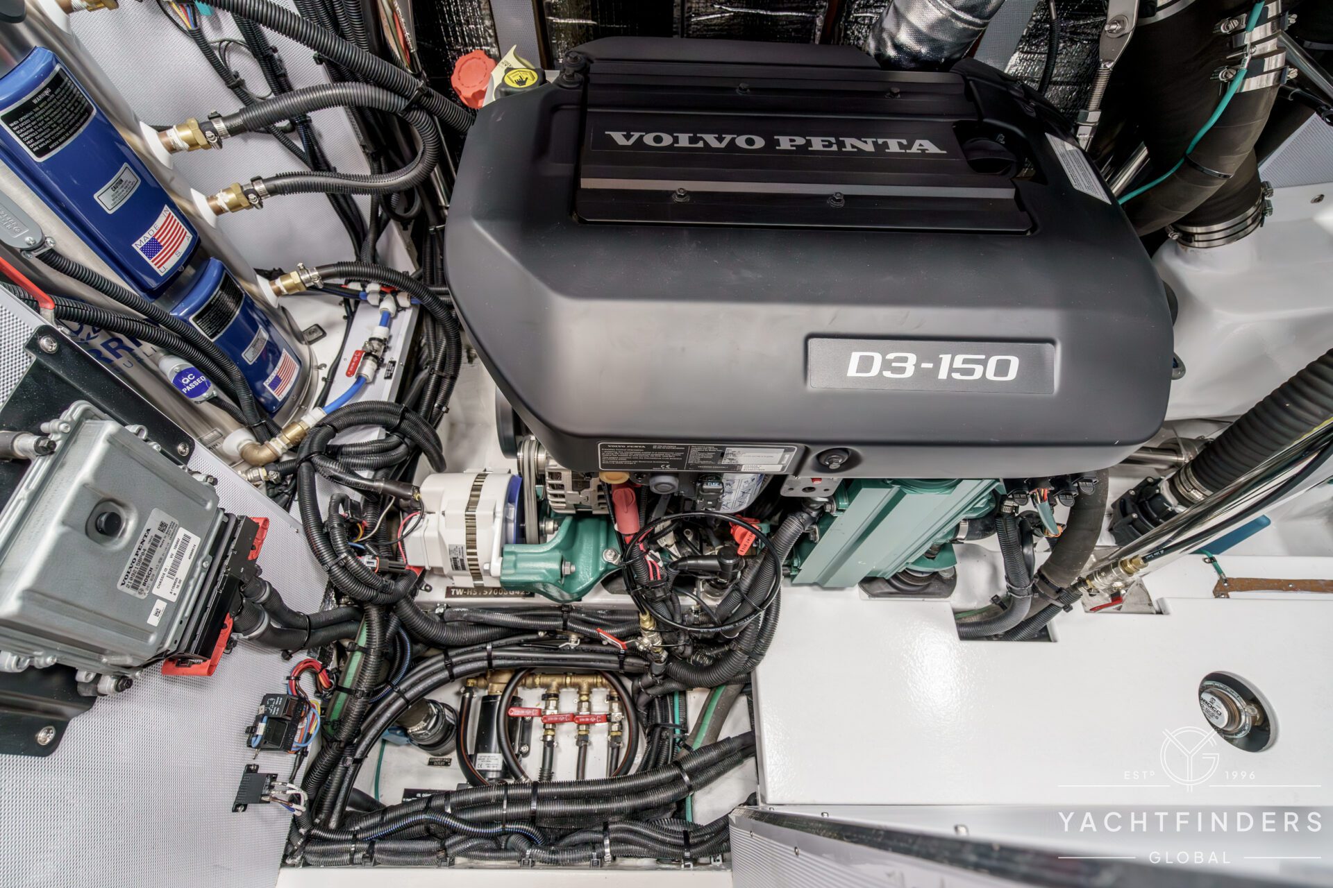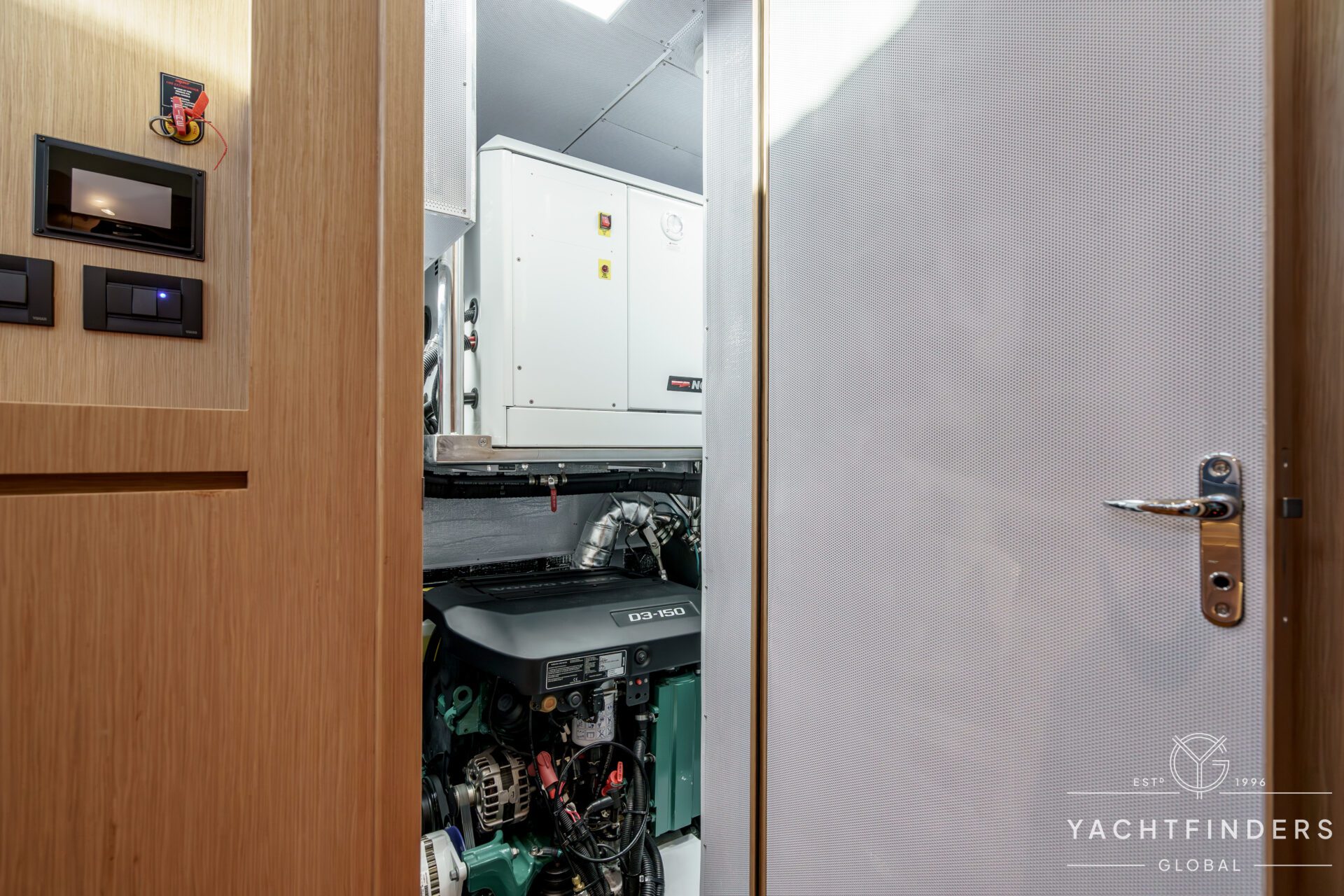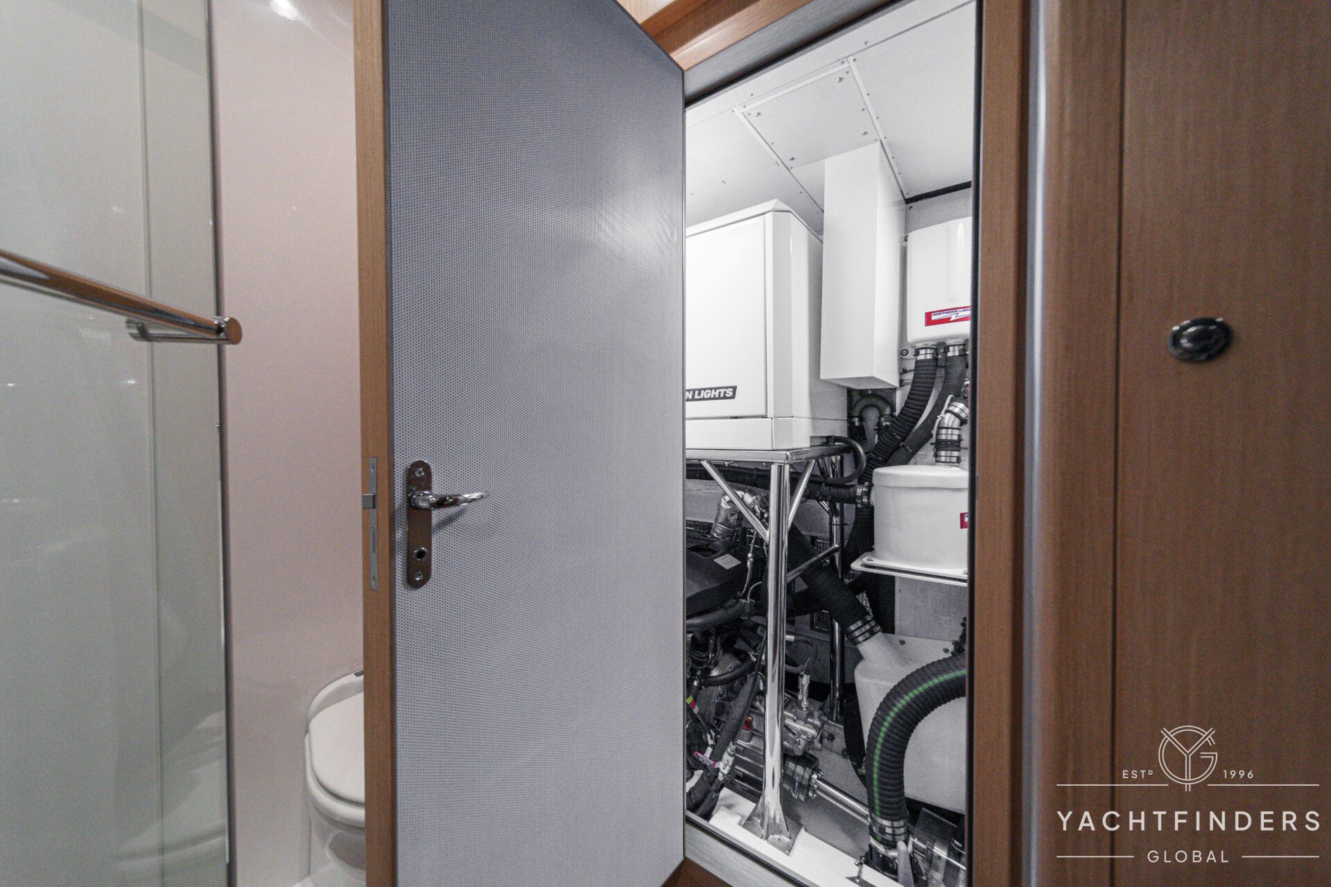 There are 3 cabins, including an Aft Master Stateroom with a centerline queen berth, plenty of natural light and storage and a private head with secondary access to the engine compartment. The primary access to the engine compartment is through the spacious Navigation station, which is in proximity to the companionway. The VIP cabin is forward and also features a centerline berth, plenty of storage, natural light, and en-suite access to the forward head. Under the forward bunk is the Water-Maker with remotely plumbed filtration for easy maintenance. Additionally, there is a second guest cabin forward with a single berth that also functions as a utility cabin with a work bench and a combined Washer/Dryer.