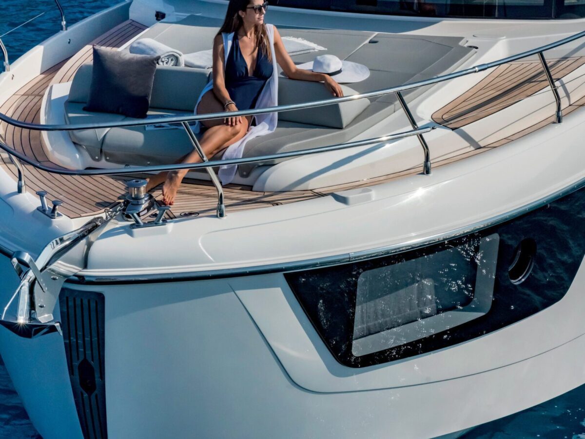 - The bow is easily accessible via walkways, protected by the cover of the flybridge itself, and offers a comfortable, modular relaxation area1.
