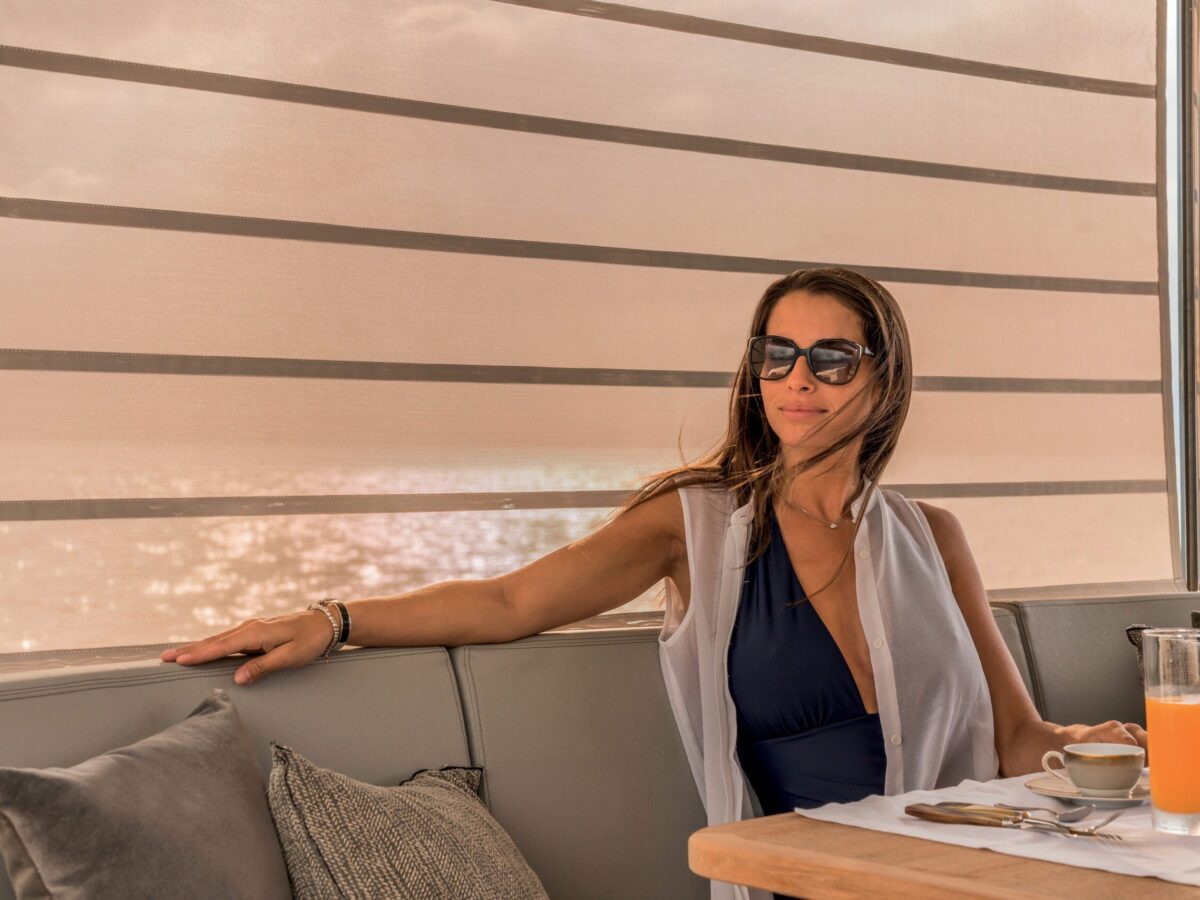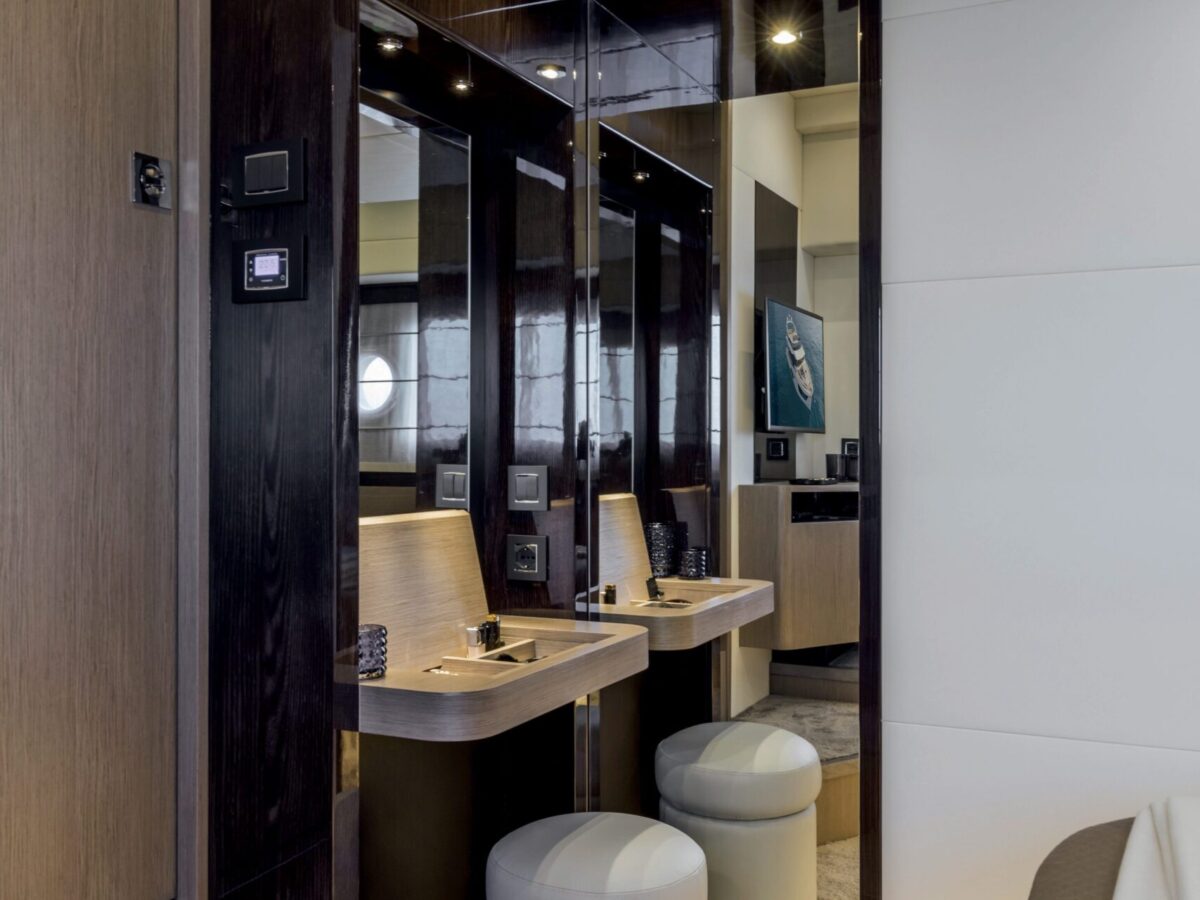 - The main deck is versatile and elegant. Refined colour combinations, high-quality furniture, and precious materials give the entire space a touch of class.