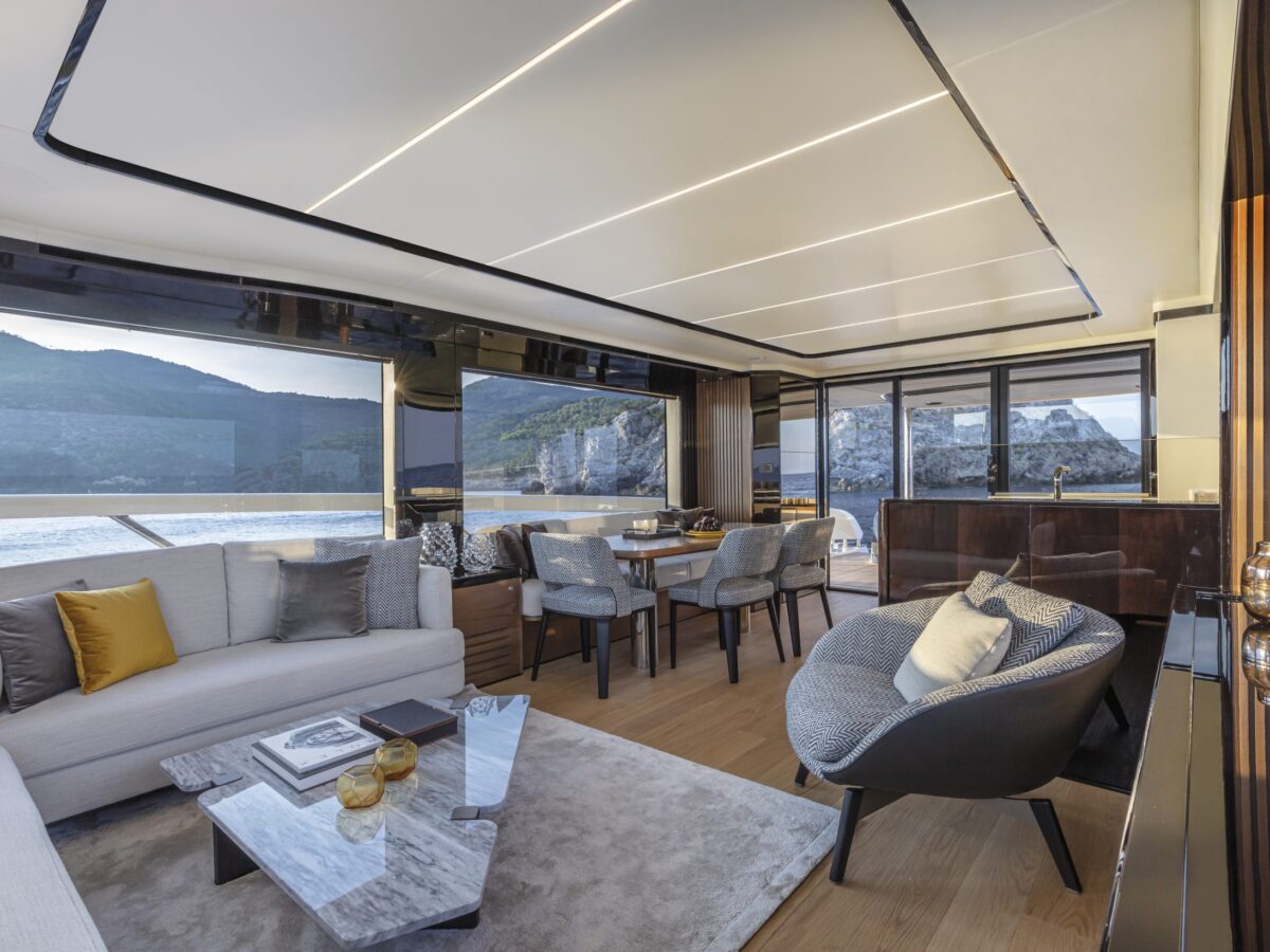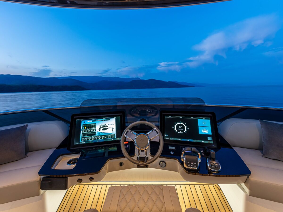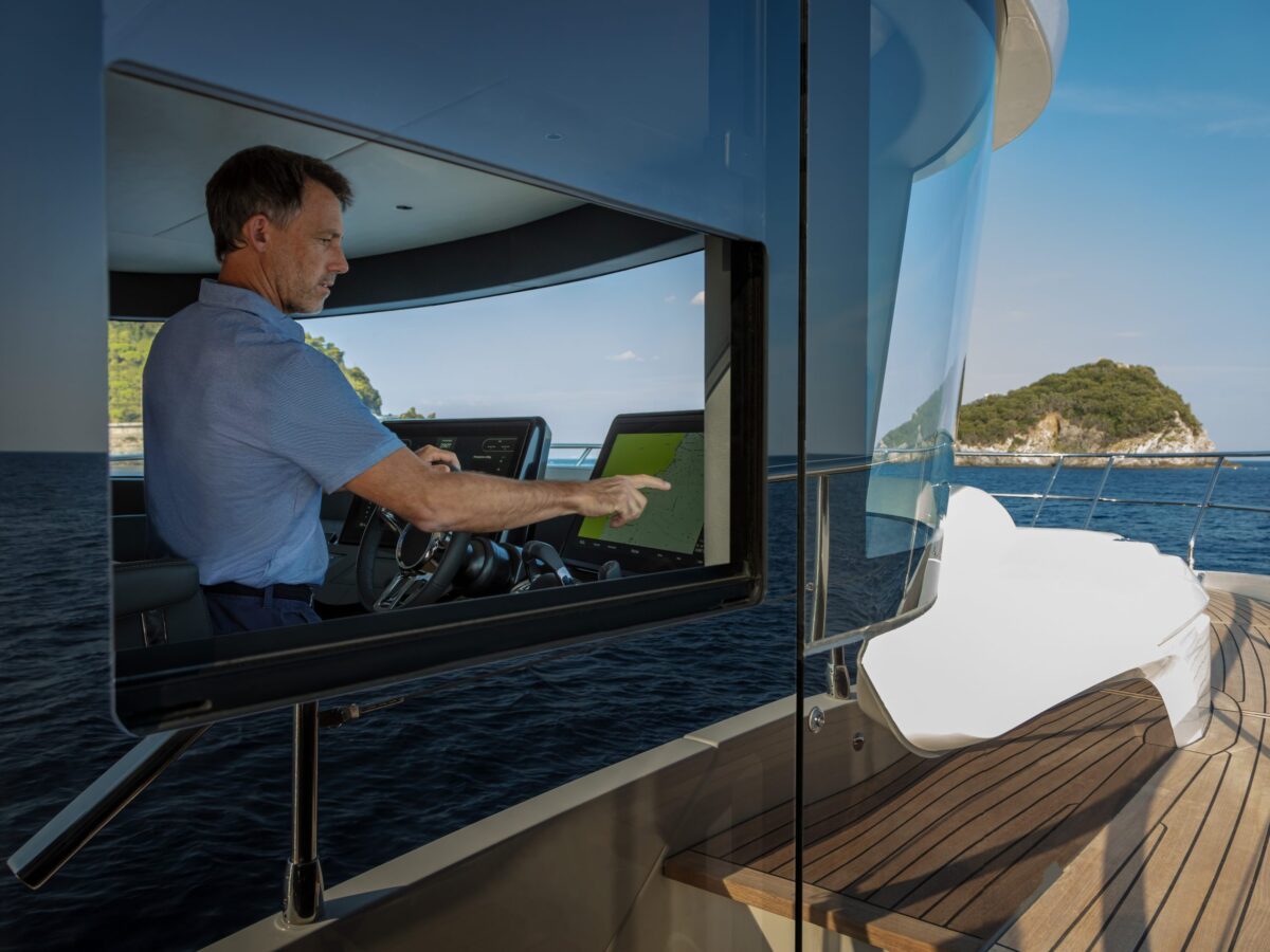 The new Absolute Navetta 64 is no exception to this process, where ‘marrying rational and romantic’ improved an already dynamic model line of the Navetta Series. One of the changes implemented from the previous models is the opening of the sidewall in the cockpit, which increases the floor area and gives anyone sitting in the cockpit a beautiful, unobstructed view of the ocean.