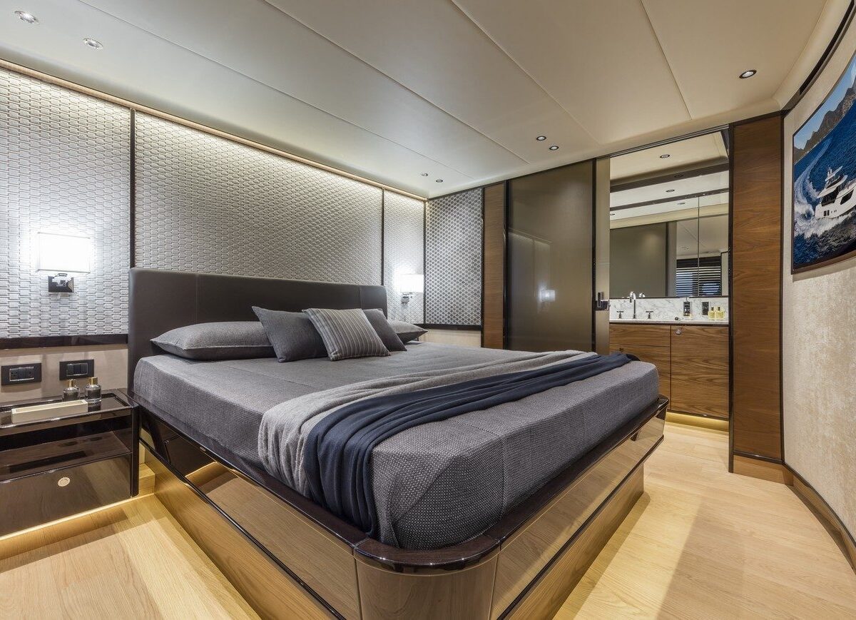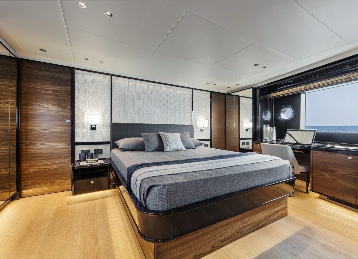 This prodigy of design and technology offers four guest cabins and two separate crew cabins; the interior finishes are the best, with LIGHT and SPACE featuring significantly in the design. The master cabin, as for the older sister, 73, has been cleverly positioned to ensure the owner is provided with exceptional comfort!