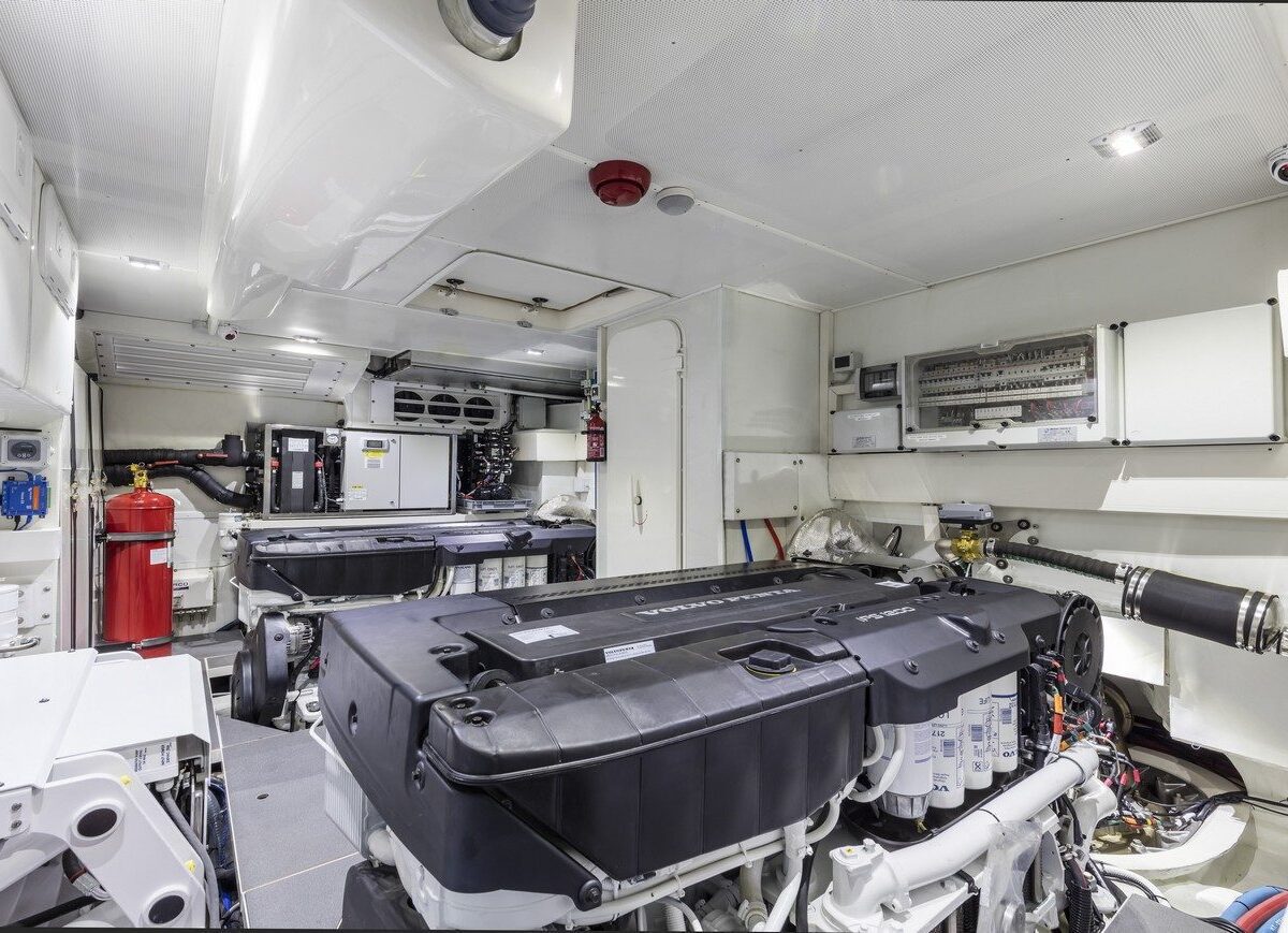 The cruising speed of over 20 knots is guaranteed by the prevalent 2 Volvo Penta IPS 1,200 D13 engines (900hp), providing deficient consumption, noise and vibration with excellent manoeuvring.