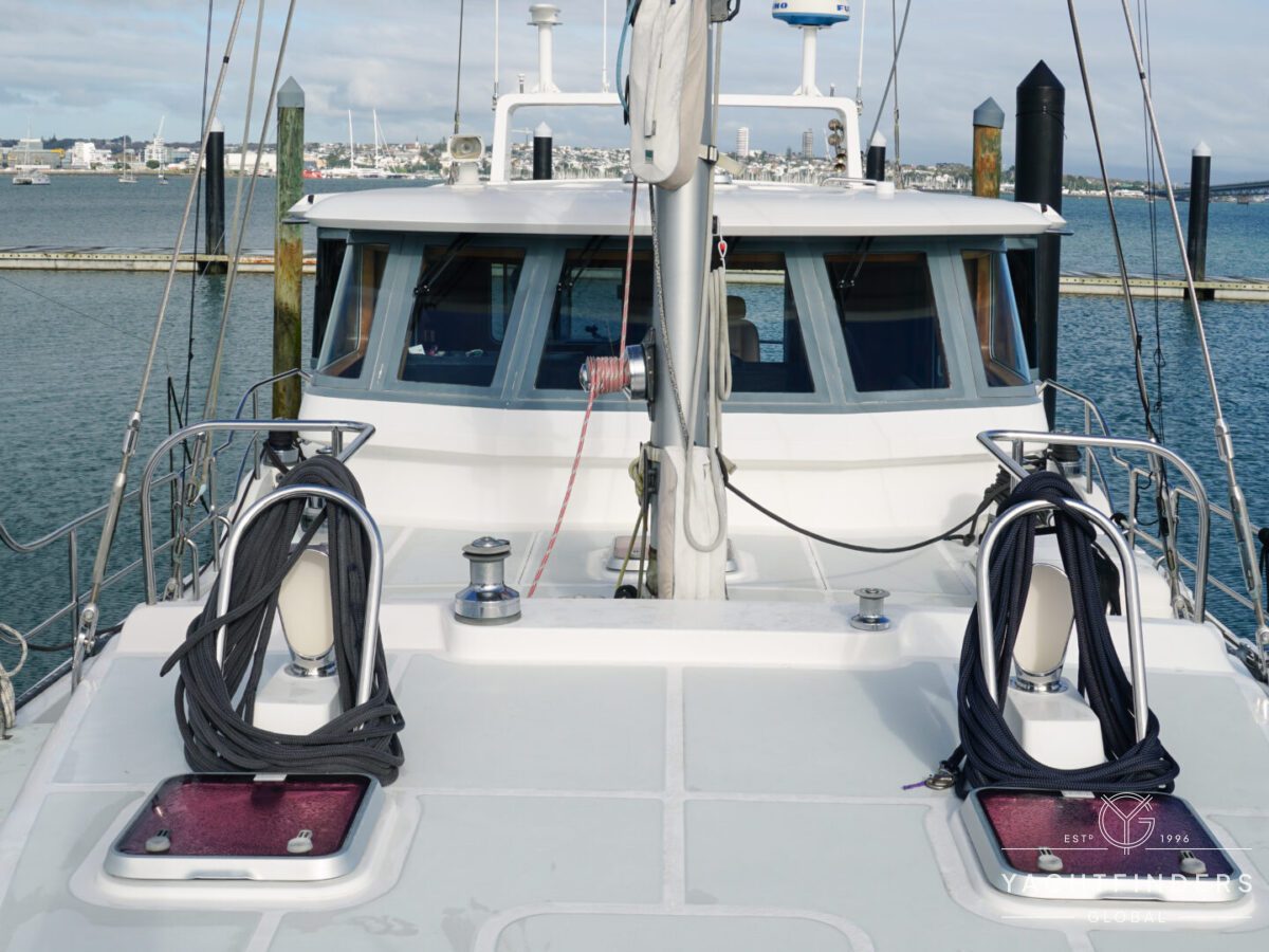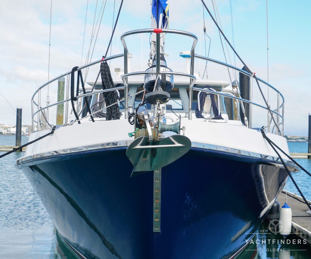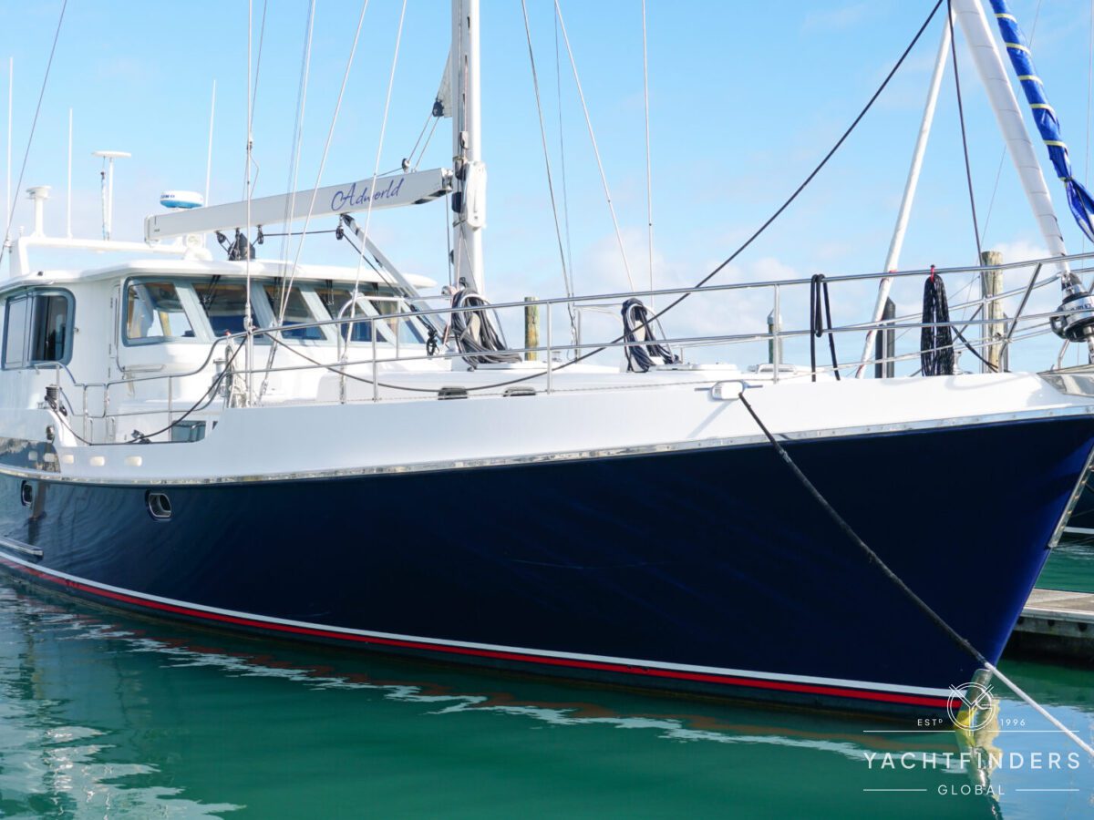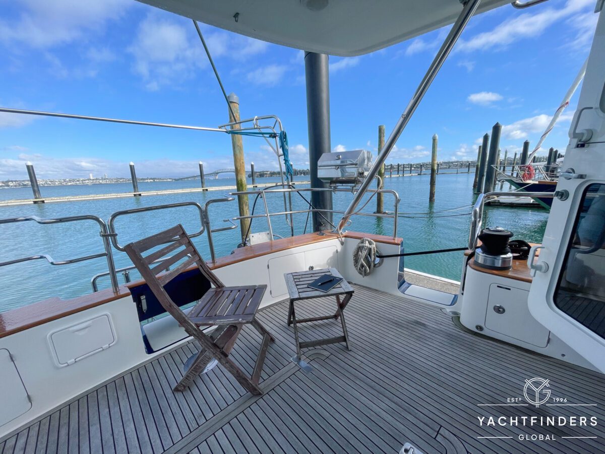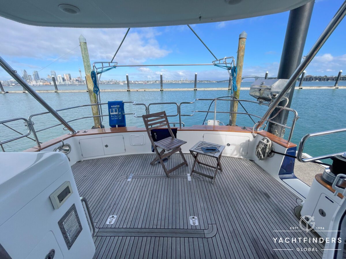 Embracing its hybrid nature, the vessel features a forward sailing cockpit, complete with a helm station and controls for powered winches and roller-furling sails. This sailing cockpit is seamlessly integrated alongside a trawler-style saloon and wheelhouse, creating a harmonious space for relaxation and navigation—a spacious aft deck rounds out the vessel’s trawler-inspired touches.