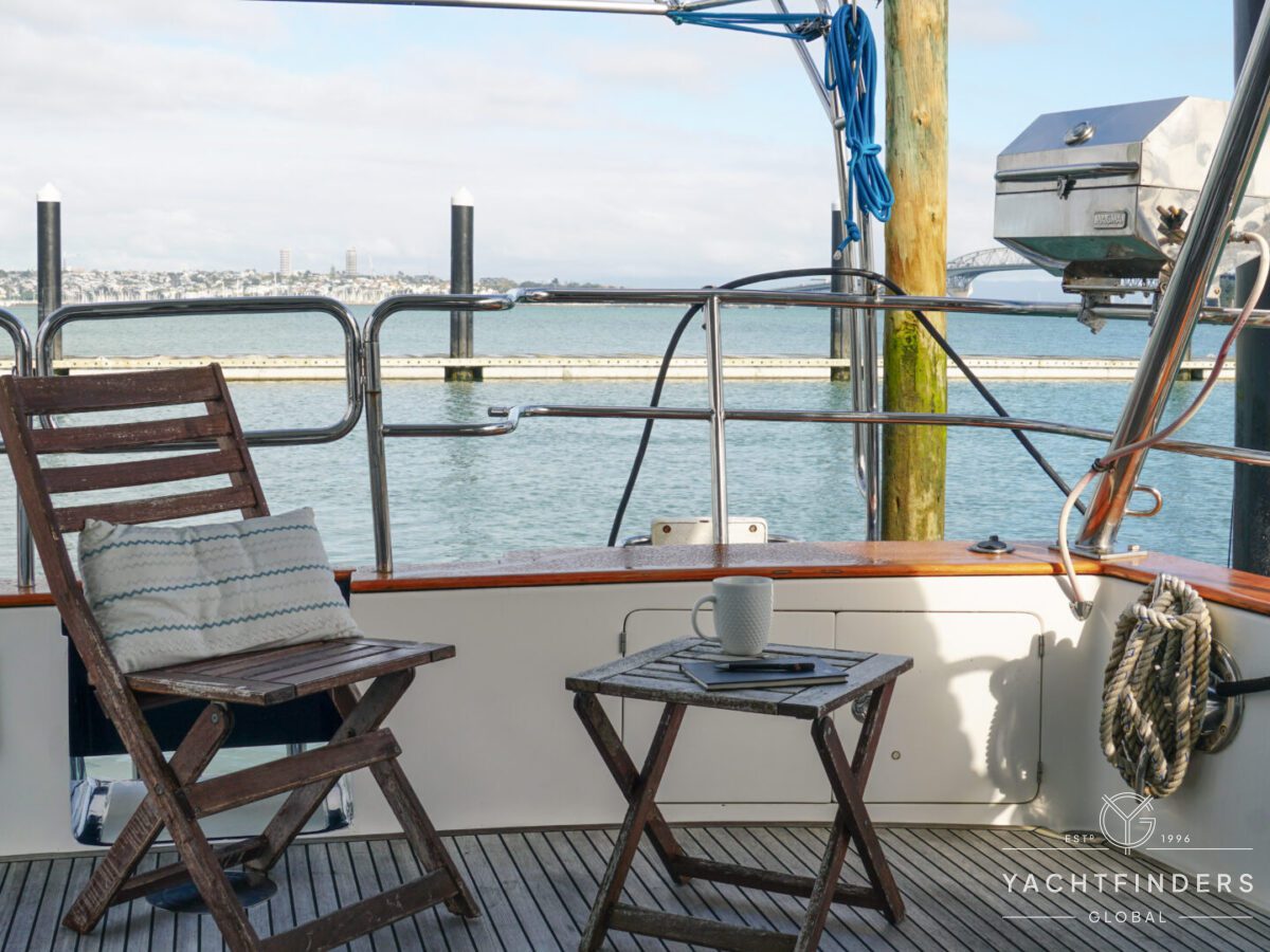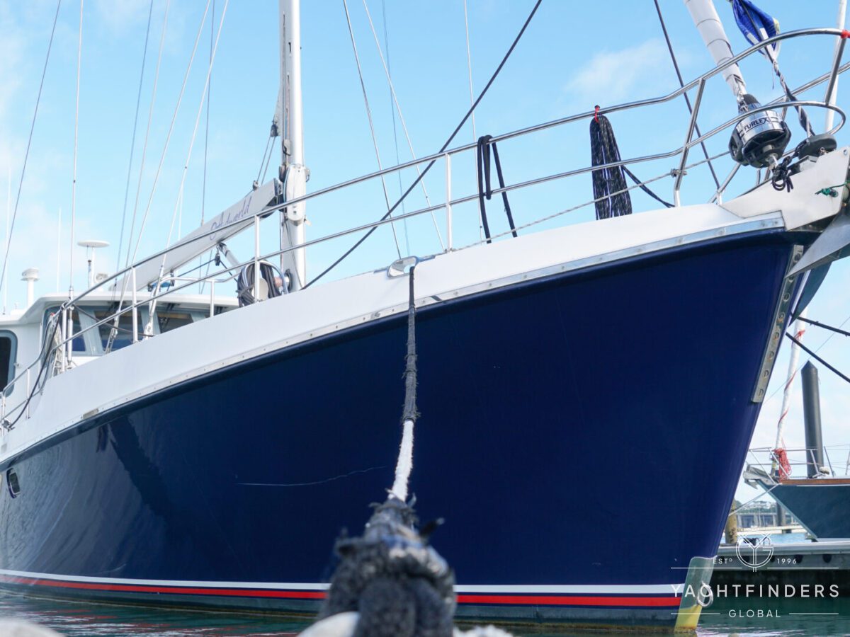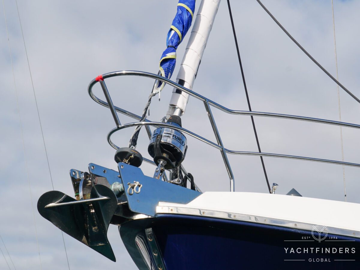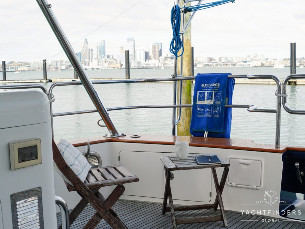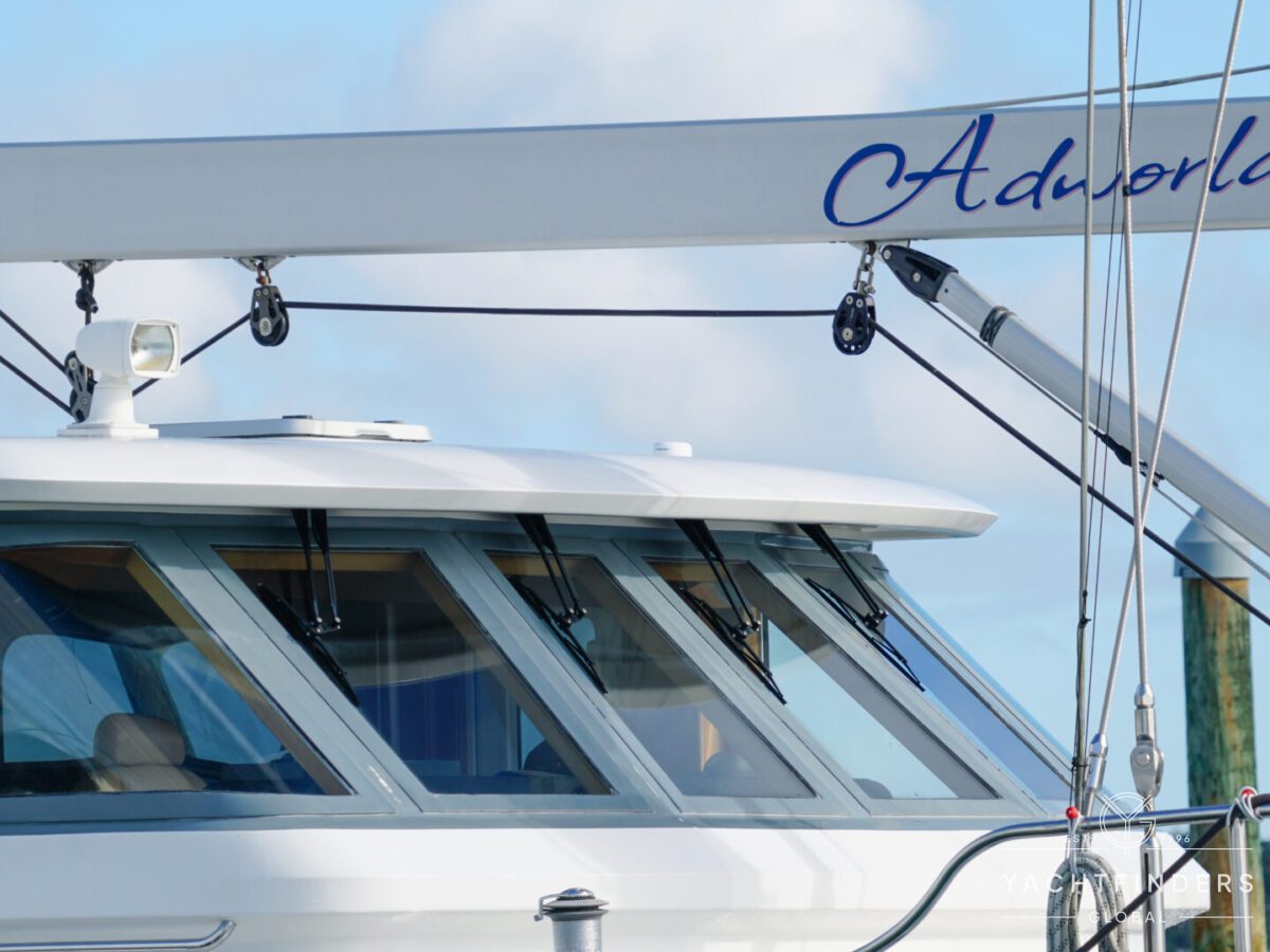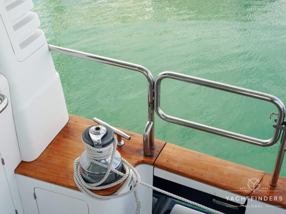 Embracing its hybrid nature, the vessel features a forward sailing cockpit, complete with a helm station and controls for powered winches and roller-furling sails. This sailing cockpit is seamlessly integrated alongside a trawler-style saloon and wheelhouse, creating a harmonious space for relaxation and navigation—a spacious aft deck rounds out the vessel’s trawler-inspired touches.