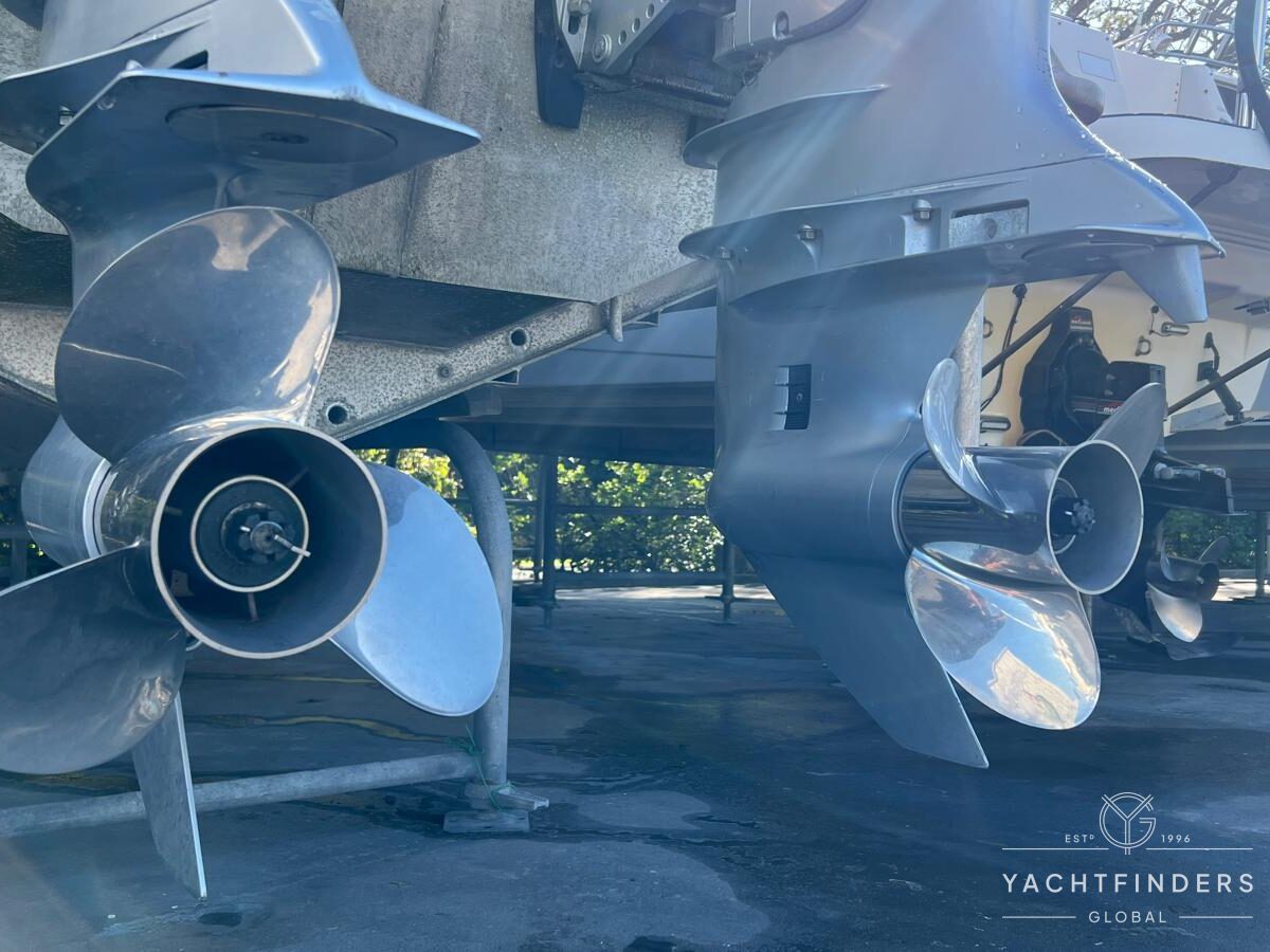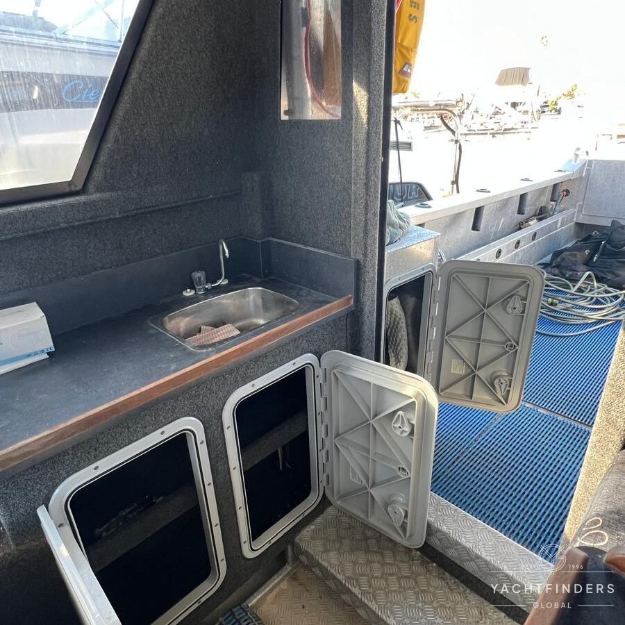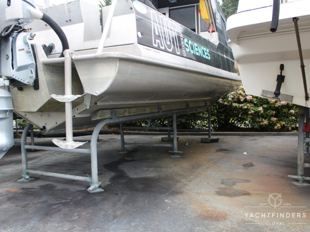 This boat was purchased from Osprey in 2012 and shipped to the North Island for fitting. It has generally been used in the Hauraki Gulf. On average, she has only seen between 15 and 20 sea days, averaging 50 to 60 hours of outboard time per year.