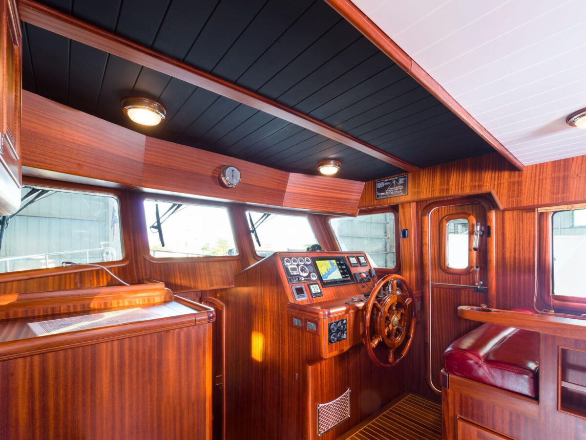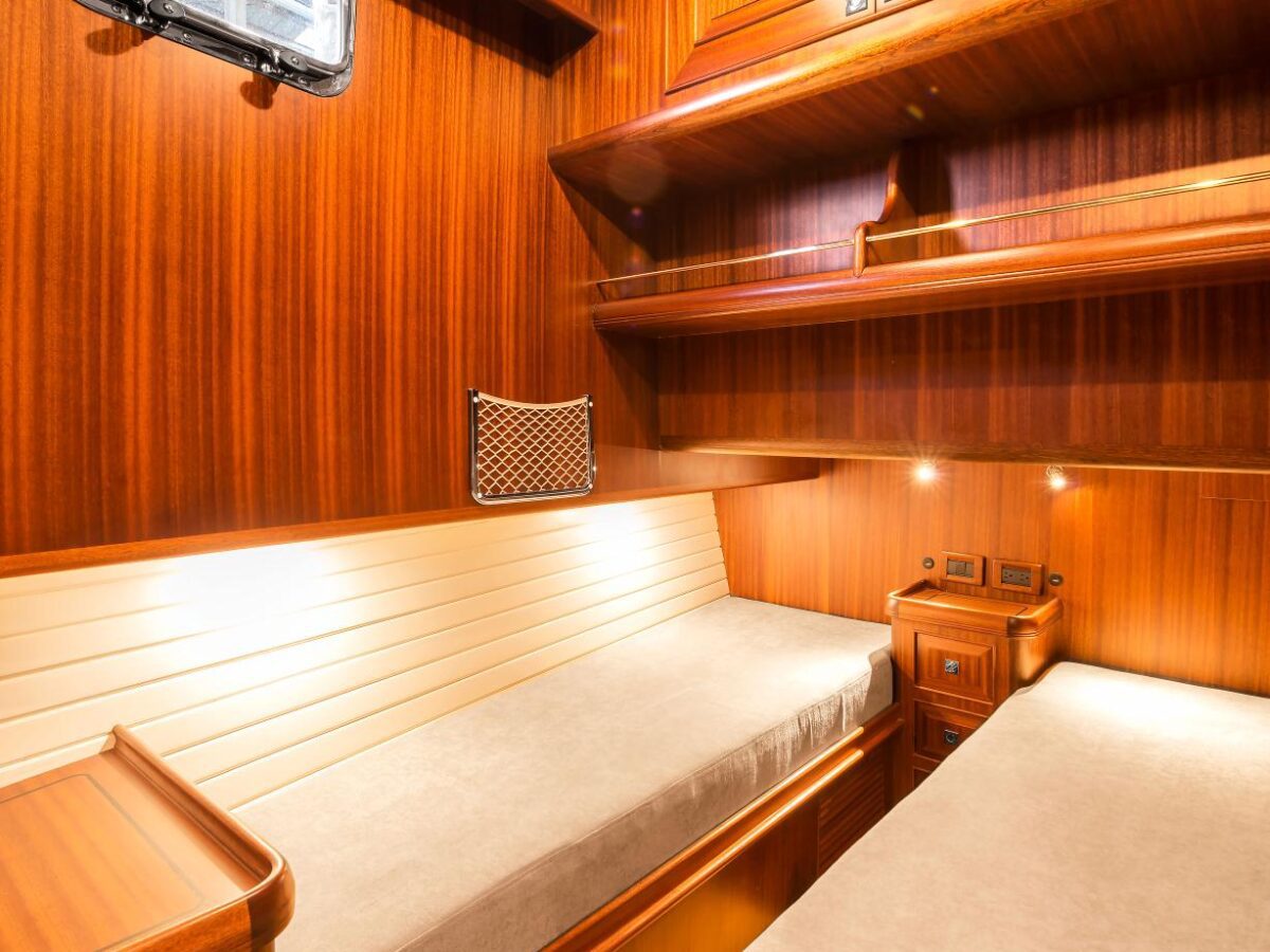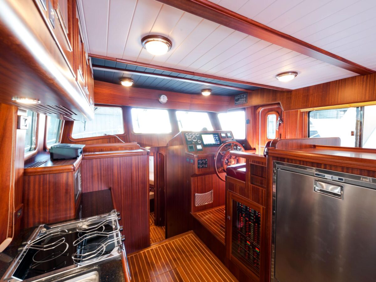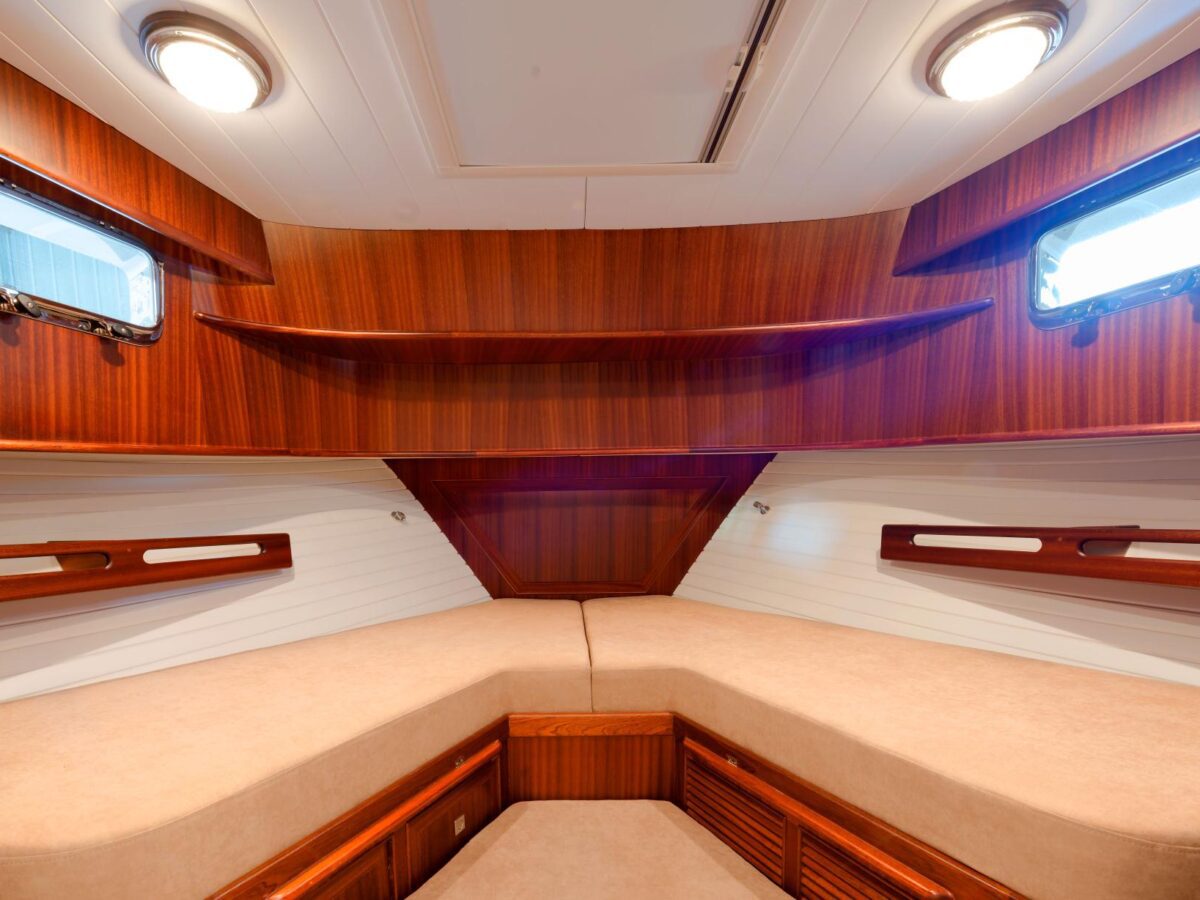 The Selene 38 Voyager aft cabin is a legend… A happy and classy gentleman’s yacht has been cruising in British Columbia, the Bahamas, the Greek islands and South-East Asia for decades. This beautiful and charming pocket yacht has always been incredibly popular because of its unique layout, which guarantees privacy to four people or two couples. Because of its moderate size, it can be hauled out by the smallest Travelift and accommodated in almost any marina anywhere in the world. Thanks to its classic lines designed by Howard Chen and the legendary marine architect Ted Hood, winner of the 1972 America’s Cup, the Selene 38 Voyager remains one of Howard Chen’s favourite yachts. When creating this yacht, the designers adopted the unique concept of the “Whale Back” hull, which was a trademark of Ted Hood’s designs. The Archer line has so much headroom and space in the engine room. It probably has the best engine room layout for its size anywhere. While the Selene 38 is a legendary yacht, she doesn’t compromise on modern technology and first-class components, like the recent addition of Diamond Sea Glaze doors, improved soundproofing, optional air conditioning, generator and larger aluminium fuel tanks for extensive cruising. Howard says that the best-selling yachts of all time were the Grand Banks 36-42, but when their production ended for a while, Howard decided he wanted to bring a high-quality compact aft-cabin yacht back to the market. He wanted to build an elegant yacht with traditional timber joinery, leather upholstery, teak & holly floors, a spacious interior with two cabins and two heads, a cozy salon, a practical galley and safe decks. The Selene 38 Voyager is an excellent family cruiser or the perfect Looper’s yacht. A tender finds its natural spot on top of the aft cabin, where a mast and boom can support it. Many Selene 38 Voyagers use the mast for a steadying sail, giving the boat a classy « heritage yacht » style and a simple and maintenance-free stabilisation system. And all this, including a flybridge with an outdoor deck salon, comes at an affordable price! As the entry-level model of the trawlers range, the Selene 38 Voyager is still a best-seller. We call it our “small super-yacht”, all the space is inside…