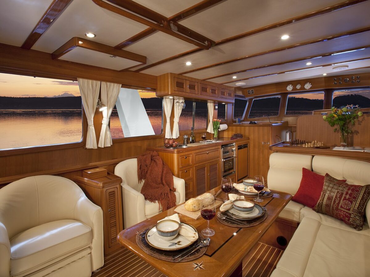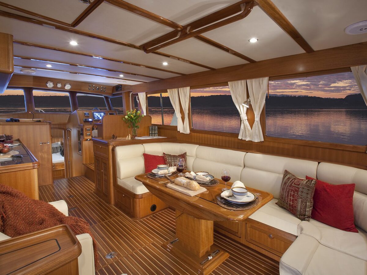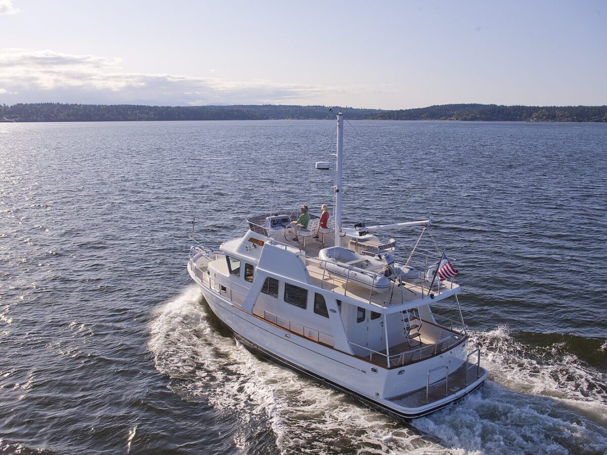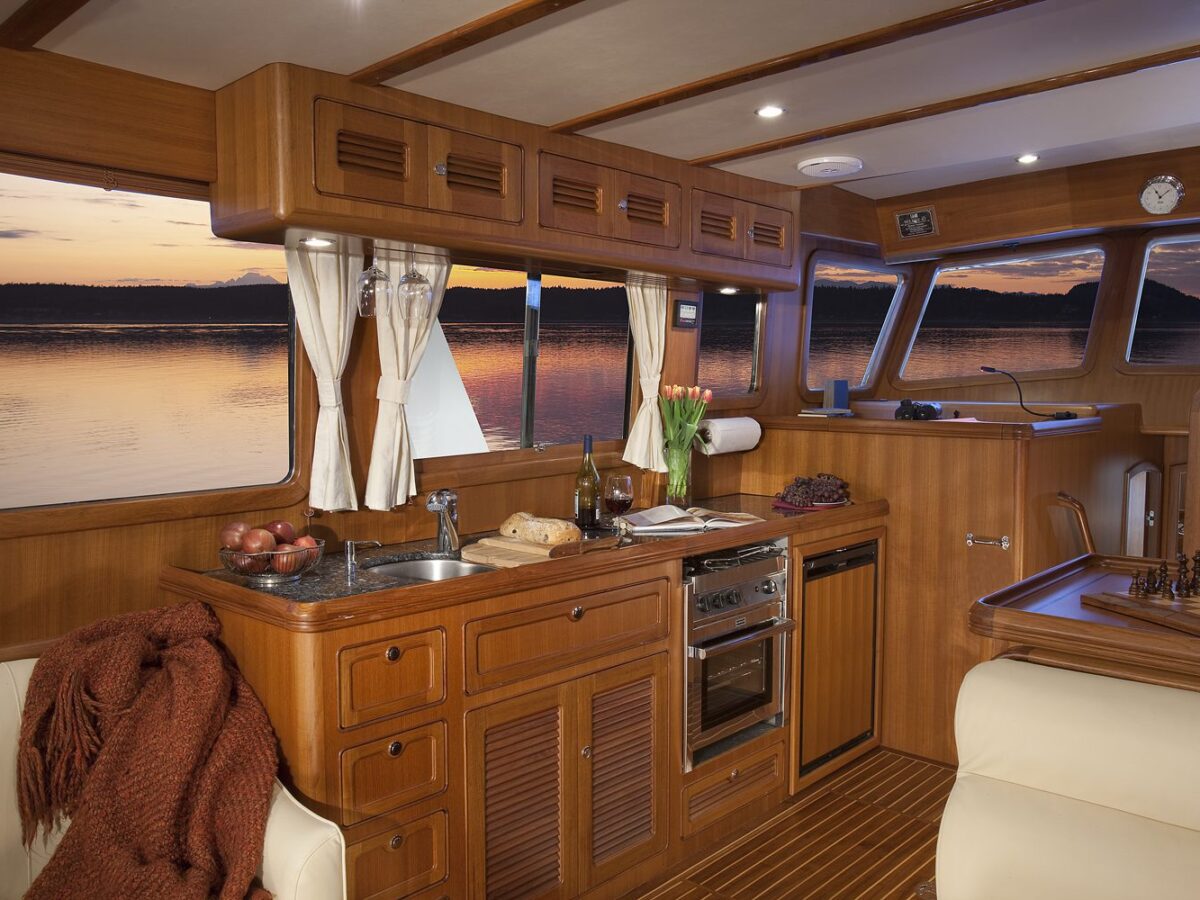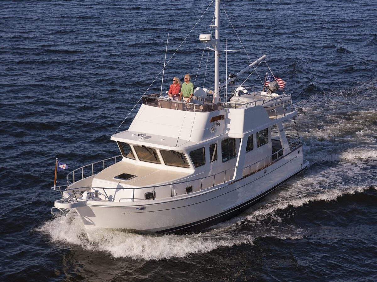 The Selene 42 Voyager Sedan is a newer design that Selene Yachts has developed based on the original ‘Selene 42 Archer‘ hull with a new superstructure and European, Floridian or Mediterranean flair! The yacht is designed with a single Cummins QSB 230HP or John Deere 180HP Diesel engine. The two-stateroom layout has a beautiful teak interior and a well-equipped galley. Compared with the Selene 42 Archer, it offers a more spacious saloon, flybridge and engine room. The enlarged fuel tanks of 700 gallons (2650 l) will guarantee a longer cruising range in the Selene 42 Voyager.