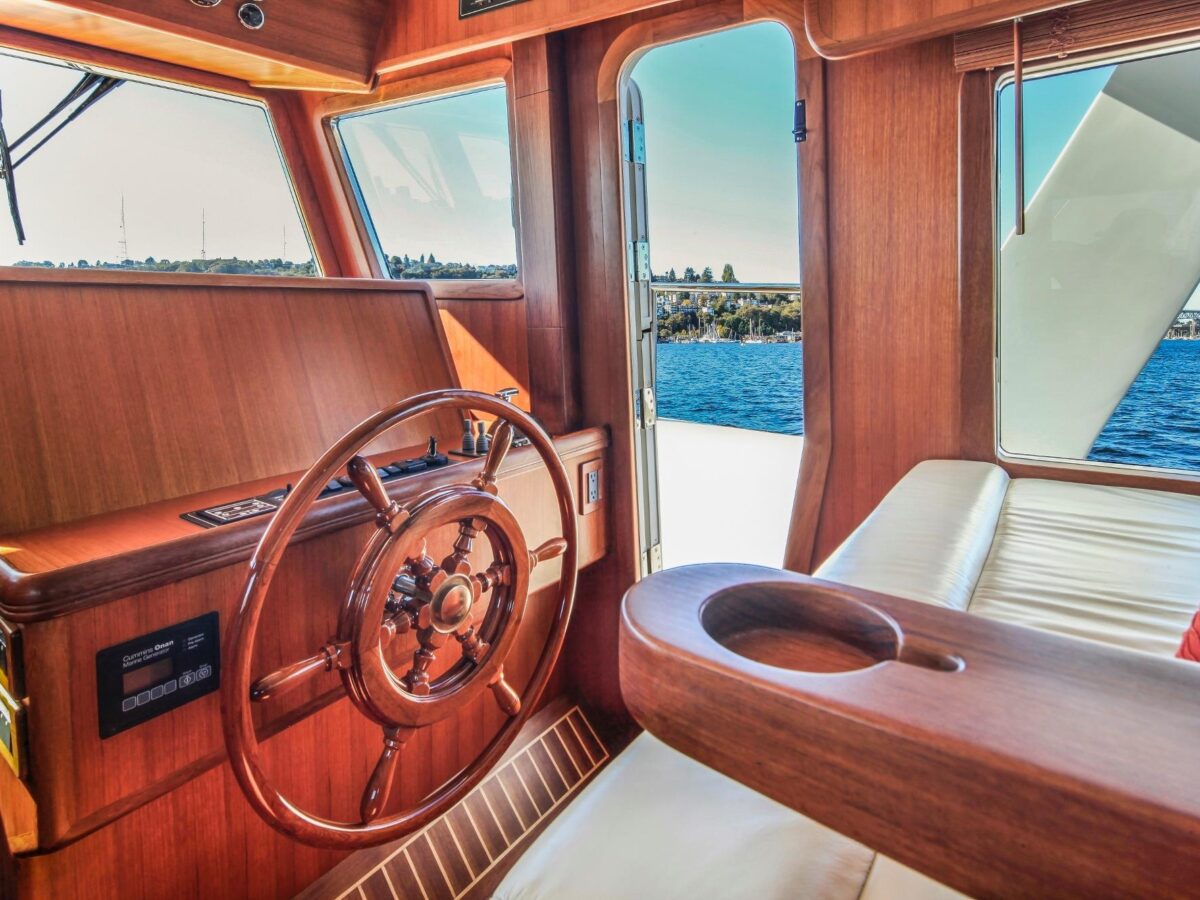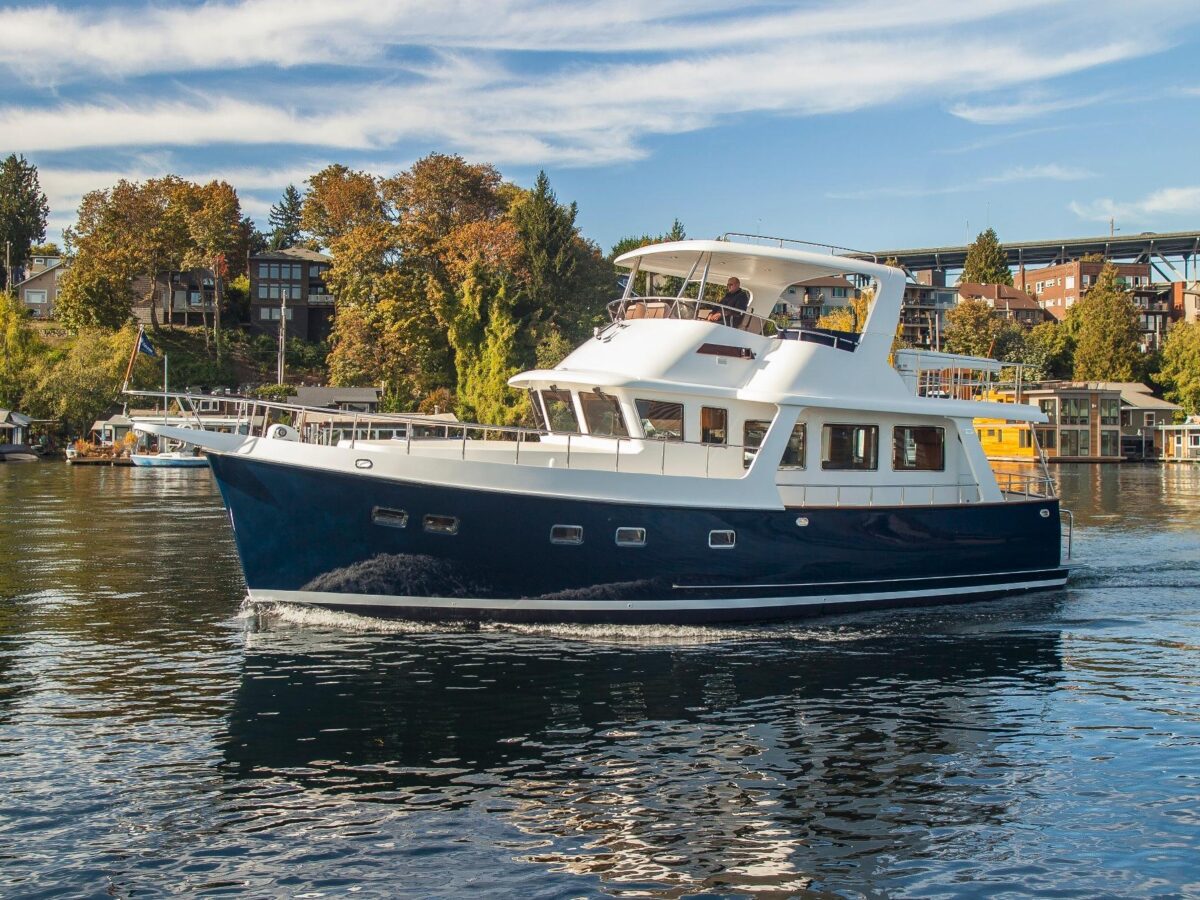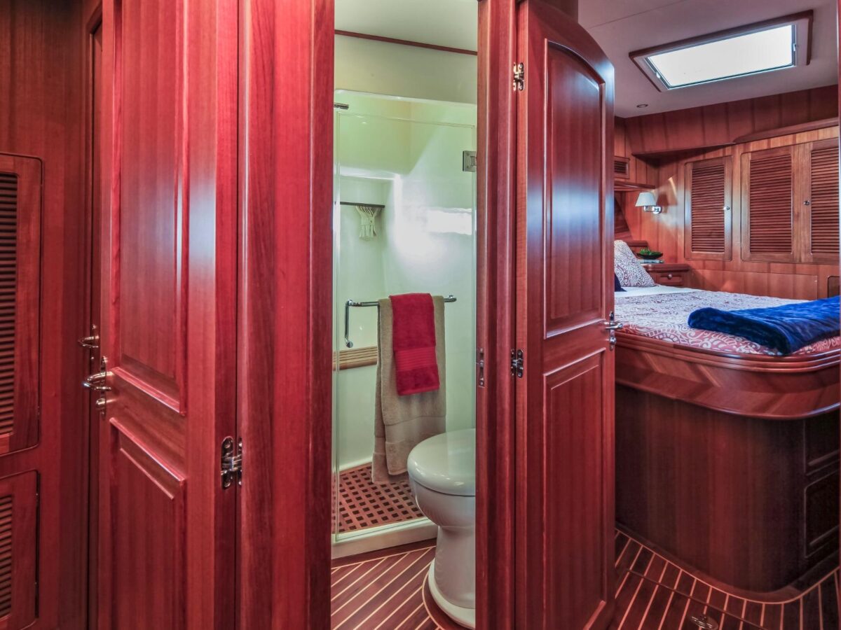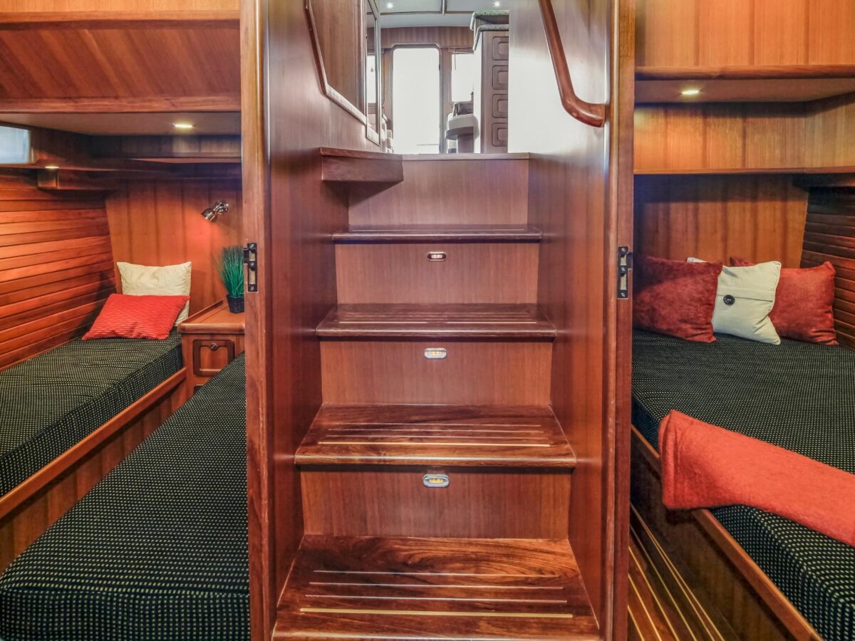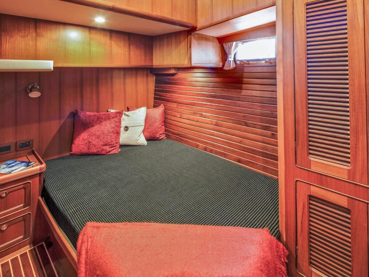 The Selene 50 Voyager Sedan is a larger sibling of the 42 Voyager Sedan model, with an immense superstructure and the same European flair. The yacht has a beautiful teak or optional cherry interior and a well-equipped sea-going U-shaped galley to port. Compared with the Selene 42 Voyager Sedan, it offers one more cabin and head, a more spacious saloon and more storage. For many people, the large flybridge with its optional hardtop will be the highlight of this yacht. The original design of the owner’s cabin, which is located forward with a walk-around berth athwartship, leaves more space for nightstands and large wardrobe lockers. The Selene 50 Voyager Sedan epitomizes gracious styling and transports her passengers with the uppermost comfort and performance…