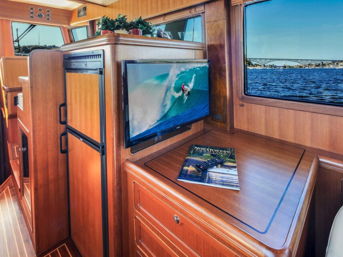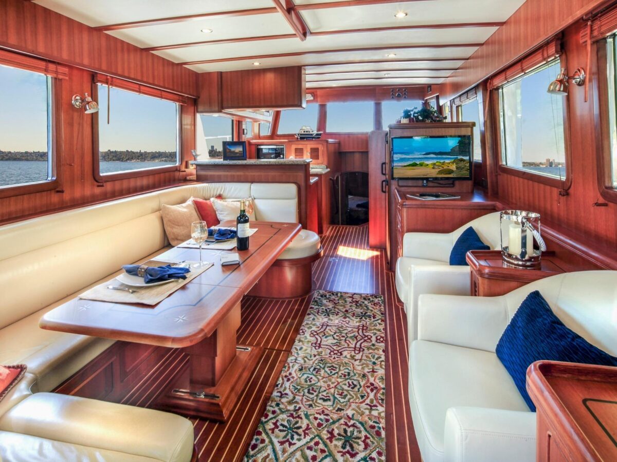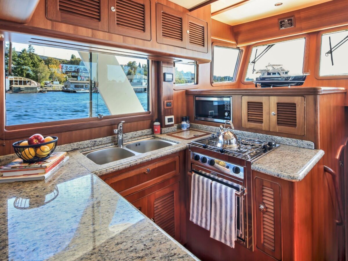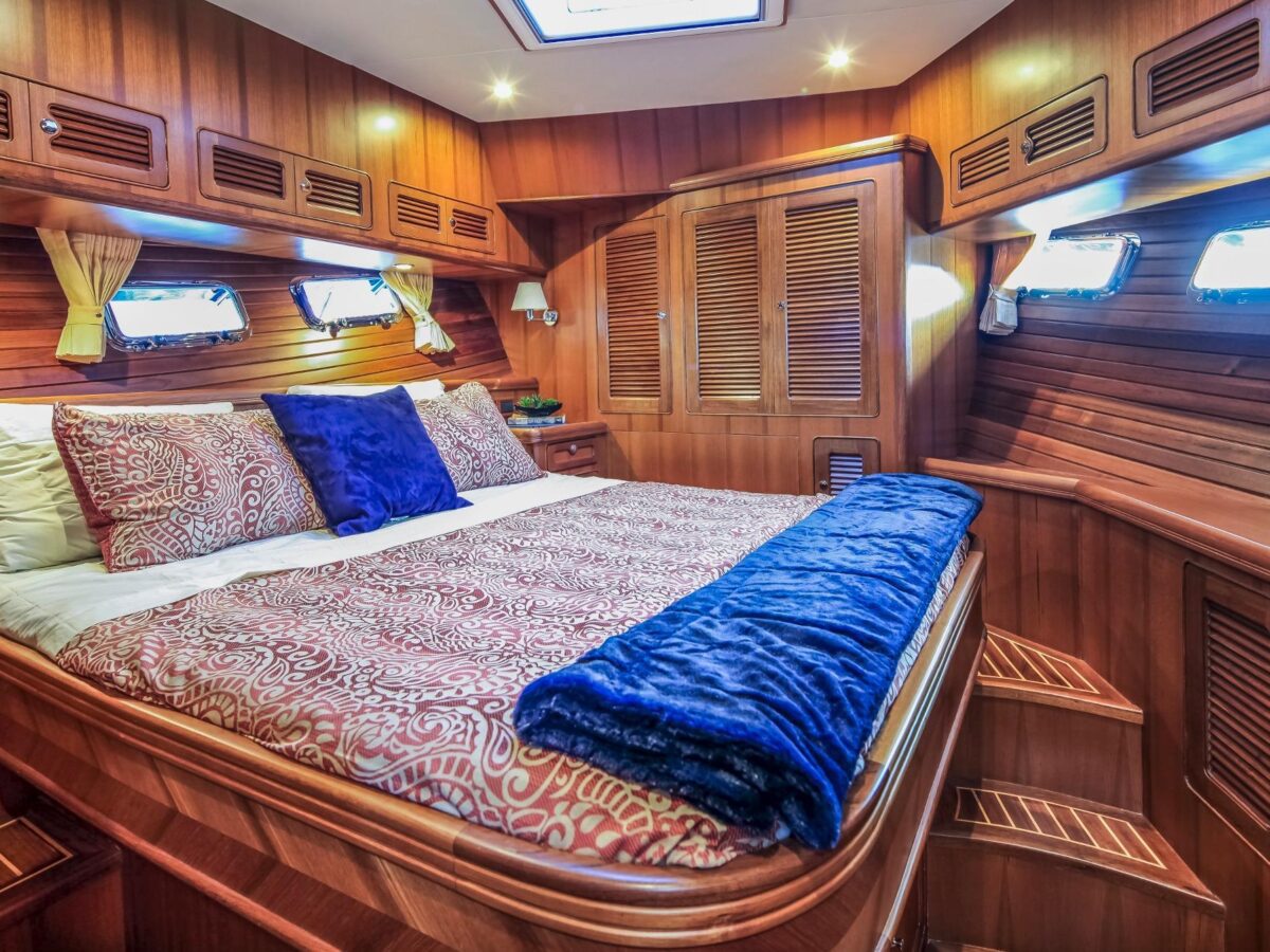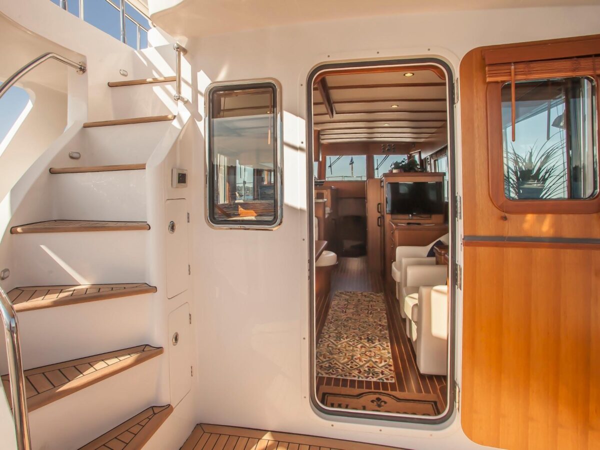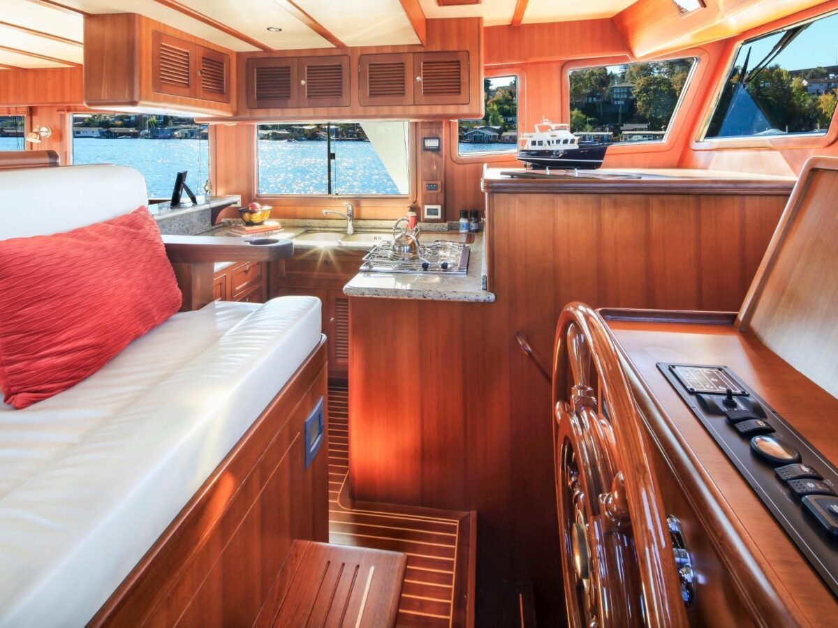 The Selene 50 Voyager Sedan is a larger sibling of the 42 Voyager Sedan model, with an immense superstructure and the same European flair. The yacht has a beautiful teak or optional cherry interior and a well-equipped sea-going U-shaped galley to port. Compared with the Selene 42 Voyager Sedan, it offers one more cabin and head, a more spacious saloon and more storage. For many people, the large flybridge with its optional hardtop will be the highlight of this yacht. The original design of the owner’s cabin, which is located forward with a walk-around berth athwartship, leaves more space for nightstands and large wardrobe lockers. The Selene 50 Voyager Sedan epitomizes gracious styling and transports her passengers with the uppermost comfort and performance…