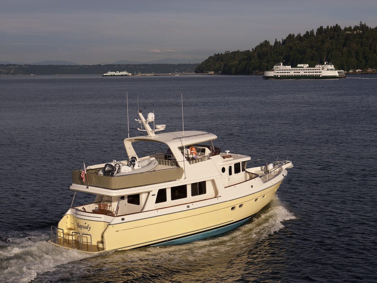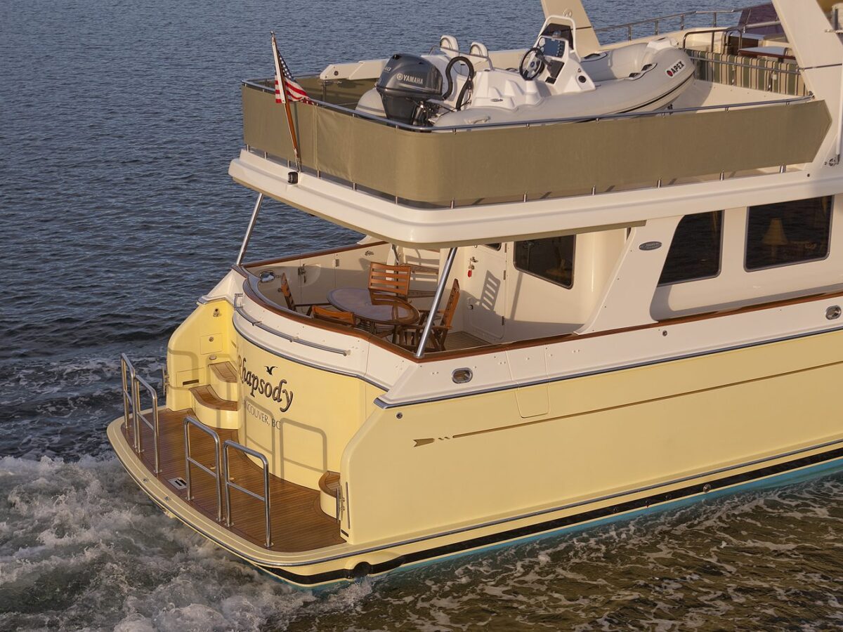 The Selene 58 is from Jet Tern’s most recent Next Generation mould. It features significant increases in length and volume. Built on the proven concepts of other of her Next Generation sisters, the hull offers increased efficiency, the Cruiser Stern™, 6’2” standing headroom in the engine room, and an entirely new layout of the salon/galley/pilothouse reminiscent of the Selene 60. Like all Selene yachts, she features fabulous interior woodwork, exotic granite, a selection of glamorous draperies and fabrics, and high-quality European lighting and interior fittings. She is designed for extended cruising in style, comfort and safety.