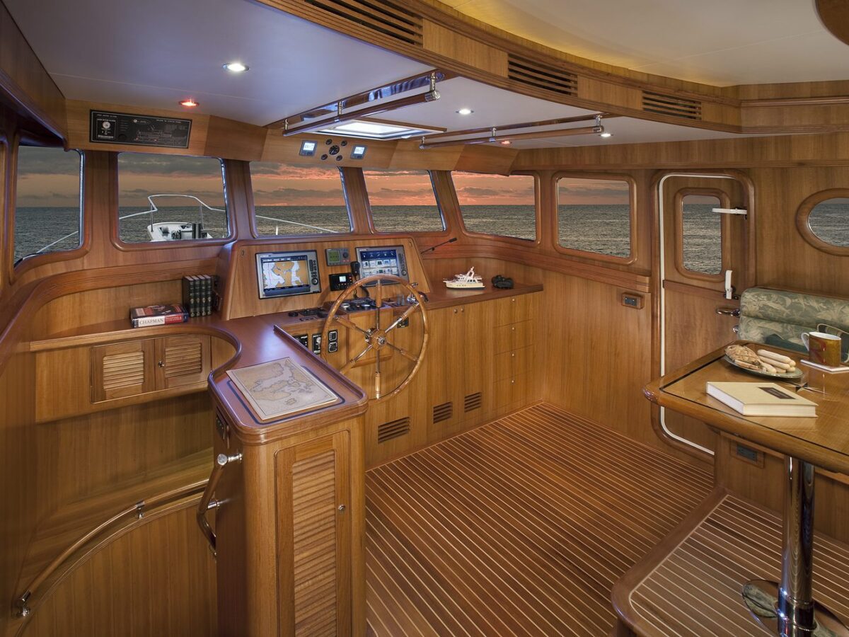 - Handcrafted teak wheel in pilothouse and S/S #316 dia. 30″ wheel on F/B