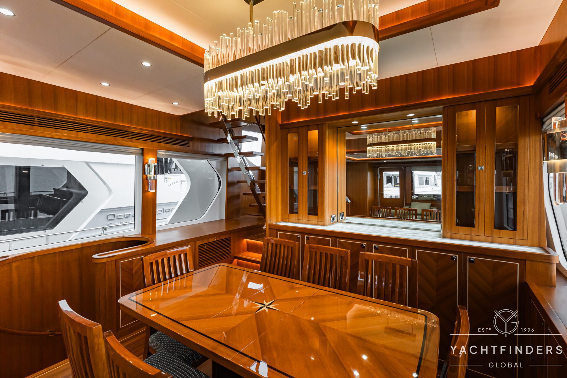 - Innovative Elements: The yacht introduces some new design elements, such as large side windows in the hull, which enhance the interior’s luminosity and offer beautiful views of the surroundings. Additionally, the flying bridge features curvy and sleek lines, adding a modern touch to the vessel’s aesthetics.