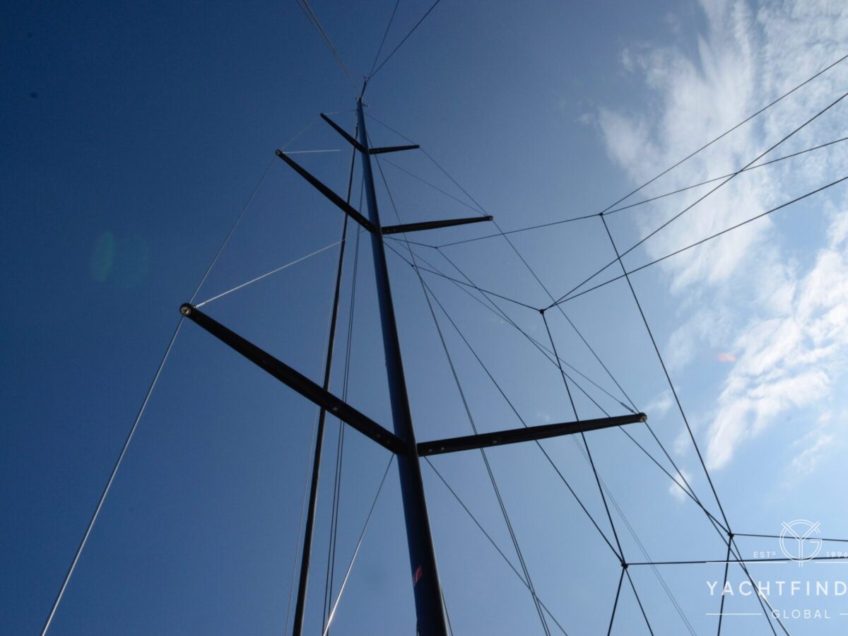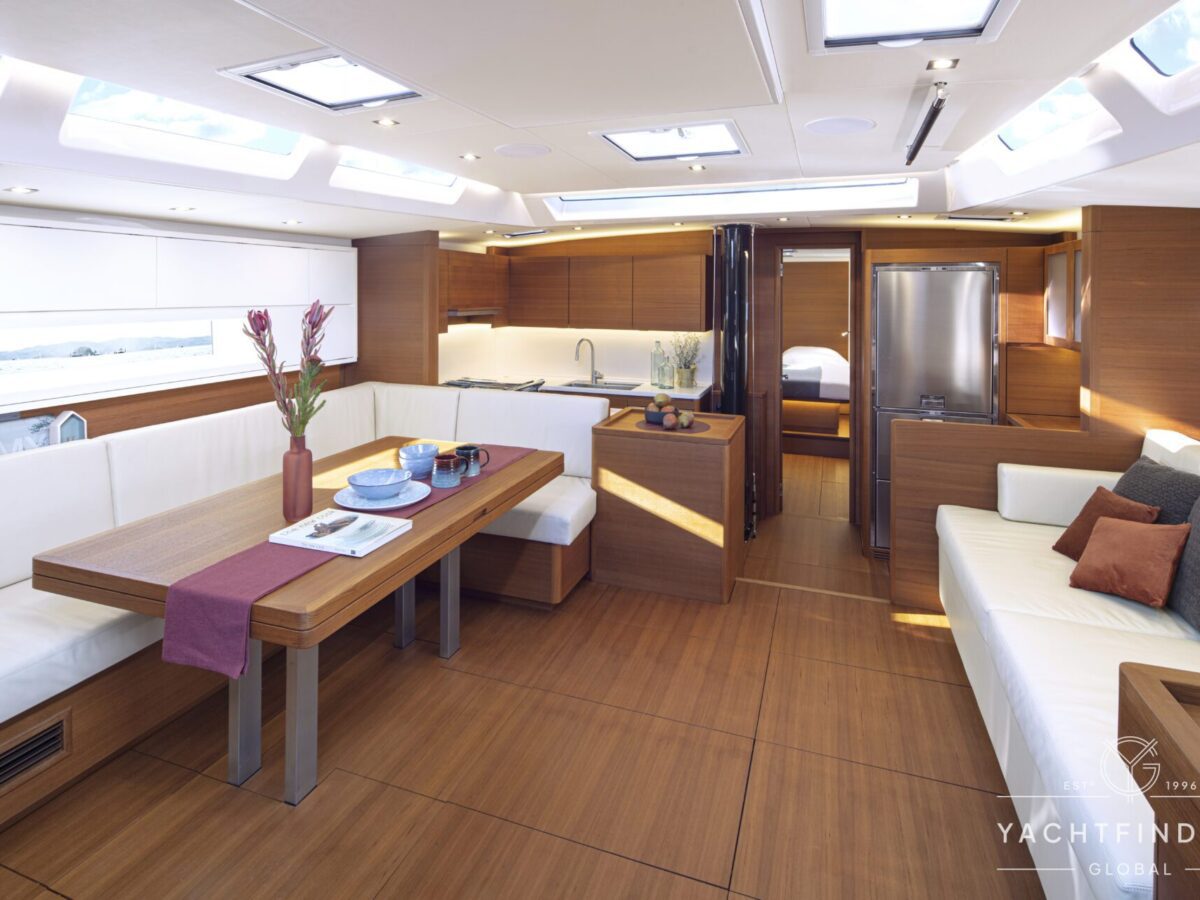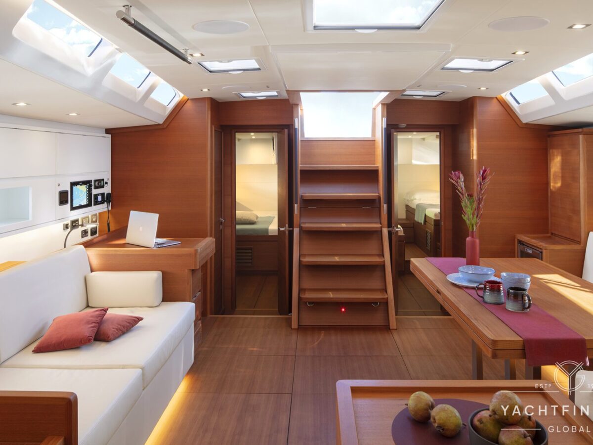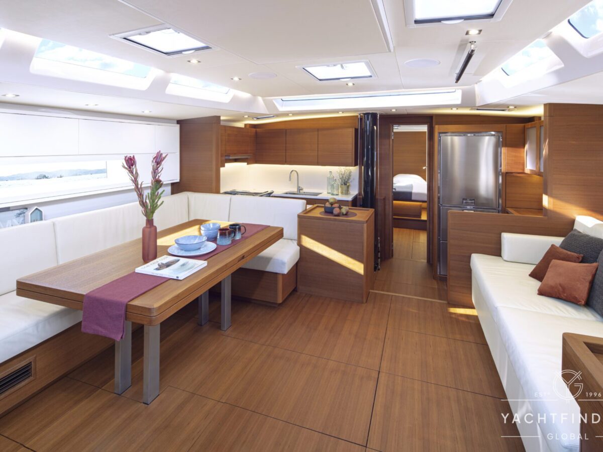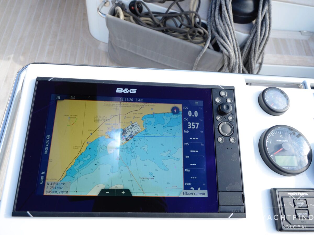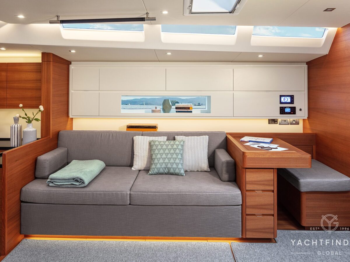 Below the deck, you will find a typical Solaris layout, which includes a galley slightly hidden by two steps forward and, for the first time, two aft cabins with single or double beds. A wide porthole faces the interior of the cockpit. The owner’s cabin, situated in the front, is vast and equipped with a wide capacity