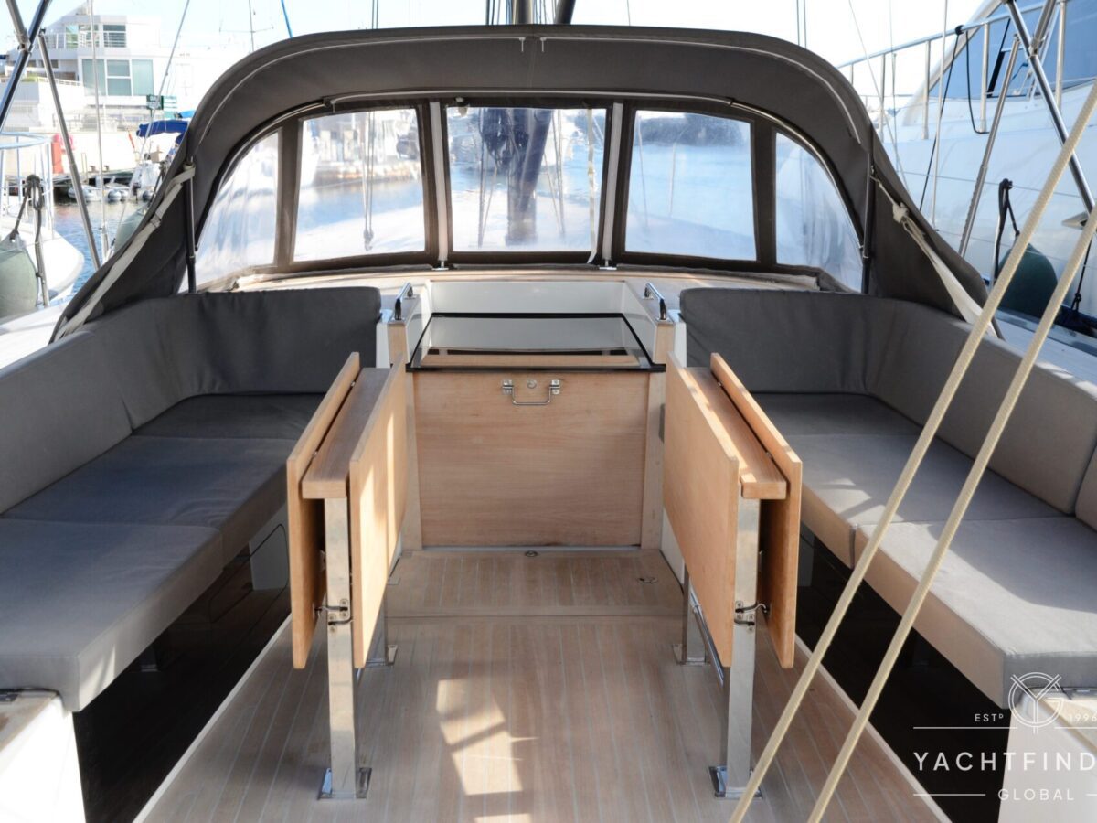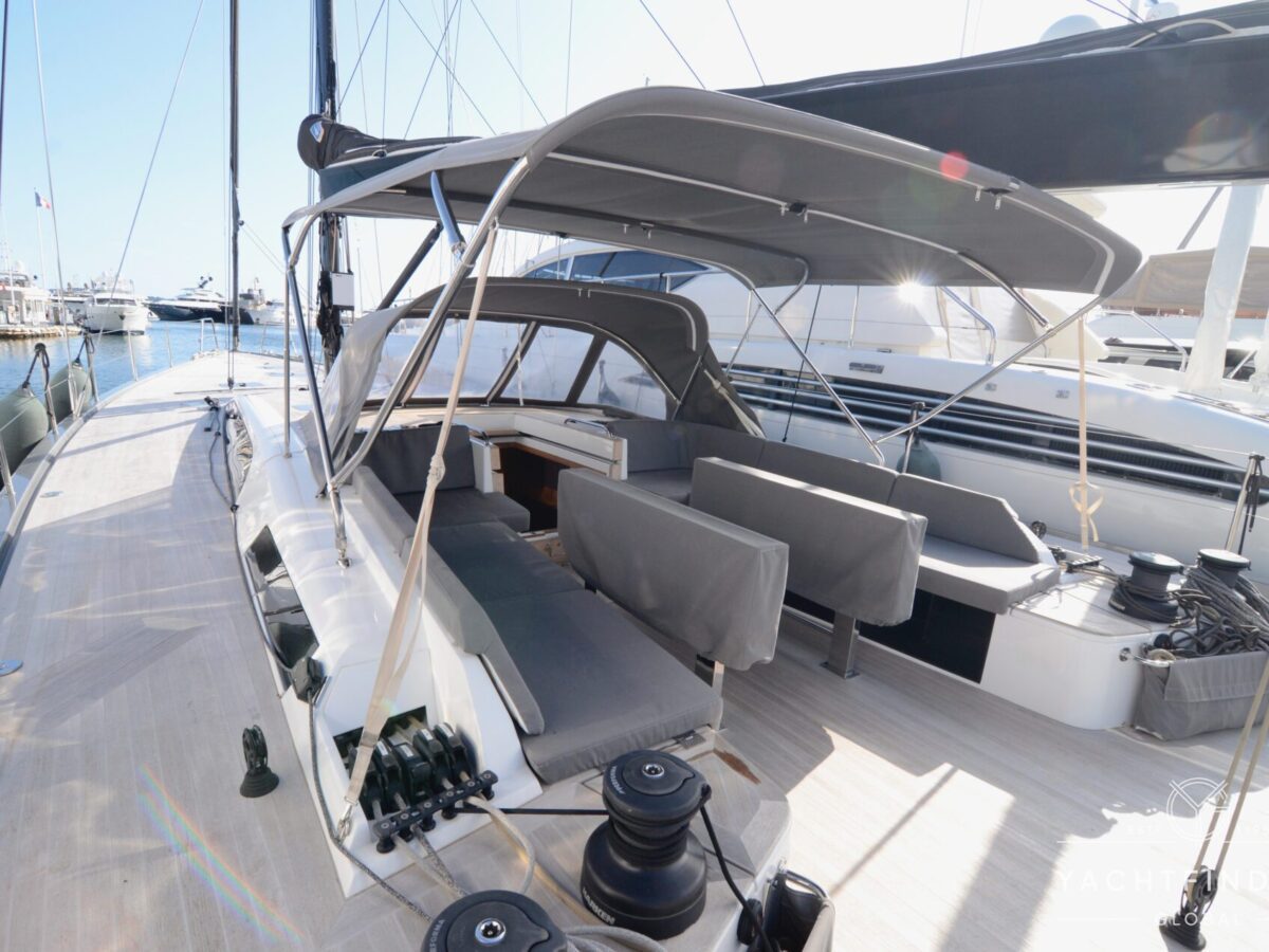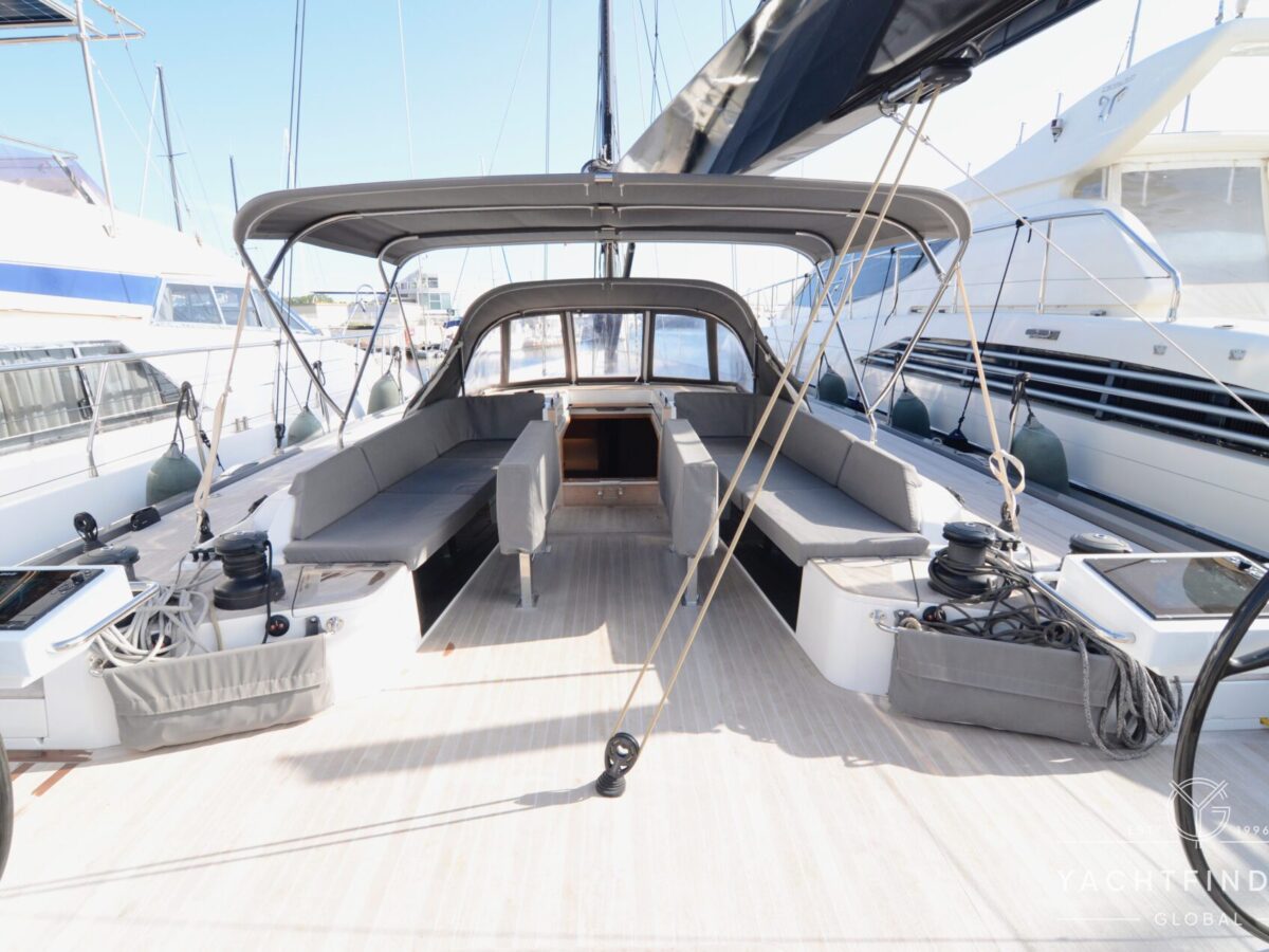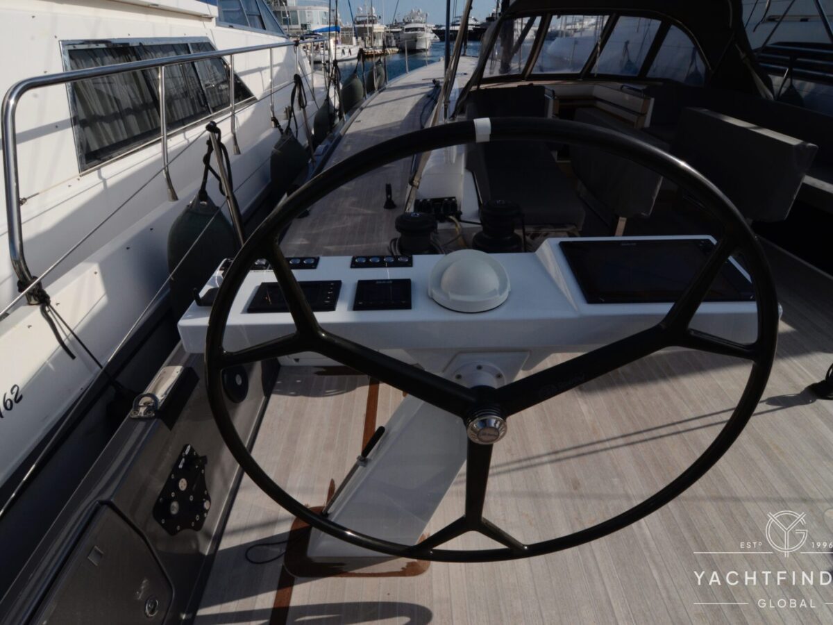 The main innovation of the Solaris 60 is the cockpit, which features full-width steering wheels. You can steer the boat without the sprayhood intrusion, ensuring that the jib’s luff is always completely left in sight while sailing.