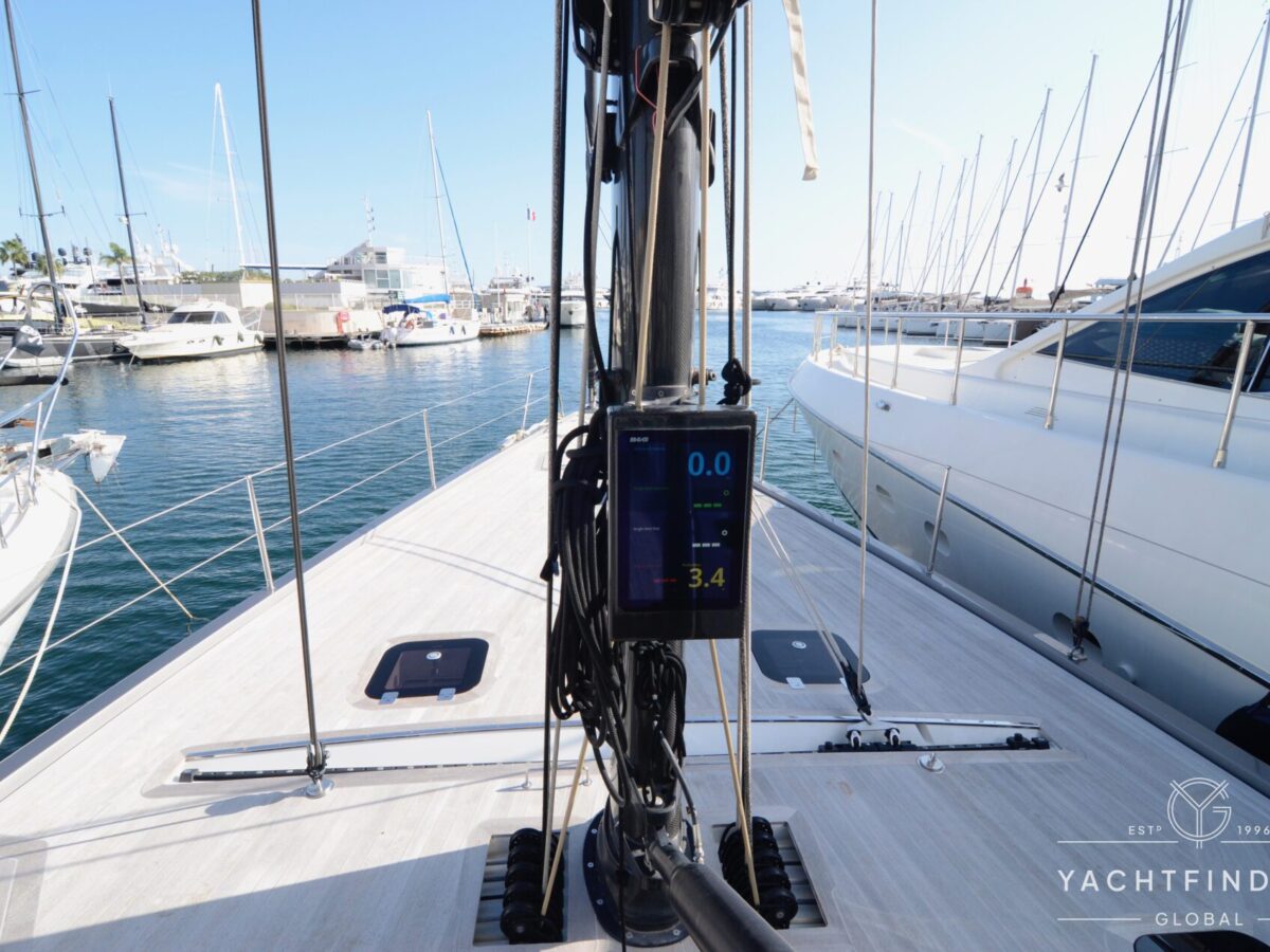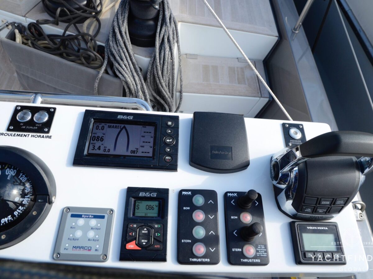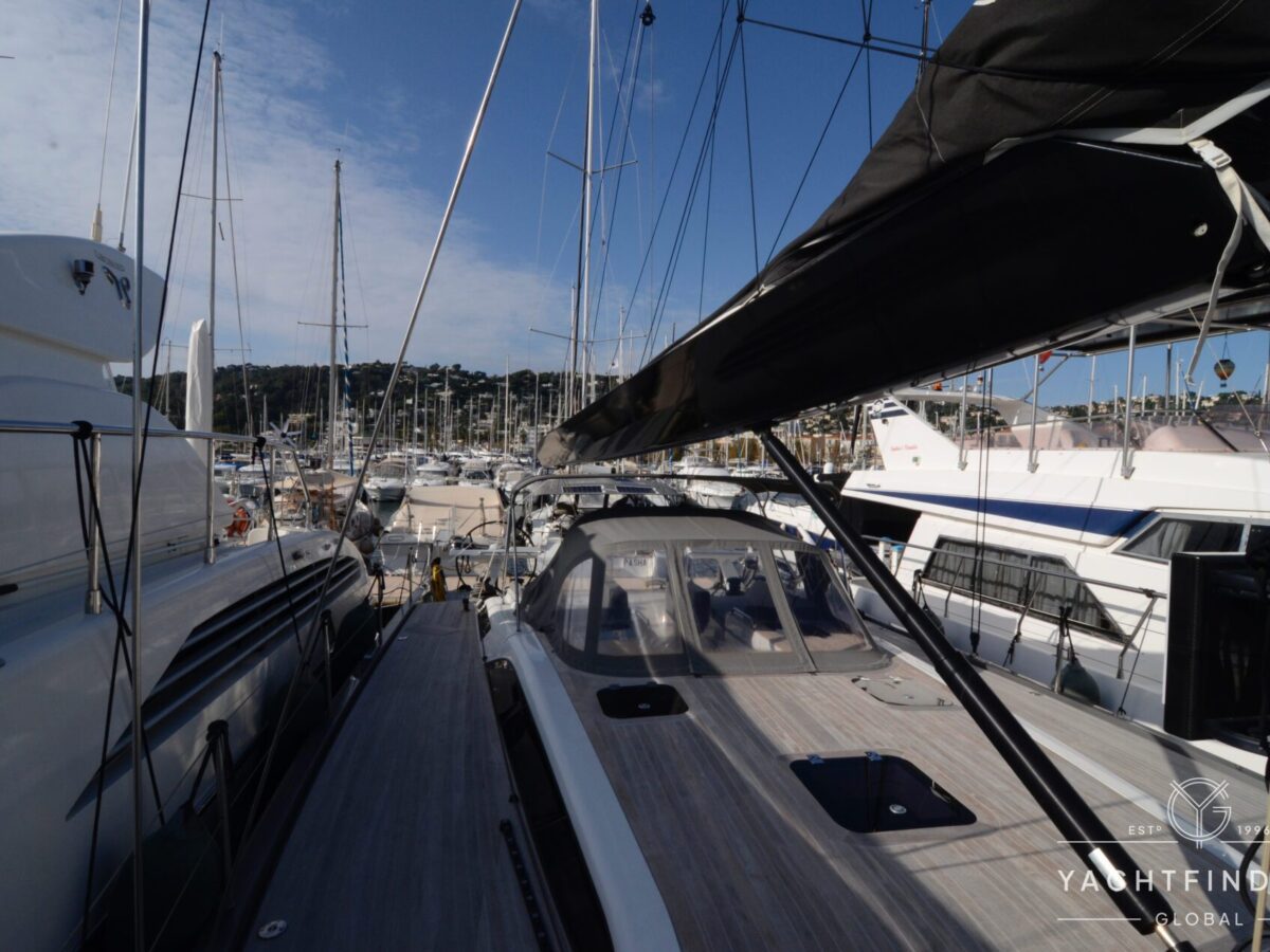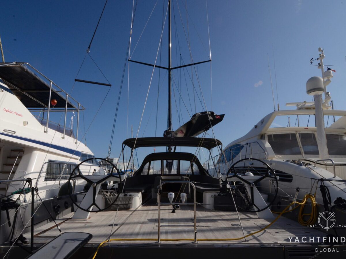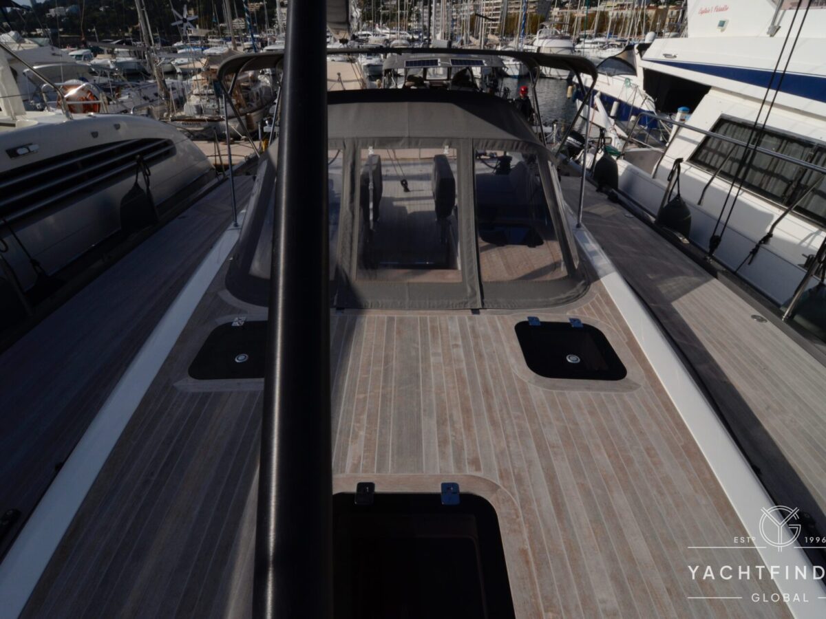 The main innovation of the Solaris 60 is the cockpit, which features full-width steering wheels. You can steer the boat without the sprayhood intrusion, ensuring that the jib’s luff is always completely left in sight while sailing.