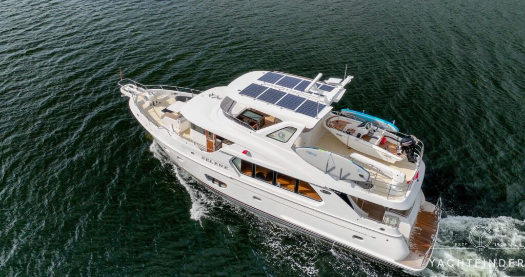 While Selene’s don’t come with factory‑integrated solar, their large pilothouse hardtops are perfect for high‑output aftermarket installations. Owners typically achieve 800–2,000 W, dramatically reducing generator hours and increasing independence at anchor.